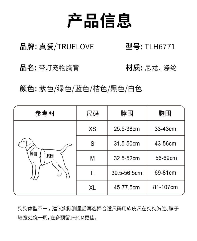 Truelove Dog Leash Harness LED Night Light Outdoor Pet Large and Small Dog Walking Rope Dog Chain