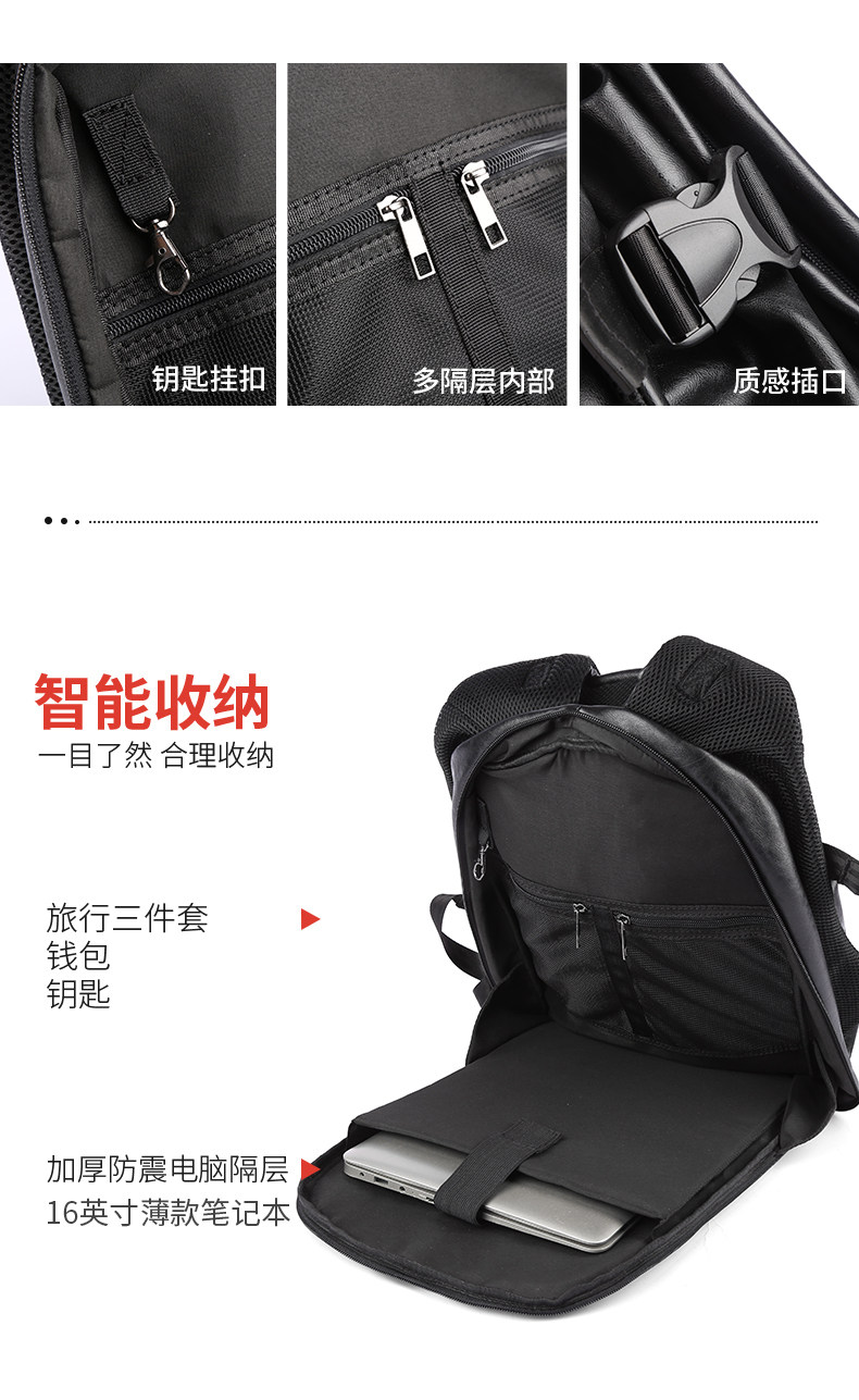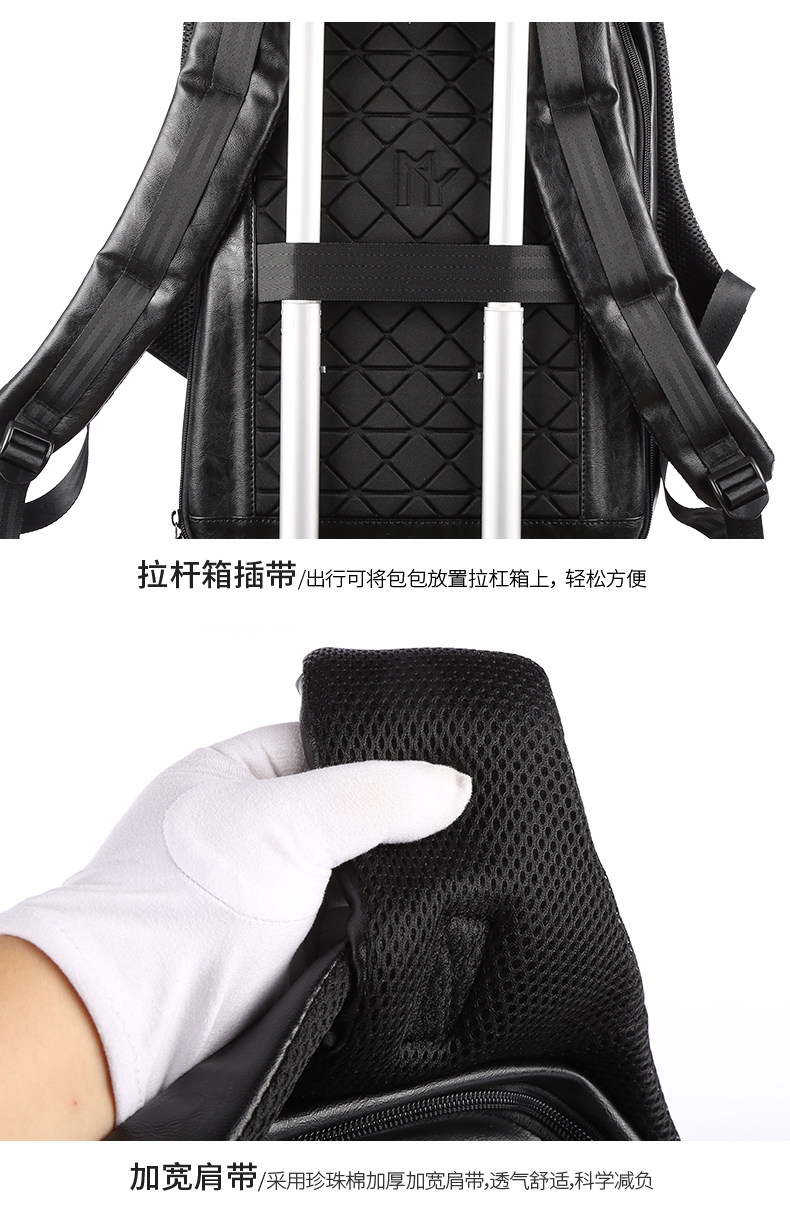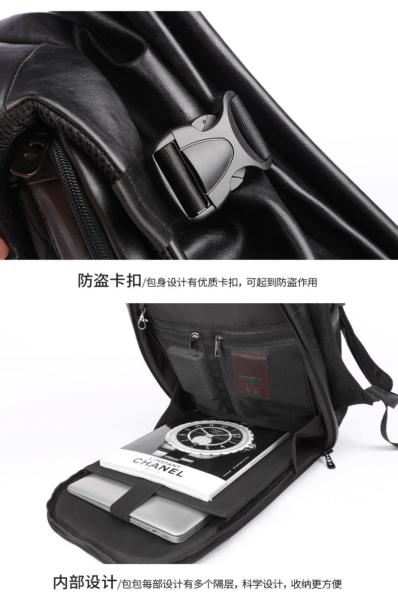 Leather backpack men's large-capacity travel functional backpack short-distance travel bag luggage bag trendy school bag men's style