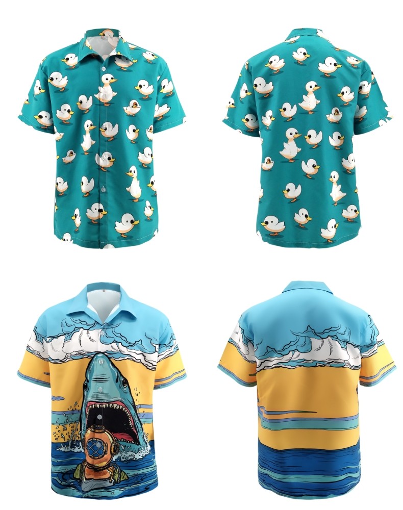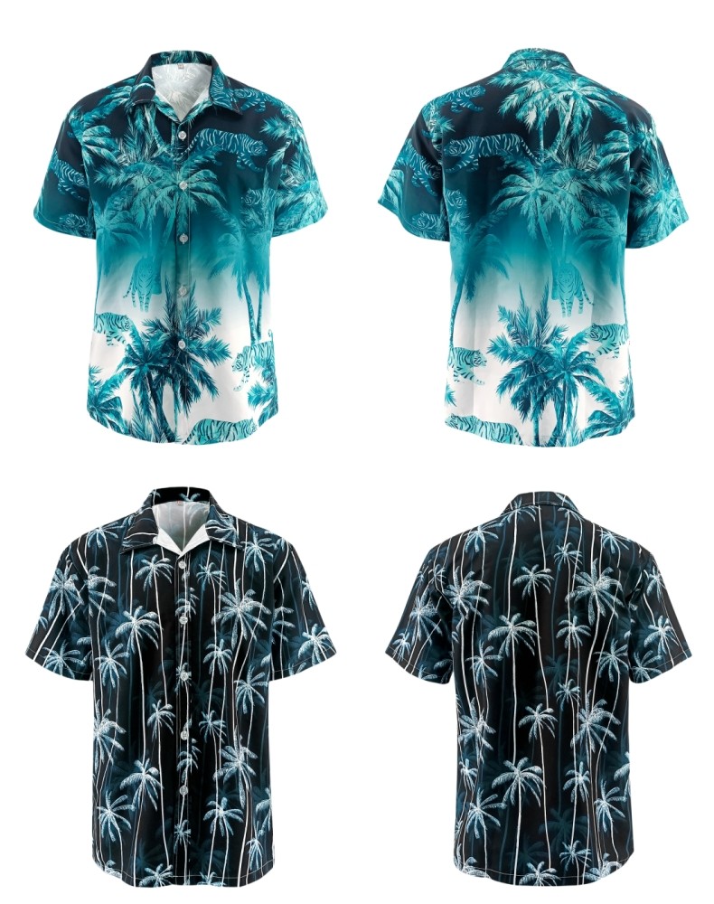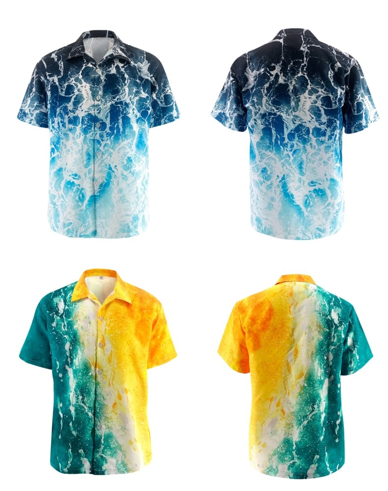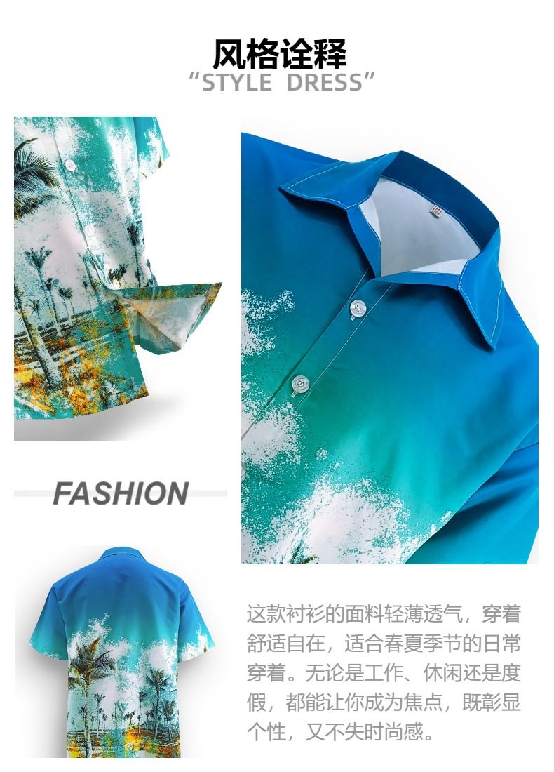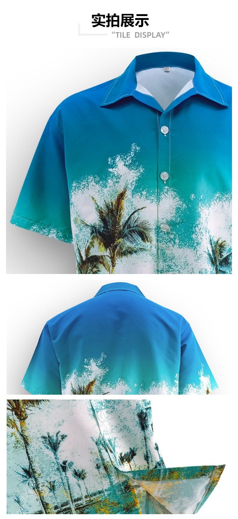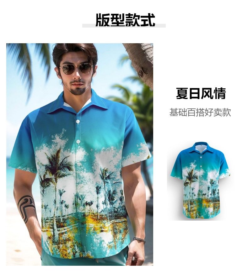 Hawaiian vacation 3D printed short-sleeved Cuban collar shirt men's summer new beach shirt loose American top