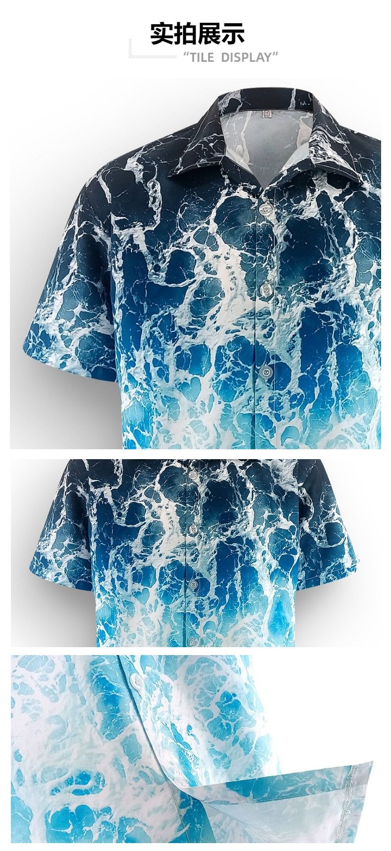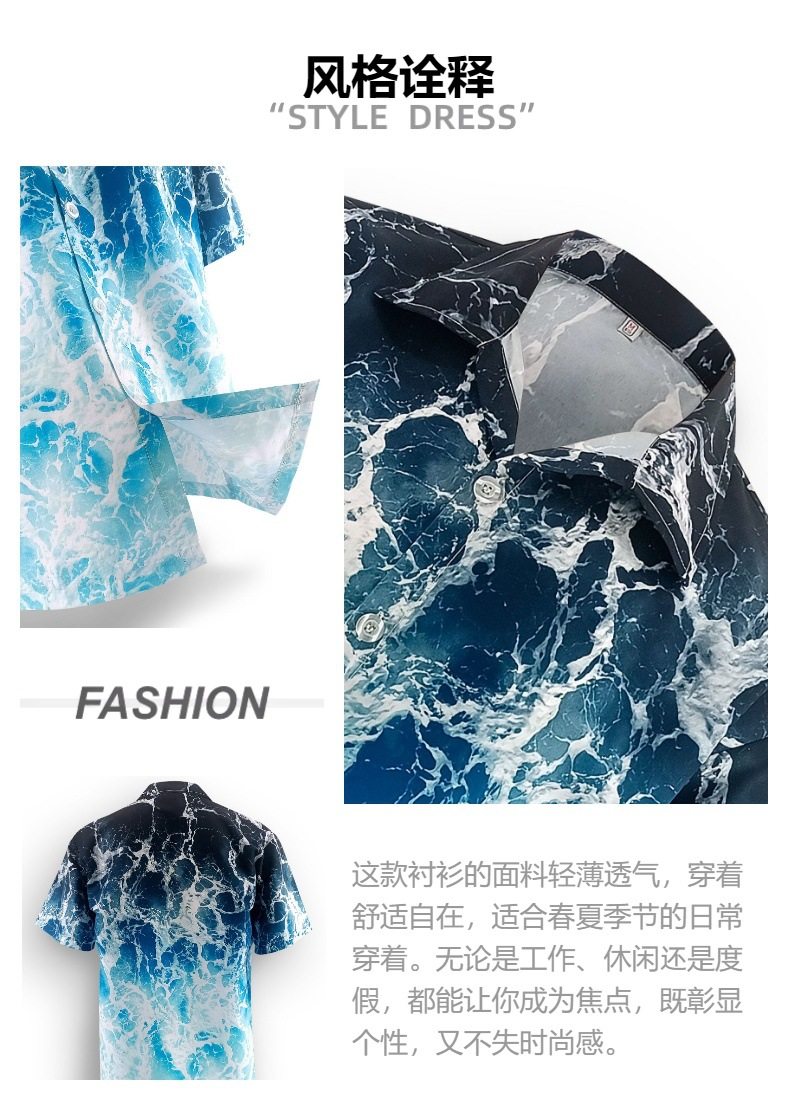 WASSUP trendy Cuban collar casual vacation beach shirt men's Hawaiian loose breathable short-sleeved printed shirt