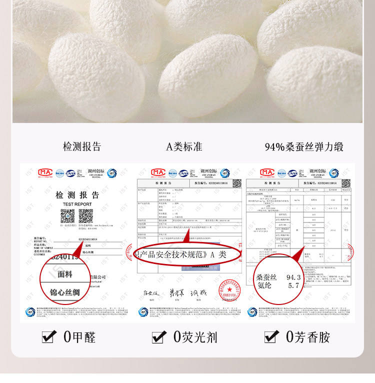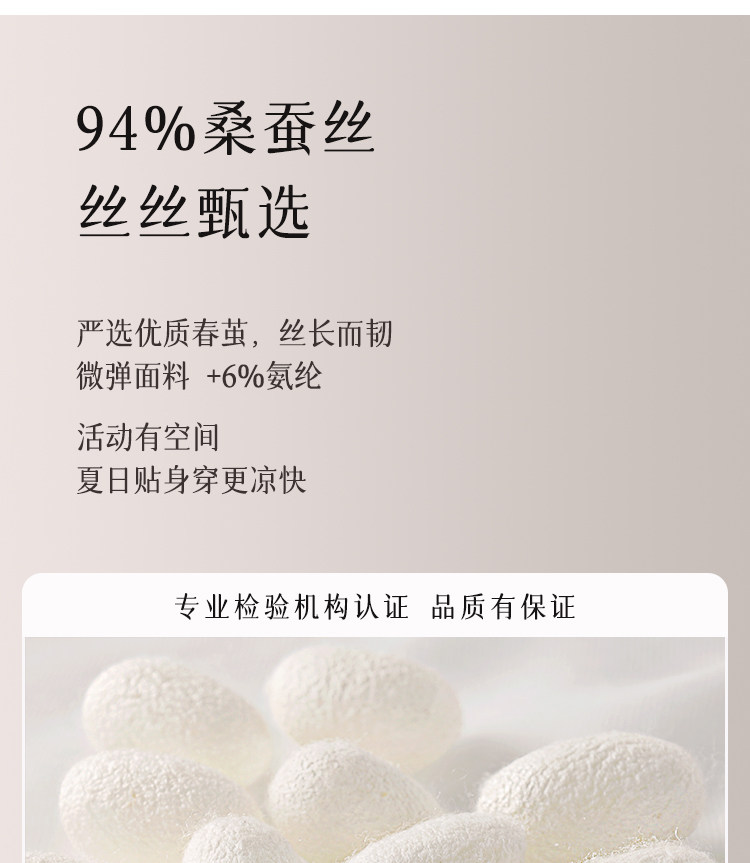 Material ingredients Mulberry silk 94% polyurethane elastic fiber (spandex) 6%