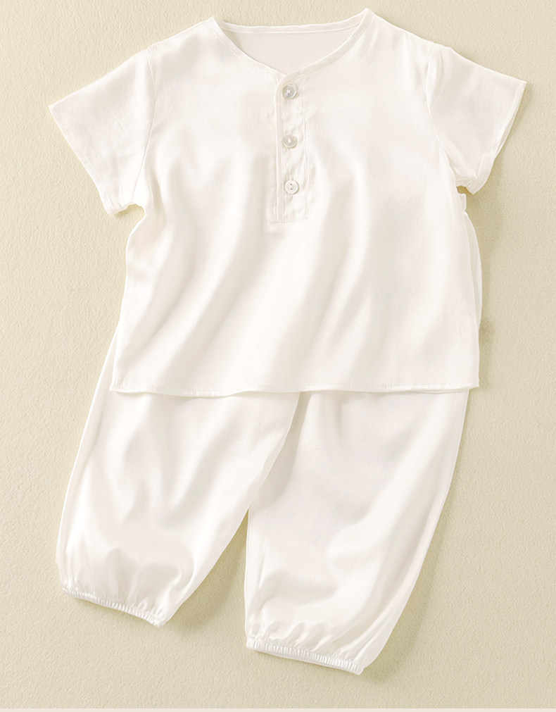 Summer children's silk pajamas set, mulberry silk, boys' and babies' home clothes, girls' air-conditioned clothes, short sleeves and long pants