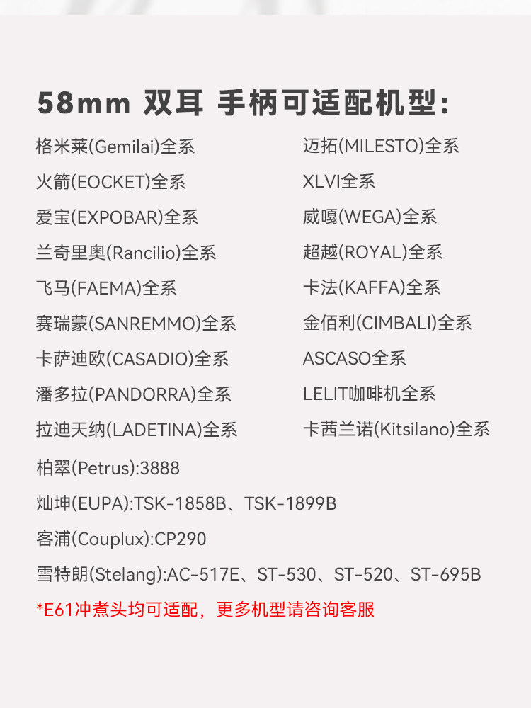 Color Classification Gemeilai/E61 Bottomless Handle + Abs Plastic White + 18g Powder Bowl,Gemeilai/E61 Bottomless Handle + Abs Plastic Black + 18g Powder Bowl,Gemeilai/E61 Bottomless Handle + Ebony + 18g Powder Bowl,Gemeilai/E61 Bottomless Handle + Curved Red Rosewood + 18g Powder Bowl,Gemeilai/E61 Bottomless Handle + Dome Walnut + 18g Powder Bowl,Gemeilai/E61 Bottomless Handle + Ebony Short Style + 18g Powder Bowl,Gemeilai/E61 Bottomless Handle + Colored Wood Short Style + 18g Powder Bowl,Gemeilai/E61 Bottomless Handle + Checkerboard Short Style + 18g Powder Bowl,Gemeilai/E61 Bottomless Handle + Candy Green Short Style + 18g Powder Bowl,Gemeilai/E61 Bottomless Handle + t Buckle Black Rosewood + 18g Powder Bowl,Gemeilai/E61 Bottomless Handle + t Buckle Walnut + 18g Powder Bowl,Gemeilai/E61 Bottomless Handle + Colored Wood Type a + 18g Powder Bowl,Gemeilai/E61 Bottomless Handle + Colored Wood Arc + 18g Powder Bowl,Gemeilai/E61 Bottomless Handle + Walnut Arc + 18g Powder Bowl,Gemeilai/E61 Bottomless Handle + Walnut Type B + 18g Powder Bowl,Gemeilai/E61 Bottomless Handle Metal Mesh Silver,Gemeilai/E61 Bottomless Handle + Dragon Ridge Walnut + 18g Powder Bowl,Gemeilai/E61 Bottomless Handle + Cherry Blossom Powder + 18g Powder Bowl,Gemeilai/E61 Bottomless Handle + Resin White + 18g Powder Bowl,Gemeilai/E61 Bottomed Double-Mouth Handle + Abs Plastic White + 18g Powder Bowl,Gemeilai/E61 Bottom Double Mouth Handle + Abs Plastic Black + 18g Powder Bowl,Gemeilai/E61 Bottomed Double-Mouth Handle + Red Rosewood + 18g Powder Bowl,Gemeilai/E61 Bottomed Double-Mouth Handle + Straight Black Rosewood + 18g Powder Bowl,Gemeilai/E61 Bottomed Double-Mouth Handle + T-Buckle Red Rosewood with Tail Cap + 18g Powder Bowl,Gemeilai/E61 Bottomed Double-Mouth Handle + T-Buckle Black Rosewood + 18g Powder Bowl,Gemeilai/E61 Bottomed Double-Mouth Handle + T-Buckle Walnut + 18g Powder Bowl,Gemeilai/E61 Bottomed Double-Mouth Handle + Walnut Short Style + 18g Powder Bowl,Gemeilai/E61 Bottomed Double-Mouth Handle + Ebony Short Style + 18g Powder Bowl,Gemeilai/E61 Bottomed Double-Mouth Handle + Candy Green Short Style + 18g Powder Bowl,Gemeilai/E61 Bottomed Double-Mouth Handle + Colored Wood Short Style + 18g Powder Bowl,Gemeilai/E61 Bottomed Double-Mouth Handle + Checkerboard Short Style + 18g Powder Bowl,Gemeilai/E61 Bottomed Double-Mouth Handle + Colored Wood Arc + 18g Powder Bowl,Gemeilai/E61 Bottomed Double-Mouth Handle + Colored Wood Type a + 18g Powder Bowl,Gemeilai/E61 Bottomed Double-Mouth Handle + Dragon Ridge Walnut + 18g Powder Bowl,Gemeilai/E61 Bottomed Double-Mouth Handle + Cherry Blossom Powder + 18g Powder Bowl,Gemeilai/E61 Bottomed Double-Mouth Handle + Resin White + 18g Powder Bowl,Gemeilai/E61 Hollow Bottomless Handle + Straight Black Rosewood + 22g Powder Bowl,Gemilai/E61 Hollow Bottomless Handle + Colored Wood Short Style + 22g Powder Bowl,Gemeilai/E61 Hollow Bottomless Handle + Colored Wood Type a + 22g Powder Bowl,Gemeilai/E61 Hollow Bottomless Handle + Checkerboard Short Style + 22g Powder Bowl,Gemeilai/E61 Hollow Bottomless Integrated Handle Original Color,Gemeilai/E61 Hollow Bottomless Integrated Handle Champagne Gold,Gemeilai/E61 Hollow Bottomless Integrated Handle Xuanming Black