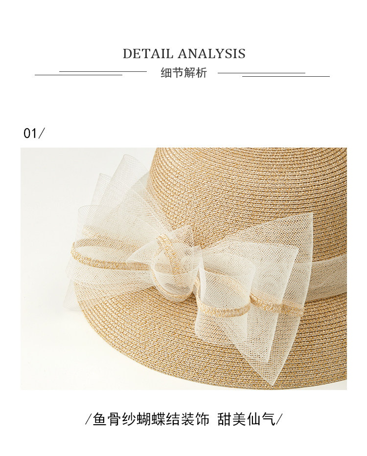 New Style Women's High-End Elegant Sunshade Hat That Makes the Face Look Smaller, Simple and Fashionable Summer Travel Fishbone Lampshade Hat