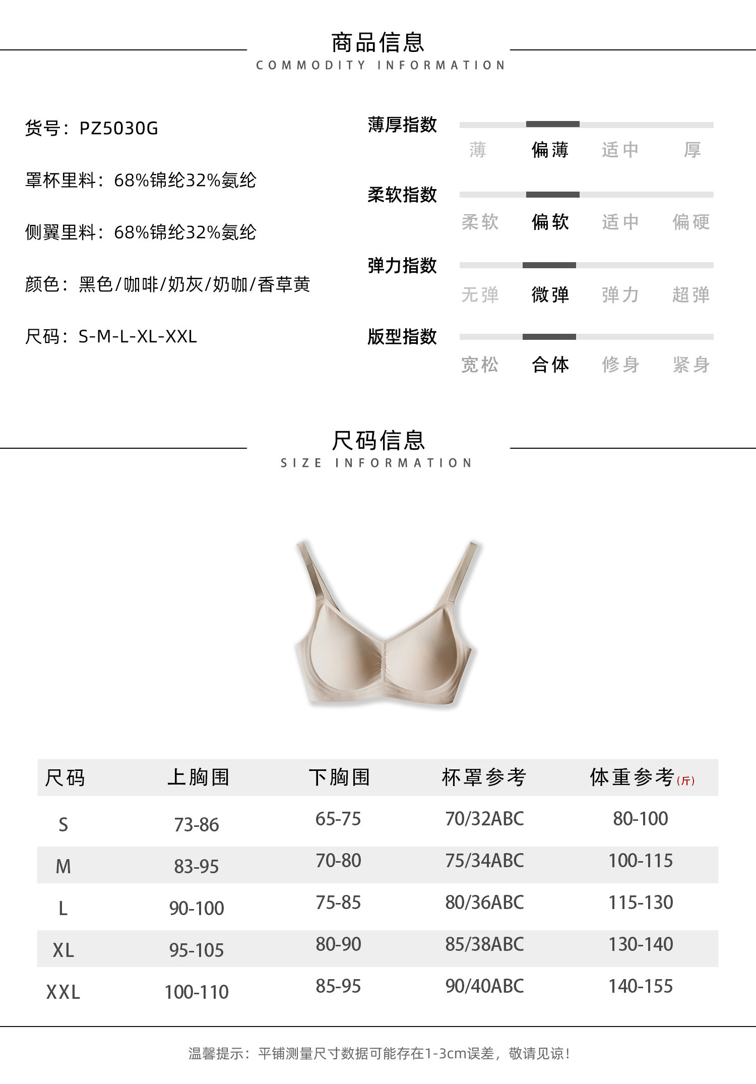 China (cm) 160-165/84-86 165-170 / 88-90 167-172 / 92-96 168-173 / 98-102 170-176 / 106-110