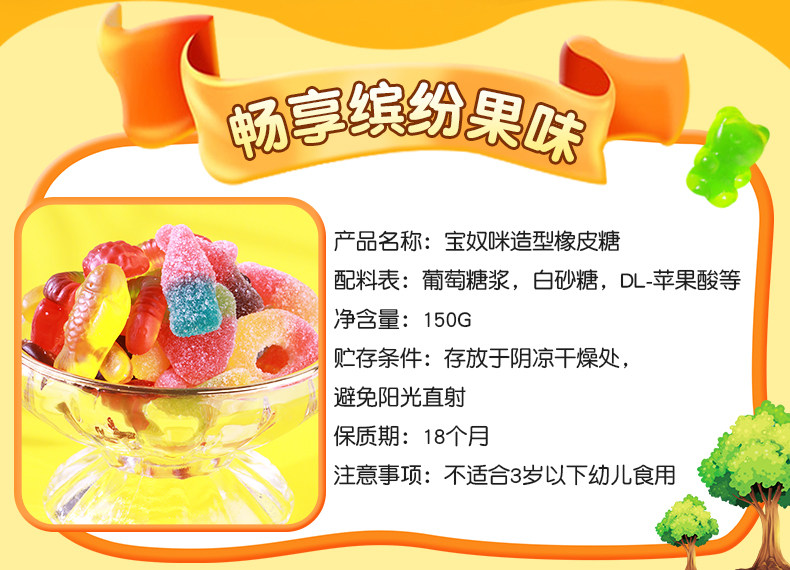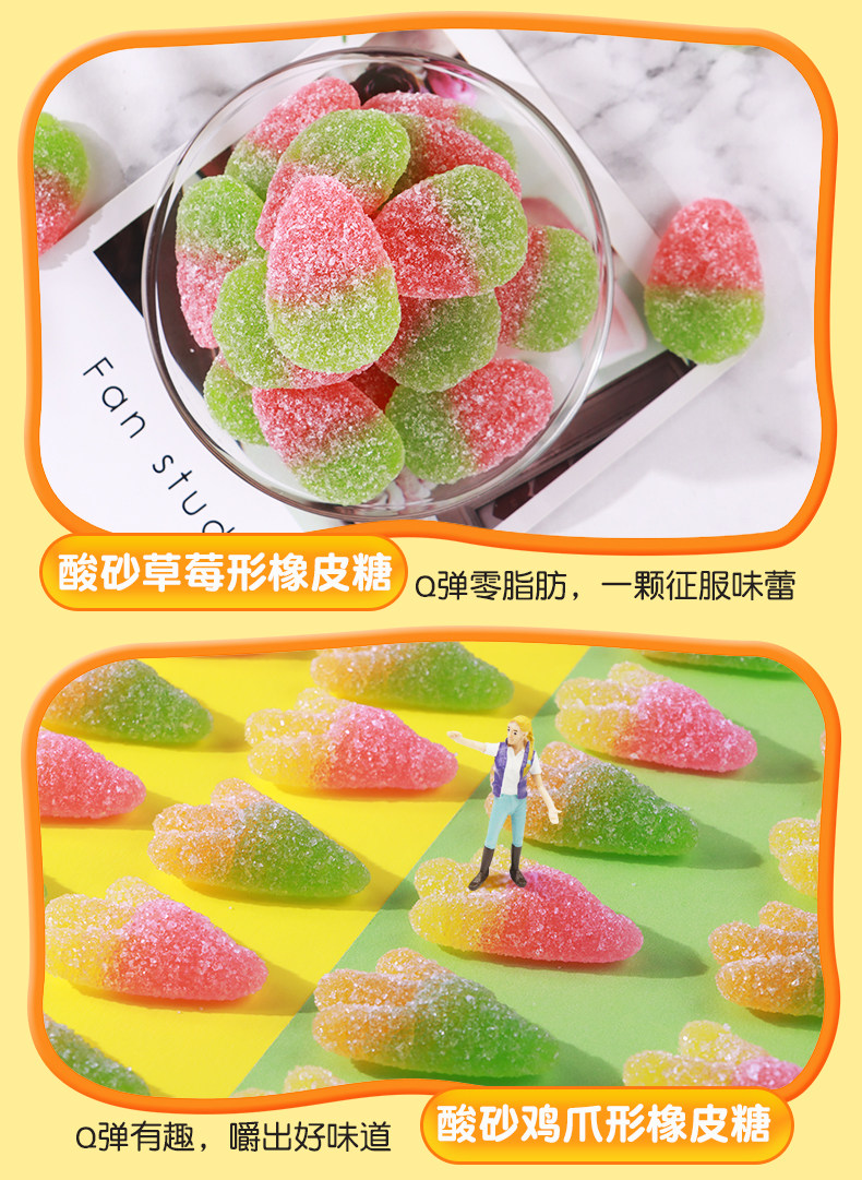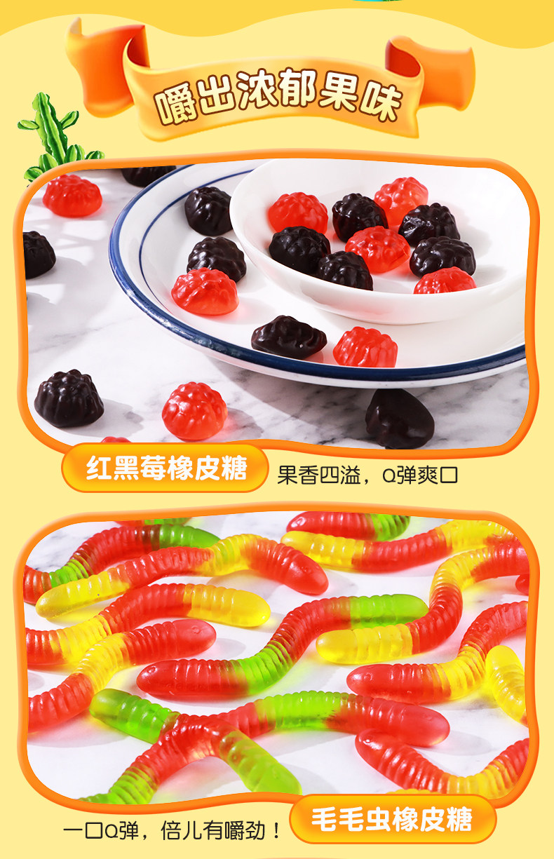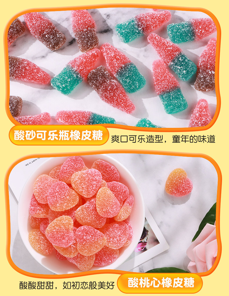 Taste 1 bag of sour sand color insect 150g*1 bag,1 bag of Sour Sand Coke 150g*1 bag,1 bag of sour sand peach heart 150g*1 bag,1 bag of caterpillar gummy candy 150g*1 bag,1 bag of fruit flavored rings 150g*1 bag,1 bag of gummy bears 150g*1 bag,1 bag of poached egg gummy candy 125g*1 bag,1 bag of shark-shaped gummy candy 125g*1 bag,1 bag of pencil-shaped gummy candy 80g*1 bag,1 bag of sour sand strawberry 150g*1 bag,3 bags of acid sand colored insects 150g*3 bags,3 bags of Sour Sand Coke 150g*3 bags,3 bags of sour sand peach heart 150g*3 bags,3 bags of caterpillar gummy candy 150g*3 bags,3 bags of fruit flavored rings 150g*3 bags,3 bags of gummy bears 150g*3 bags,3 bags of poached egg gummy candy 125g*3 bags,3 bags of shark-shaped gummy candy 125g*3 bags,3 bags of pencil-shaped gummy candy 80g*3 bags,3 bags of colorful insects+cola+peach hearts,3 bags of caterpillars + fruit rings + little bears,3 bags of poached eggs + shark shape + pencil shape,3 bags of colorful insects + caterpillars + poached eggs,3 bags of peach hearts + fruit rings + shark shape,3 bags of Coke + Little Bear + Poached Egg,2 bags, flavor of your choice, random without remarks,3 bags, flavor of your choice, random without remarks,4 bags, flavor of your choice, random without remarks,5 bags, flavor of your choice, random without remarks