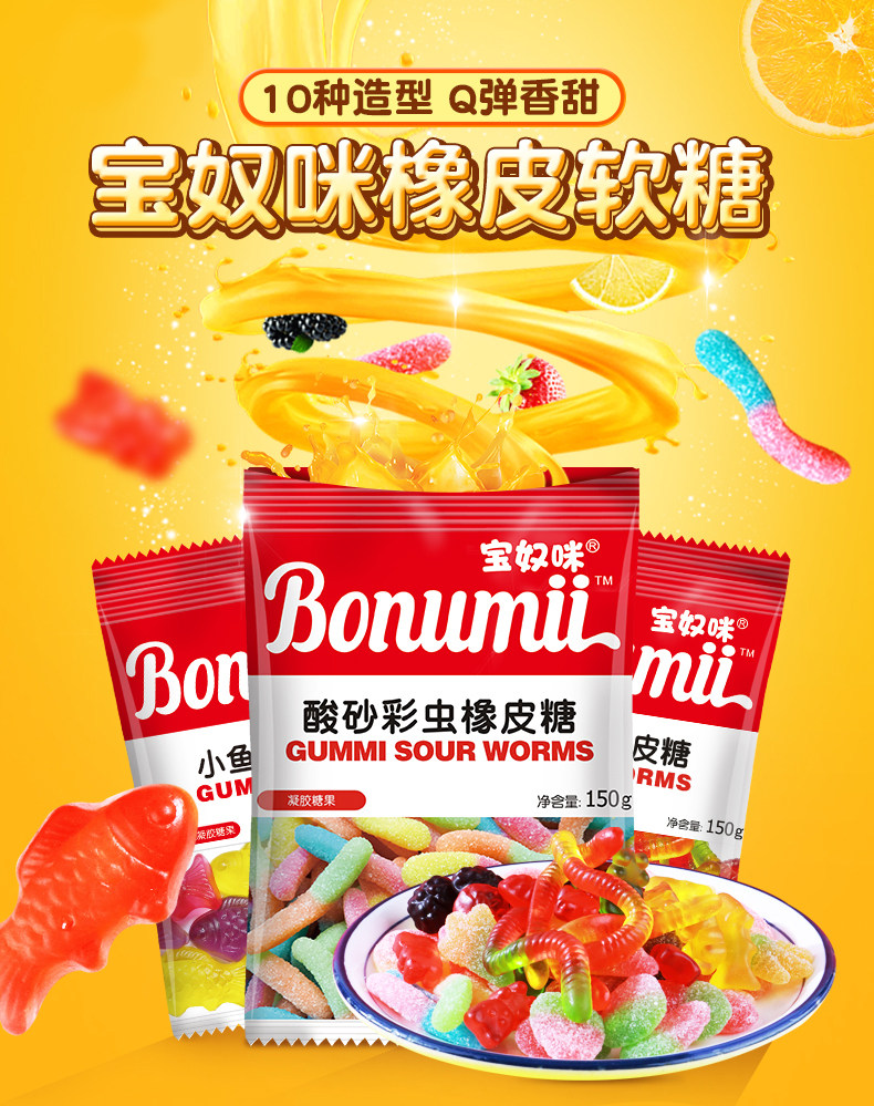 Baonumi Gummy Sour Sand Color Insect Gummy Candy Juice Flavored Gummy Caterpillar QQ Candy 150g for Girlfriend