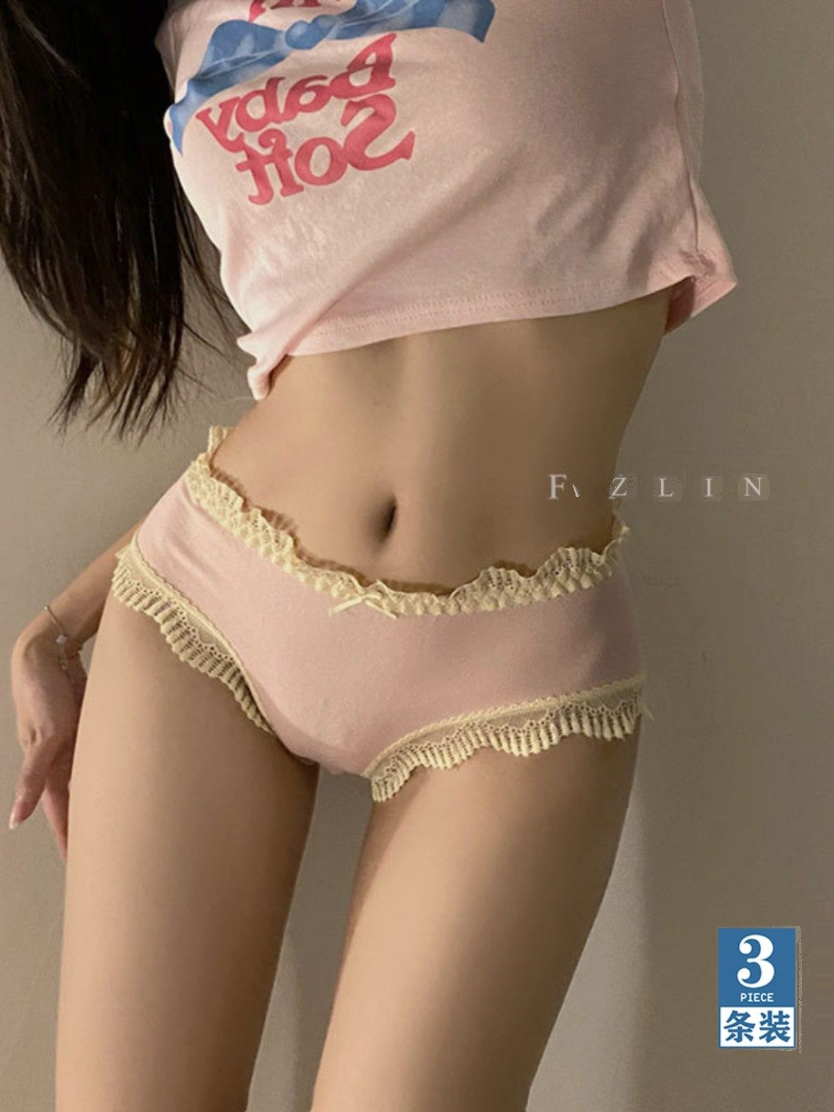 Japanese Lace Panties for Women, Pure Cotton Crotch, Antibacterial, Breathable, Mid-Waist, Nude Feel, Sexy, Pure Desire, Hip-Hugging Briefs