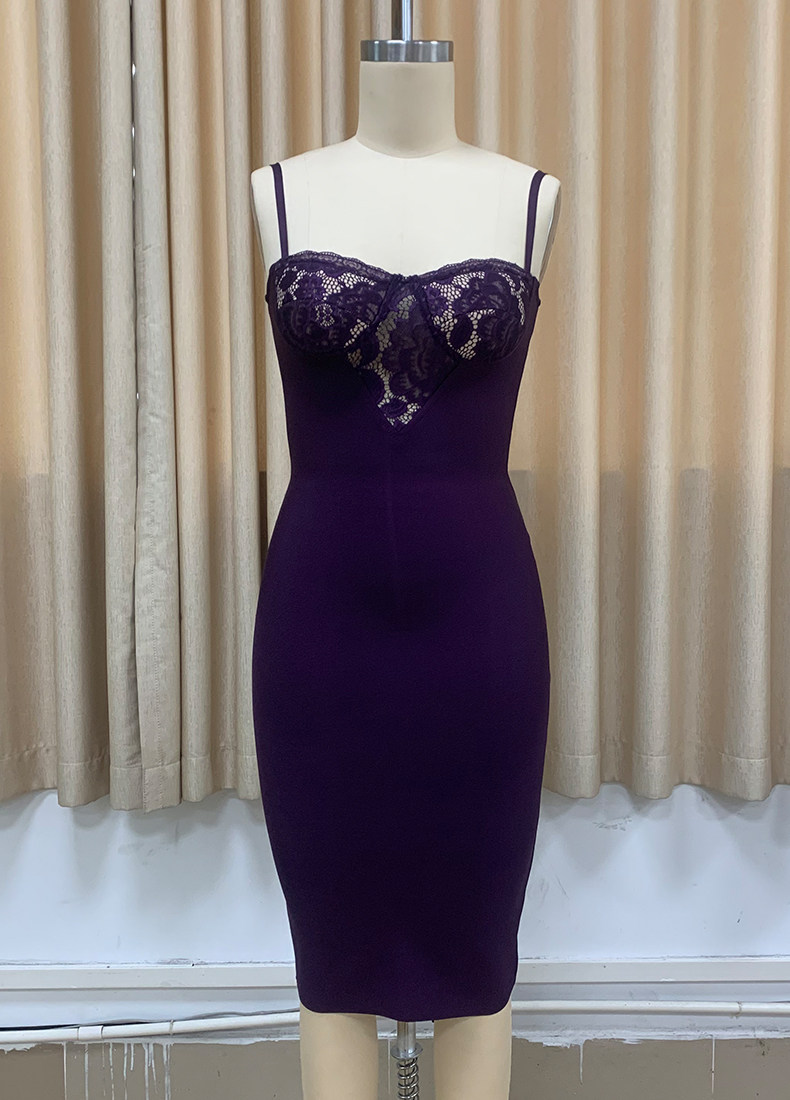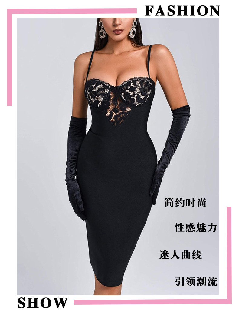 2025 Summer Women's New Product Socialite Sexy Suspender Backless Lace Breast Cup Slim Dress Party Dress