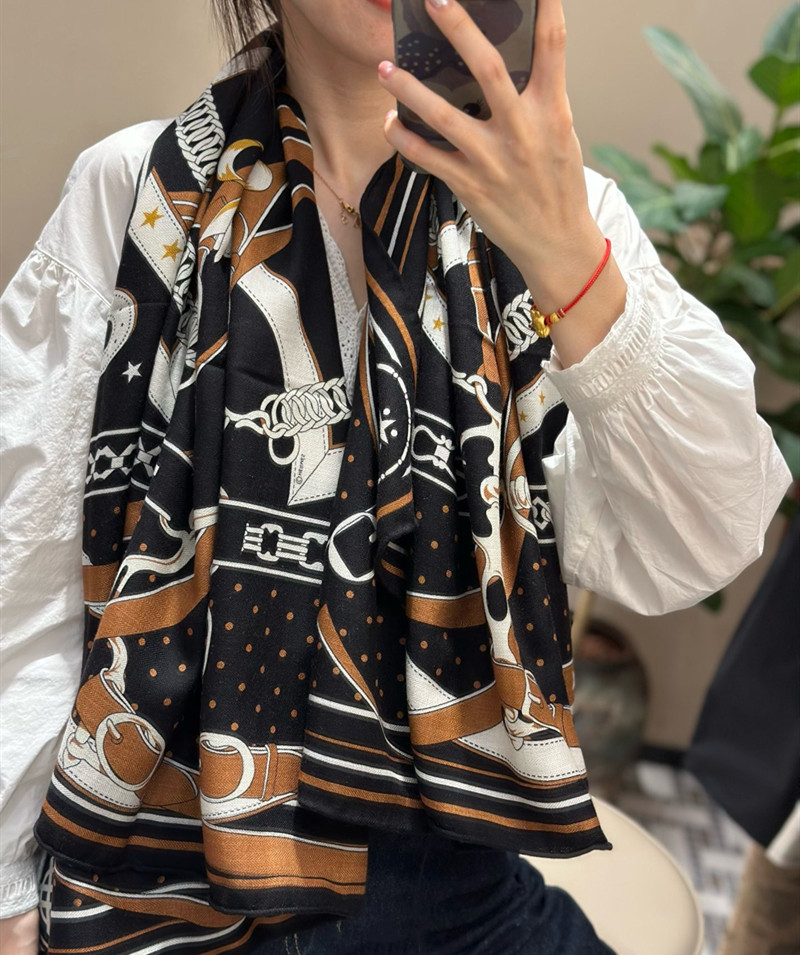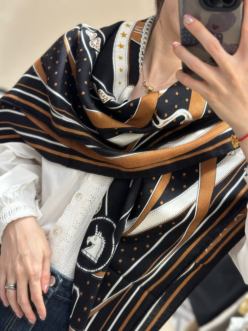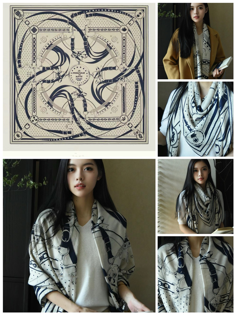 Tianwangsha Street Style Same Model Morning Walk Silk Wool Large Square Scarf High-End Scarf Shawl Dual-Use Autumn and Winter Women's