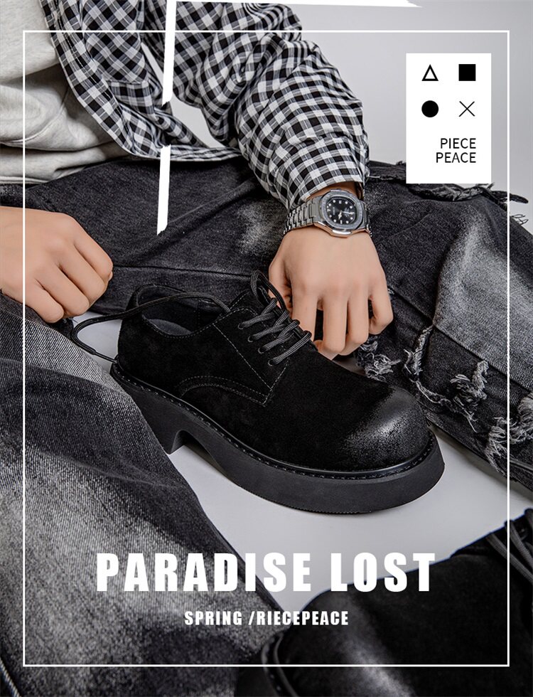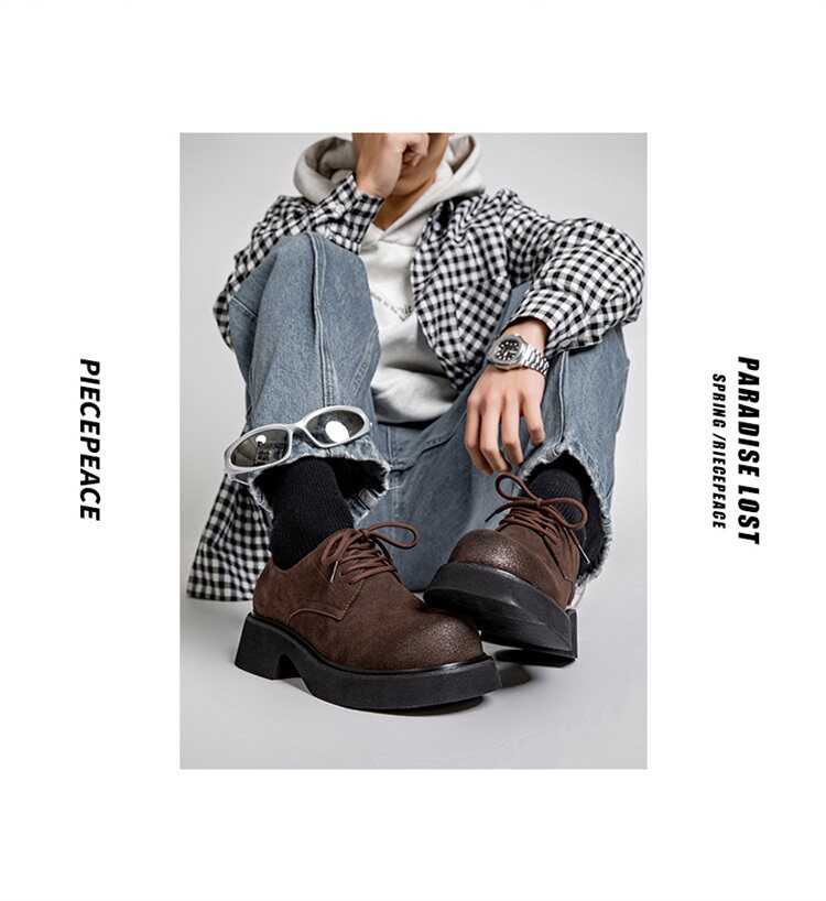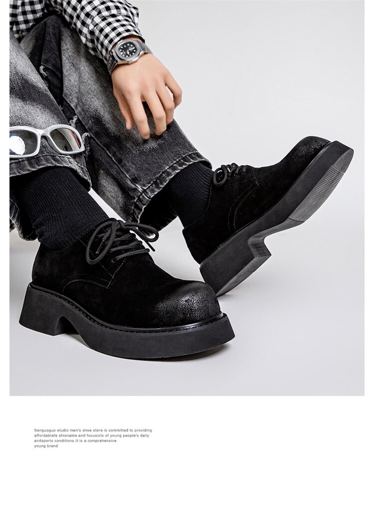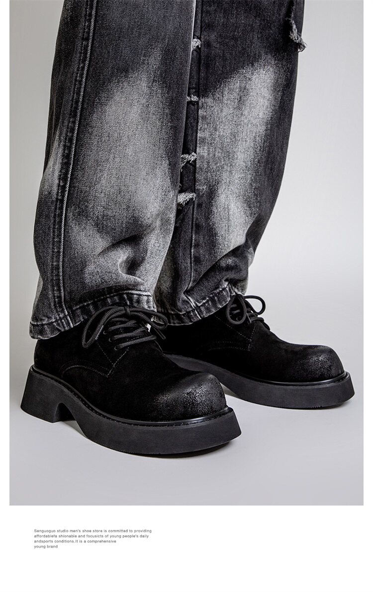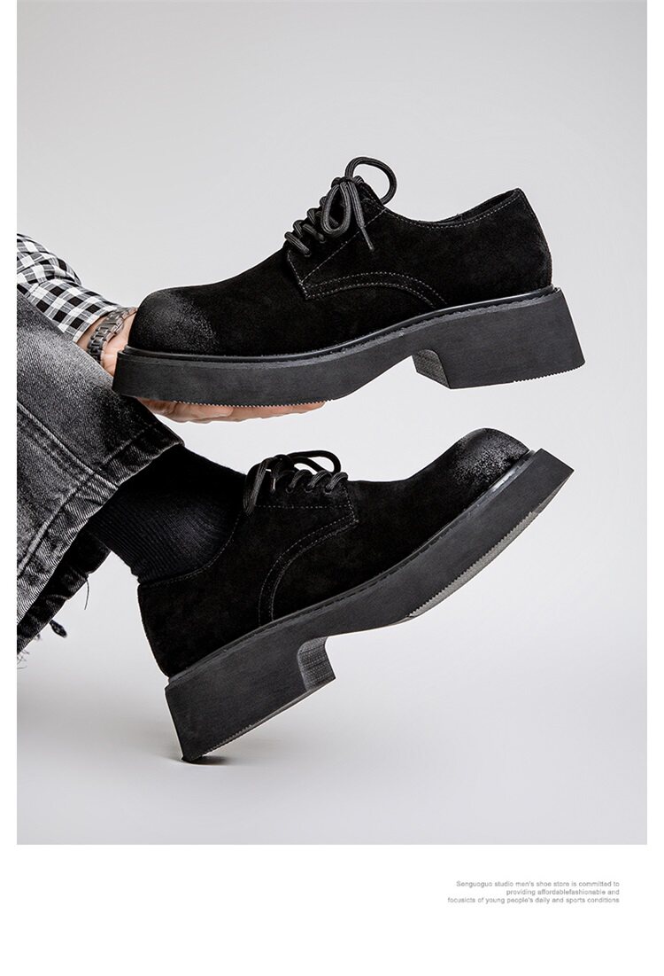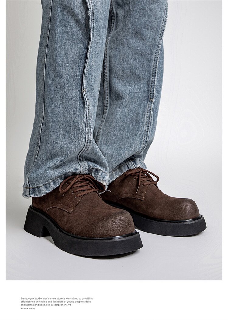 Derby Shoes Men's Summer Breathable Thick-Soled Heightening Genuine Leather Work Shoes Versatile Casual Low-Top Retro Big-Toe Leather Shoes