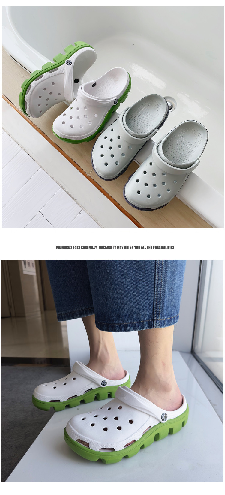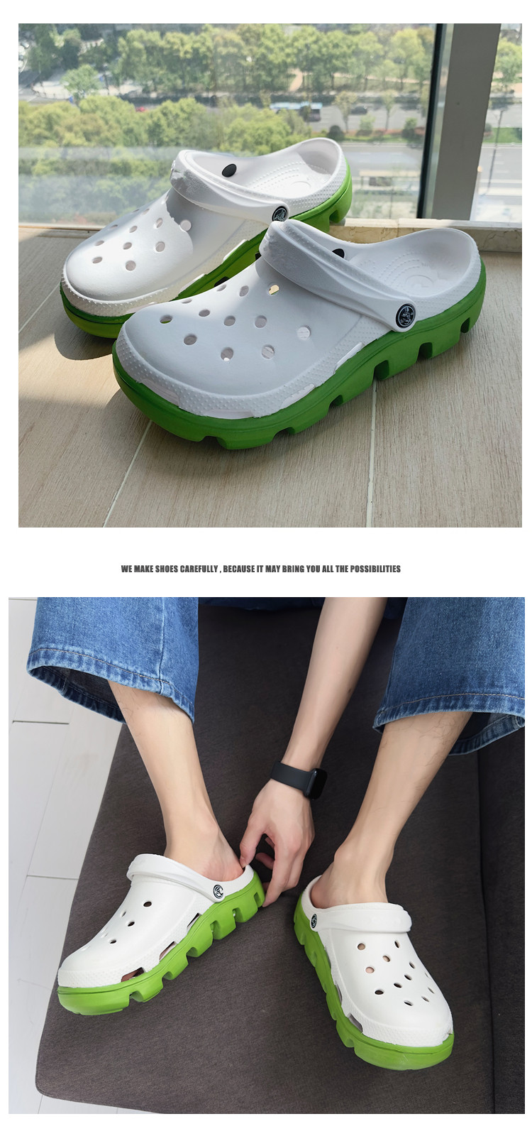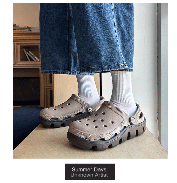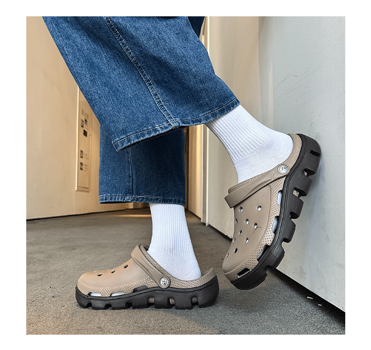 Croc-Style Shoes for Men 2024 New Summer Non-Slip Outdoor Slippers for Women Height-Increasing Beach Soft-Soled Couple's Closed-Toe Sandals