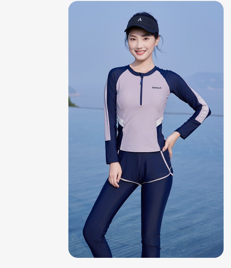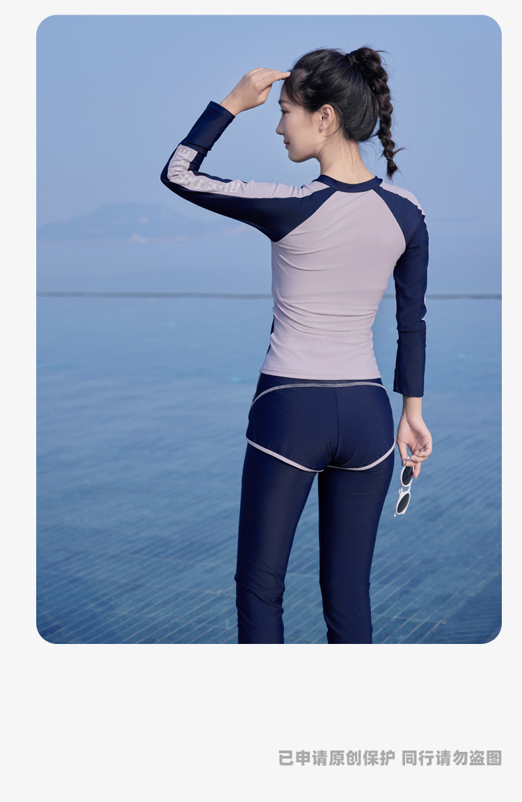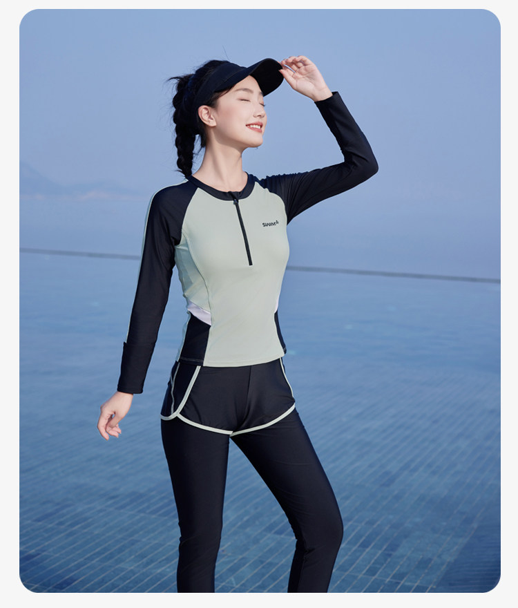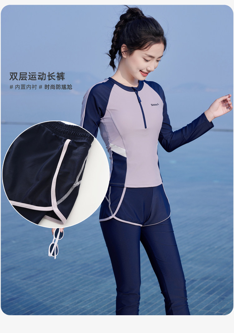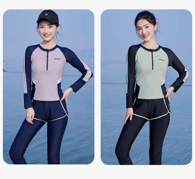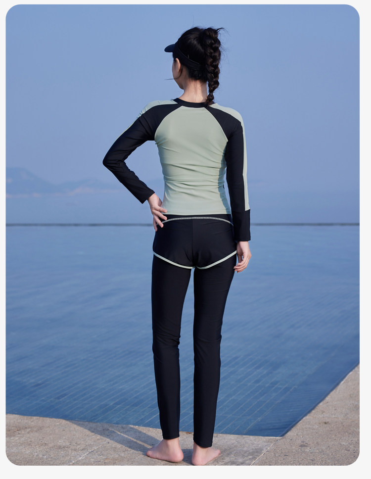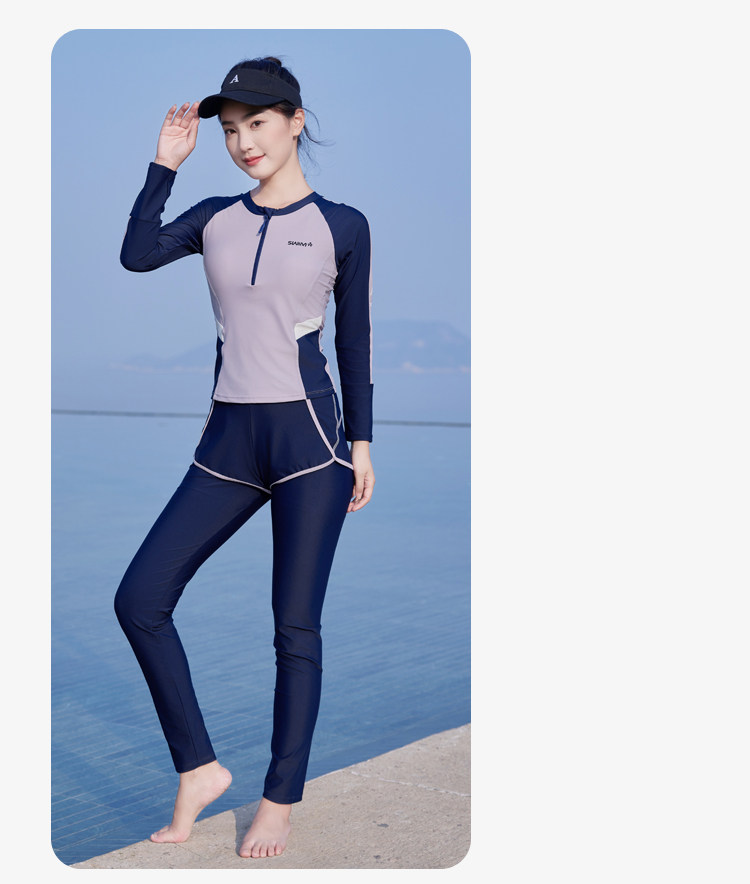 2025 New Long-Sleeved and Long-Pants Swimsuit for Women, Two-Piece, Summer Sun Protection, Conservative, for Swimming Pools, Suitable for Slightly Chubby Girls to Cover Their Body