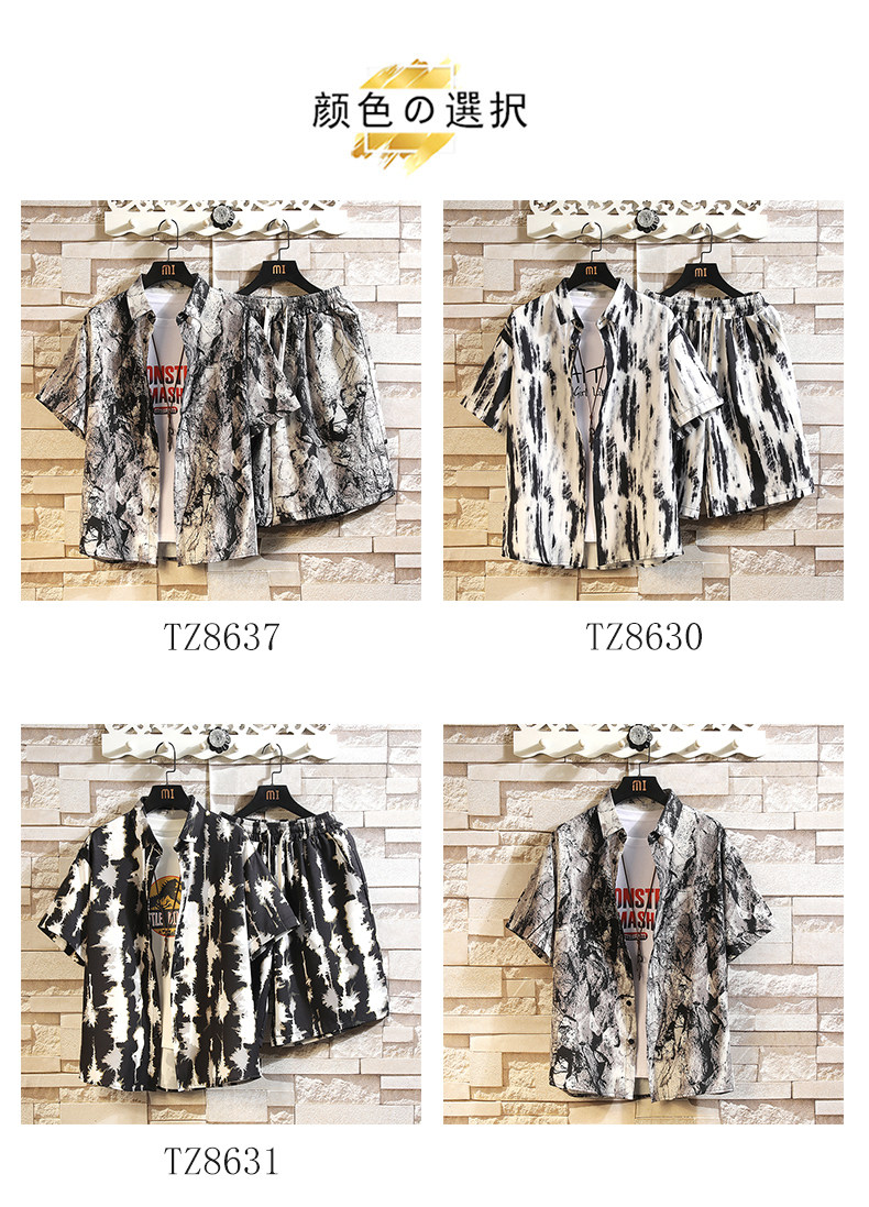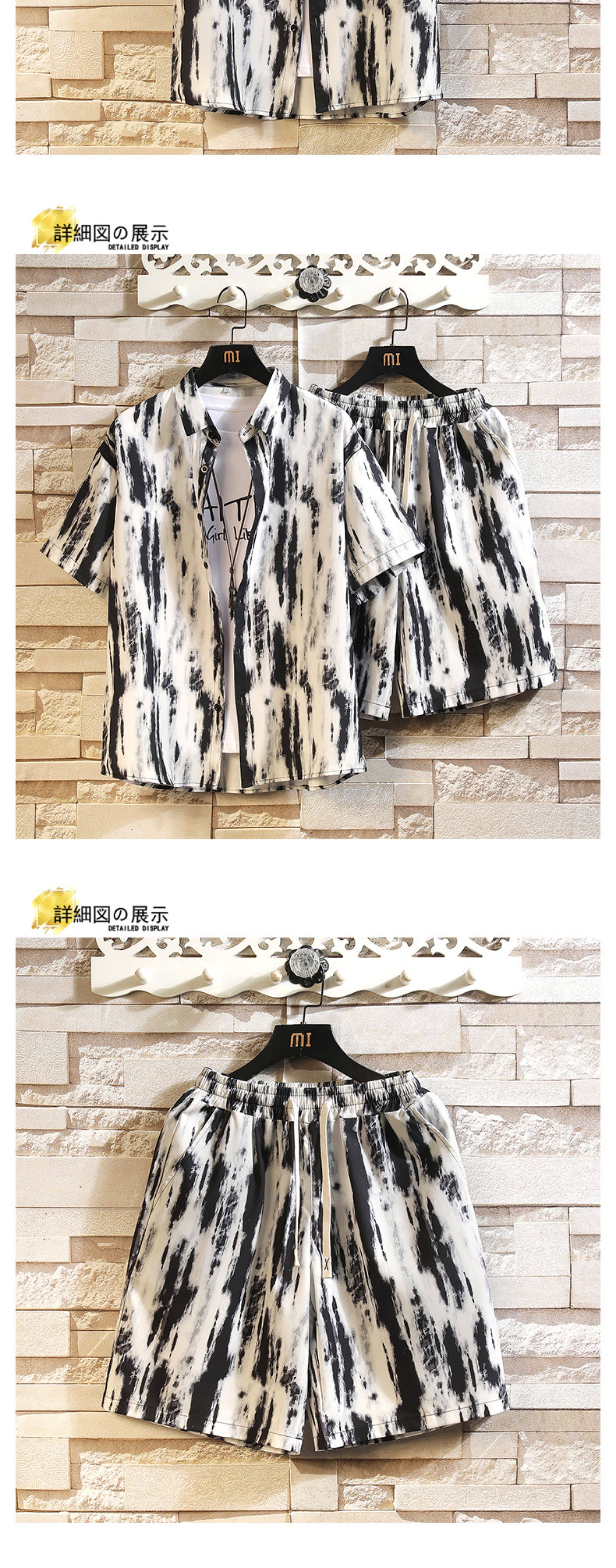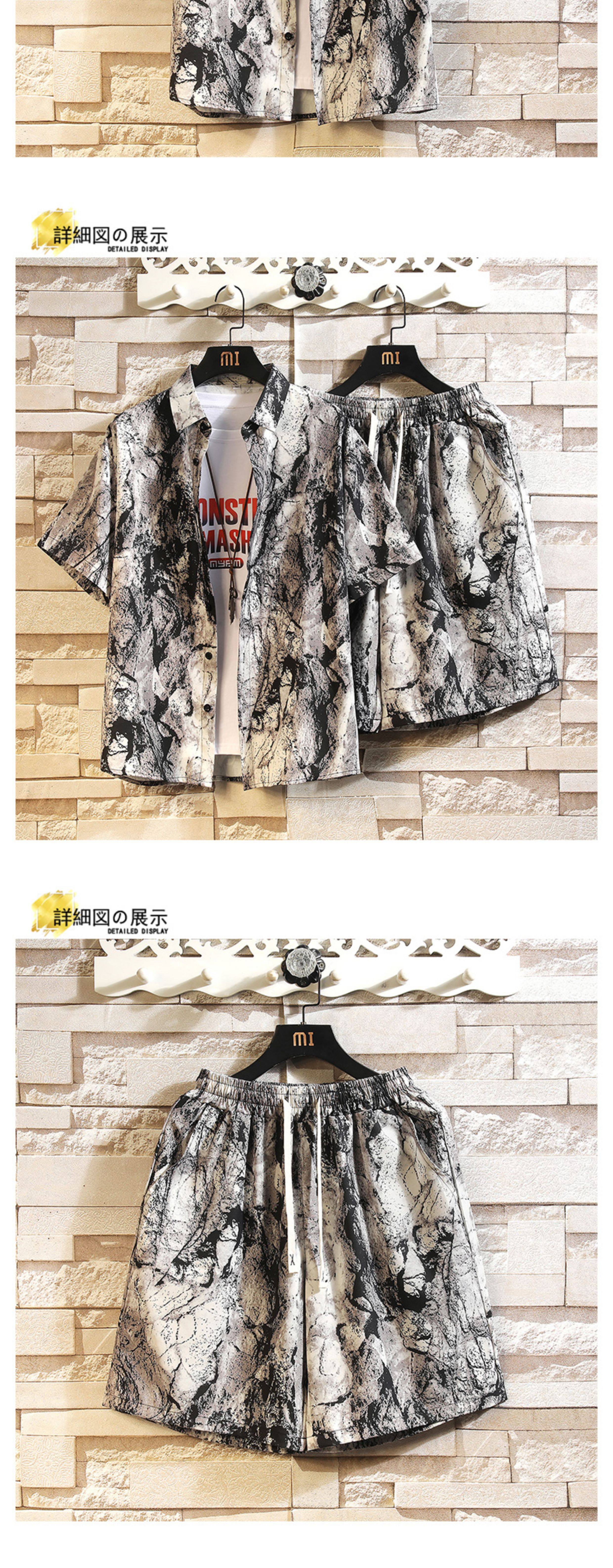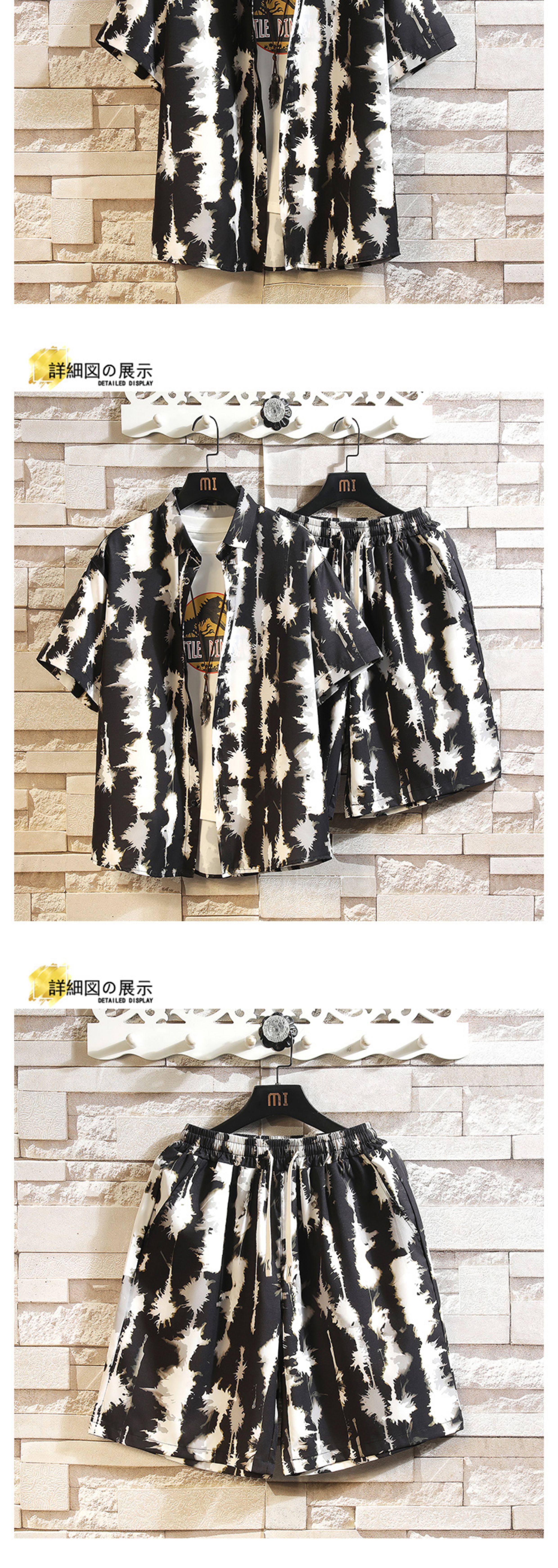 Hawaiian Beach Outfit, Beach Floral Shirt for Men, Summer Thin Trendy Brand Sanya Vacation Ice Silk Shorts Set
