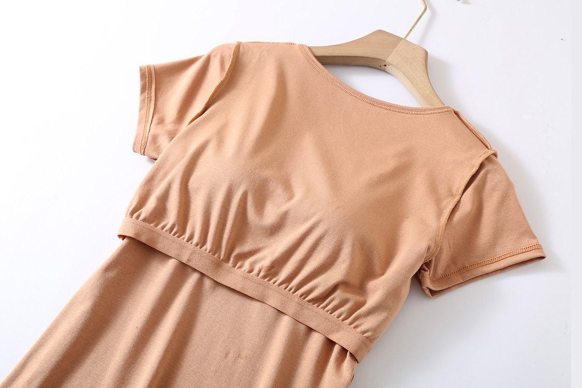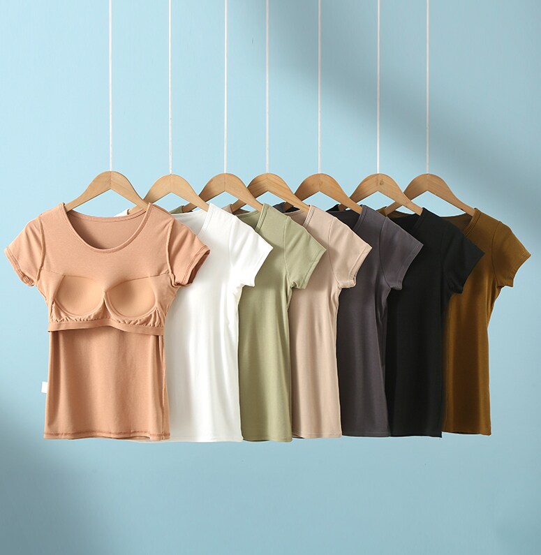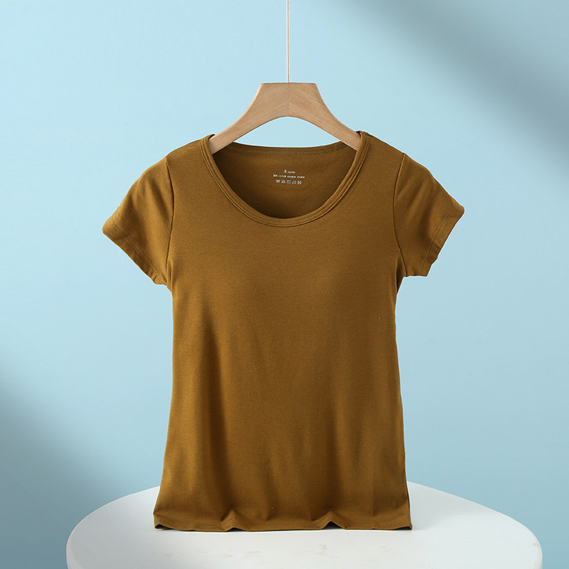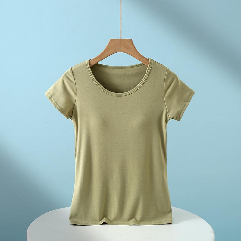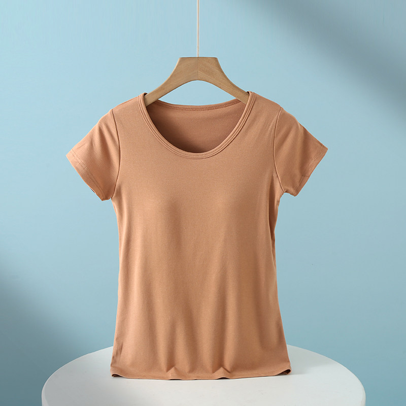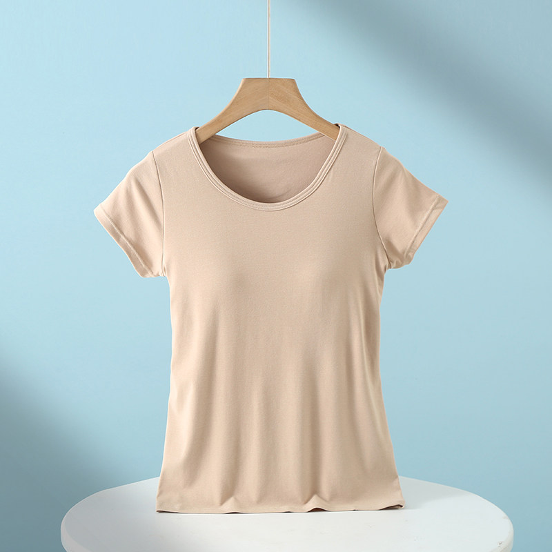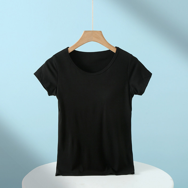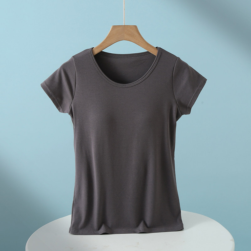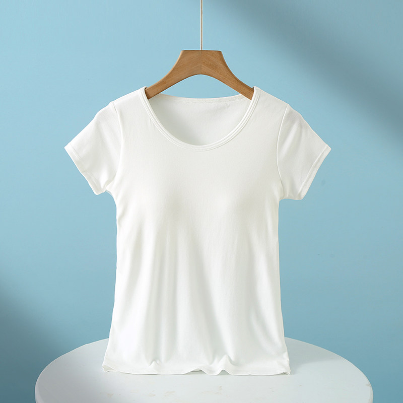 Padded pajamas women's tops short-sleeved summer cup all-in-one half-sleeved home wear modal cotton bottoming shirt t-shirt