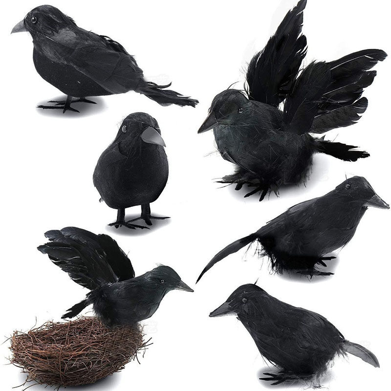 Halloween Decoration Artificial Crow Figurine Party Bar Tabletop Theme Decoration Scene Setup Photo Props