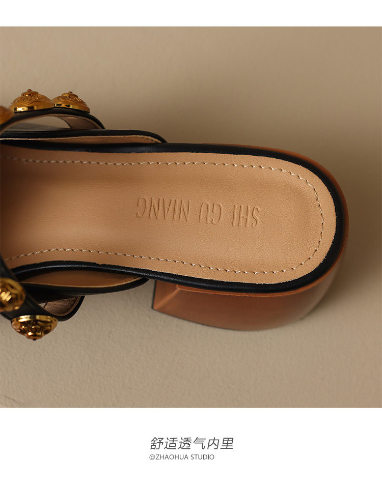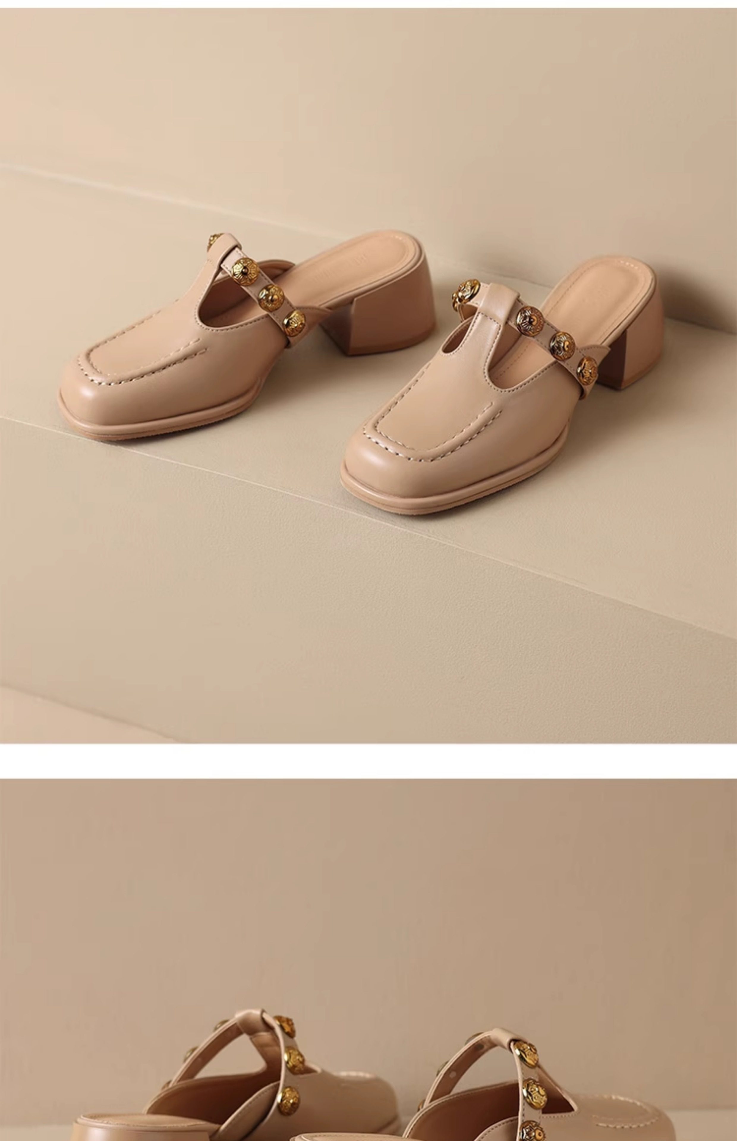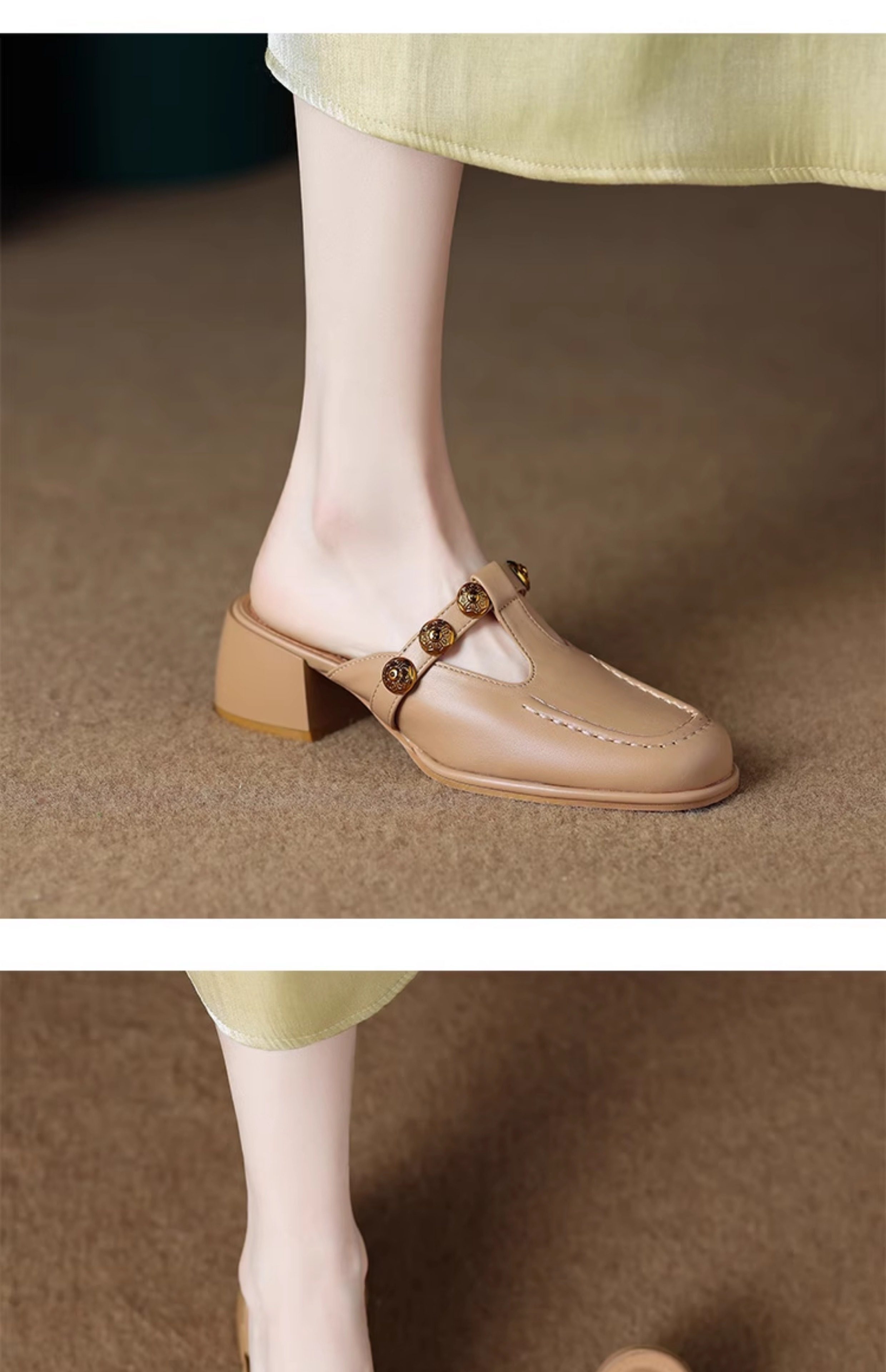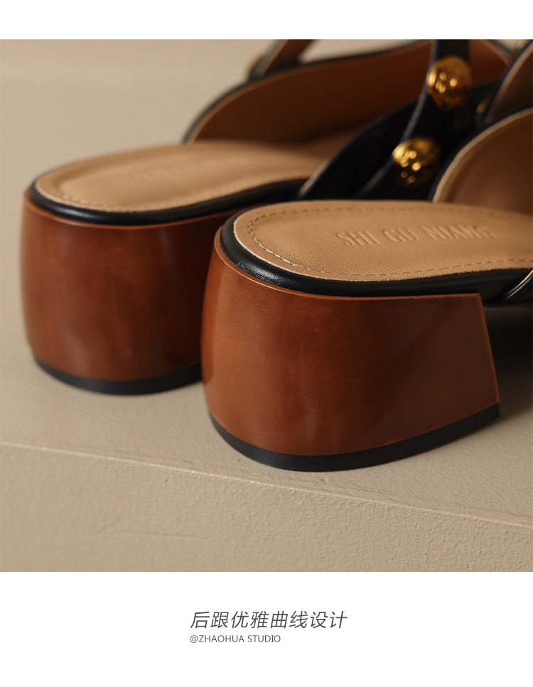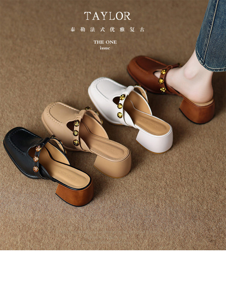 Sheepskin Retro Style High-Heeled Closed-Toe Mules for Women, Summer 2025 New Model, Slip-On, High-End Feel Sandals