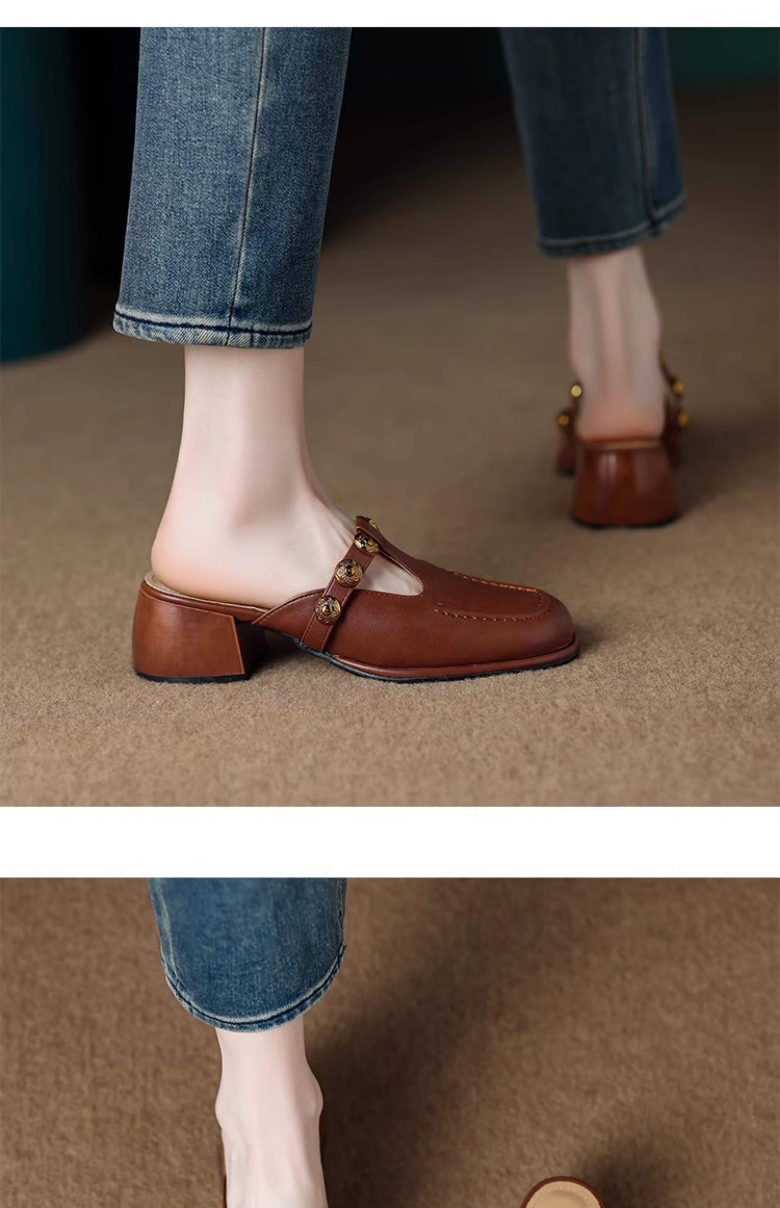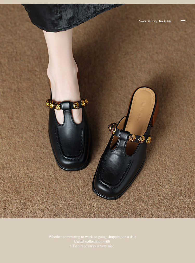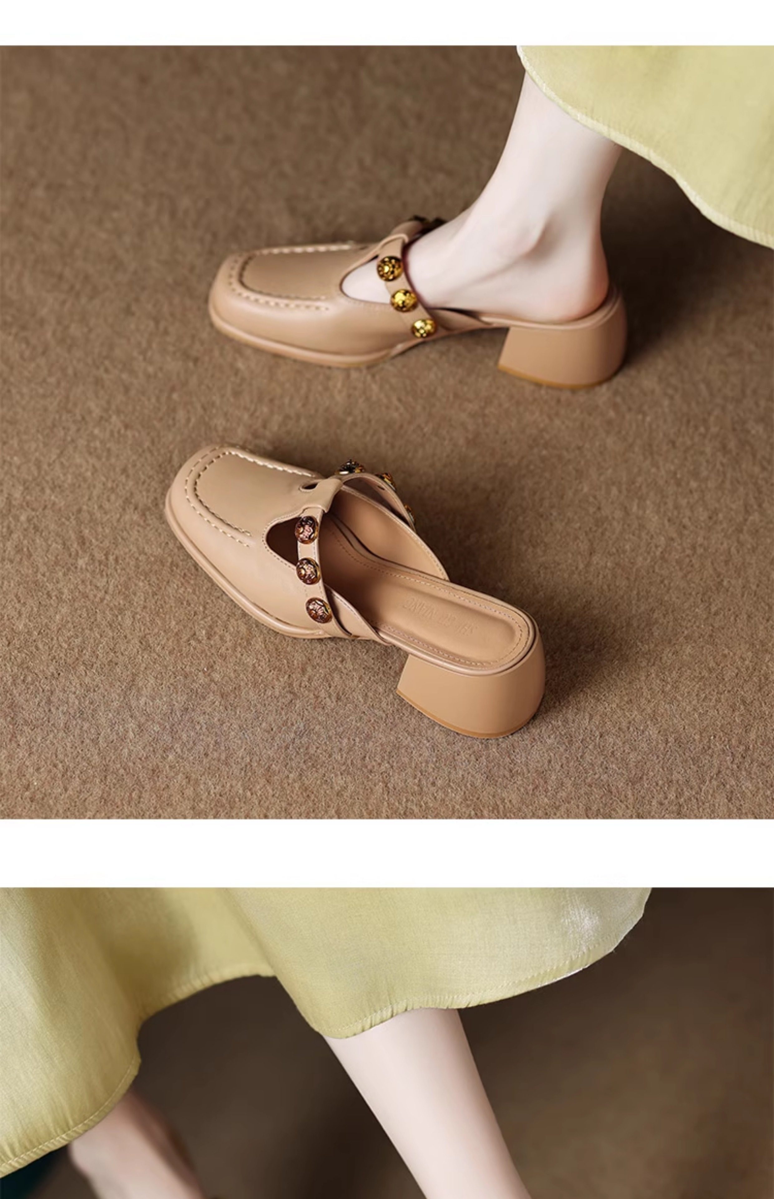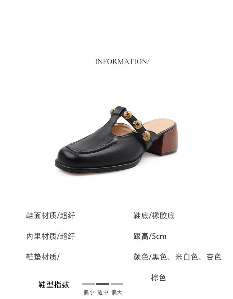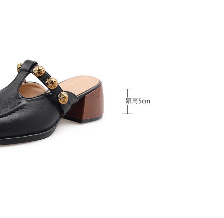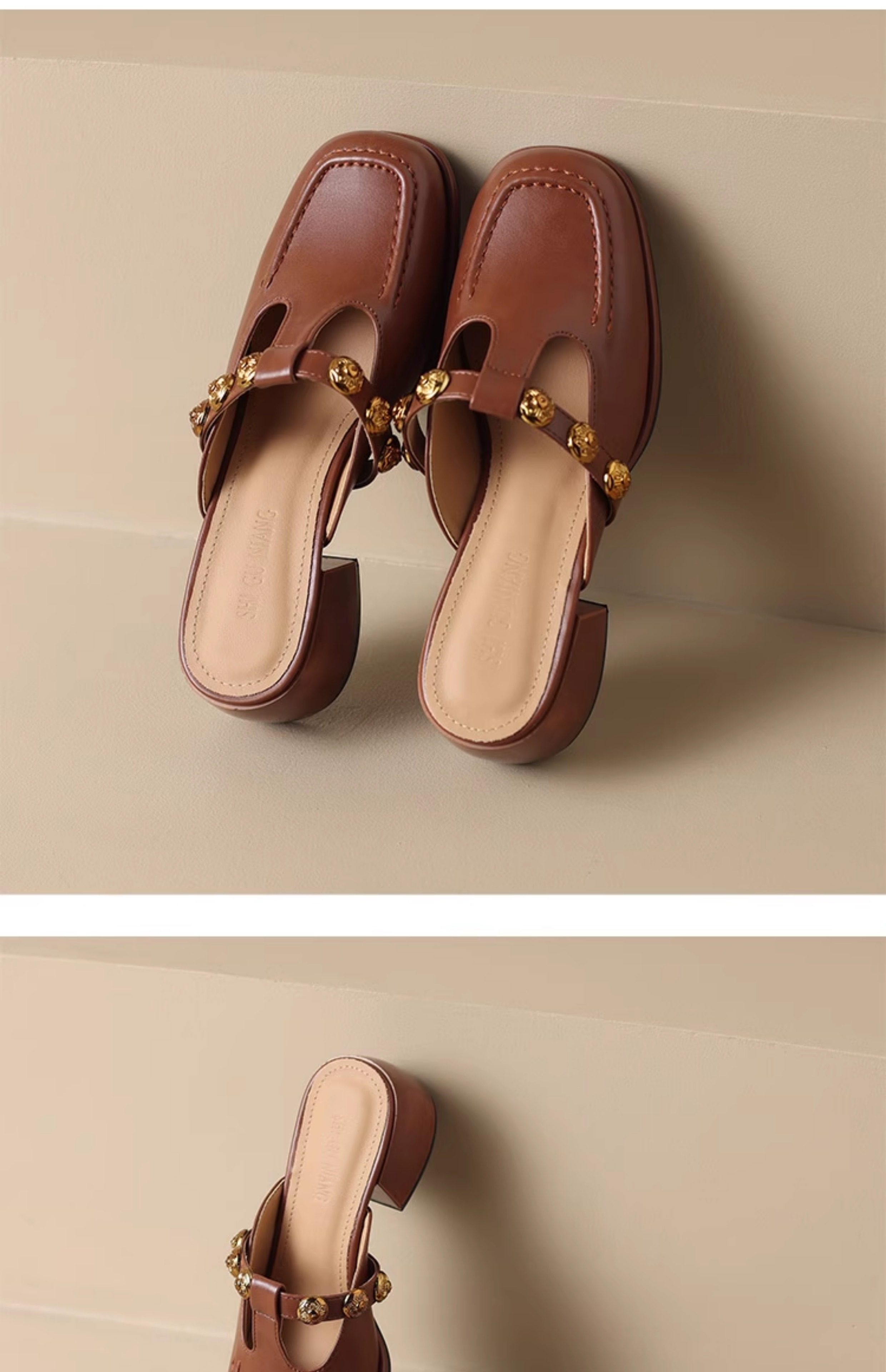 Sheepskin Retro Style High-Heeled Closed-Toe Mules for Women, Summer 2025 New Model, Slip-On, High-End Feel Sandals