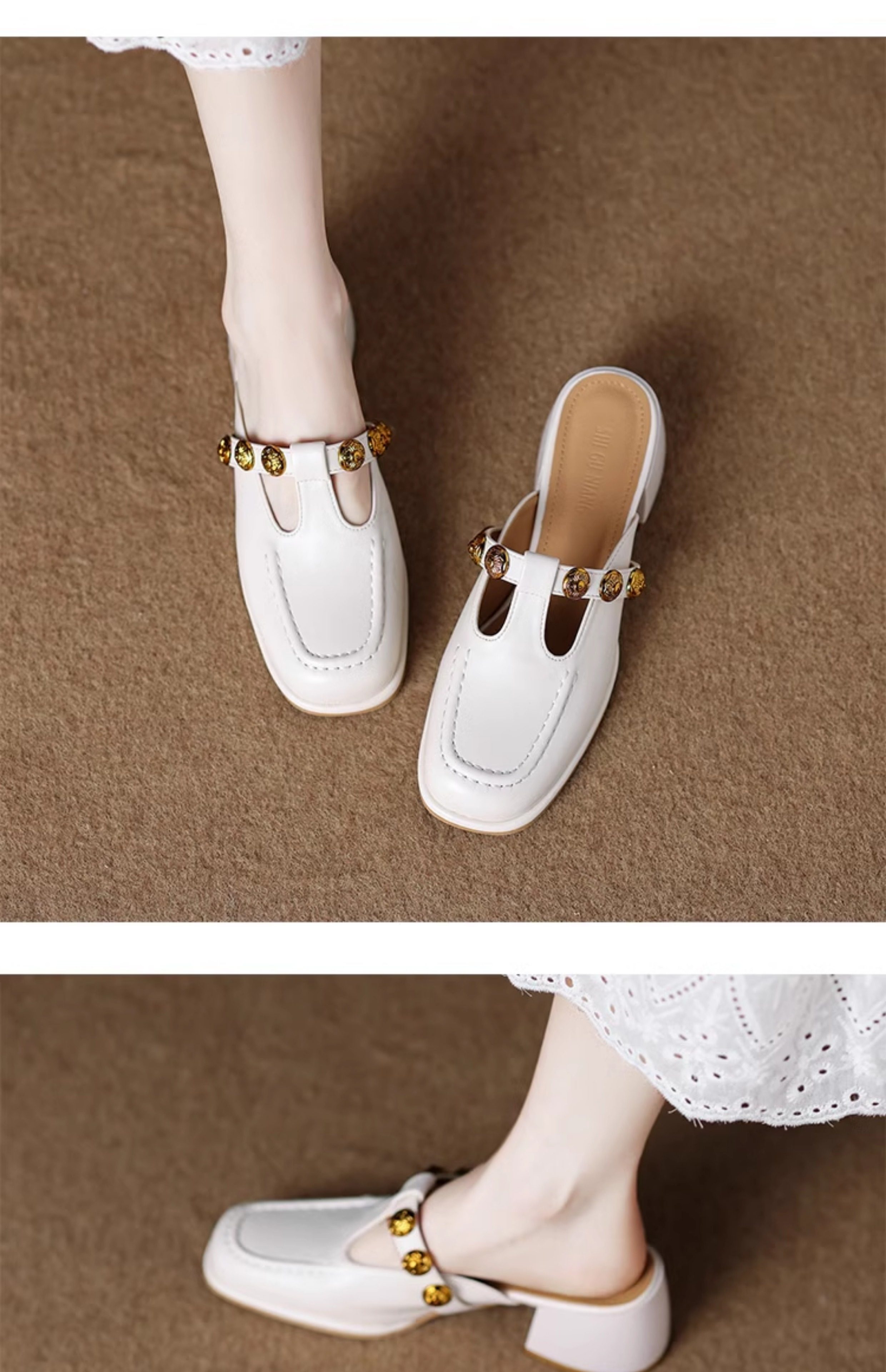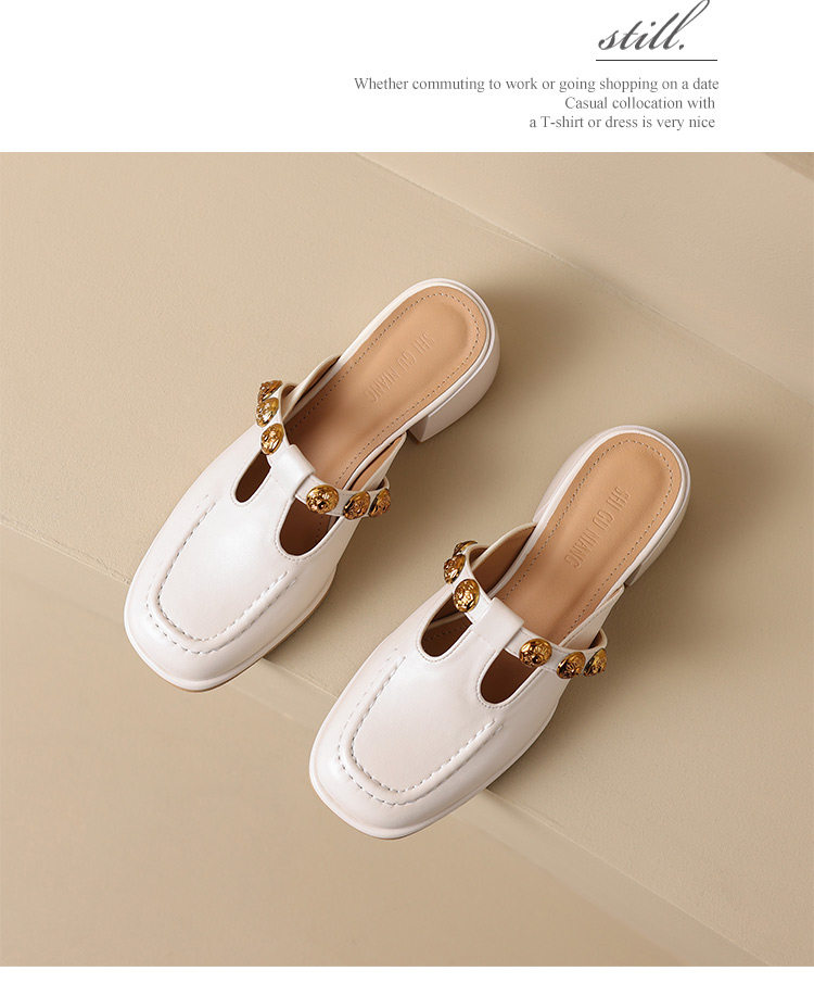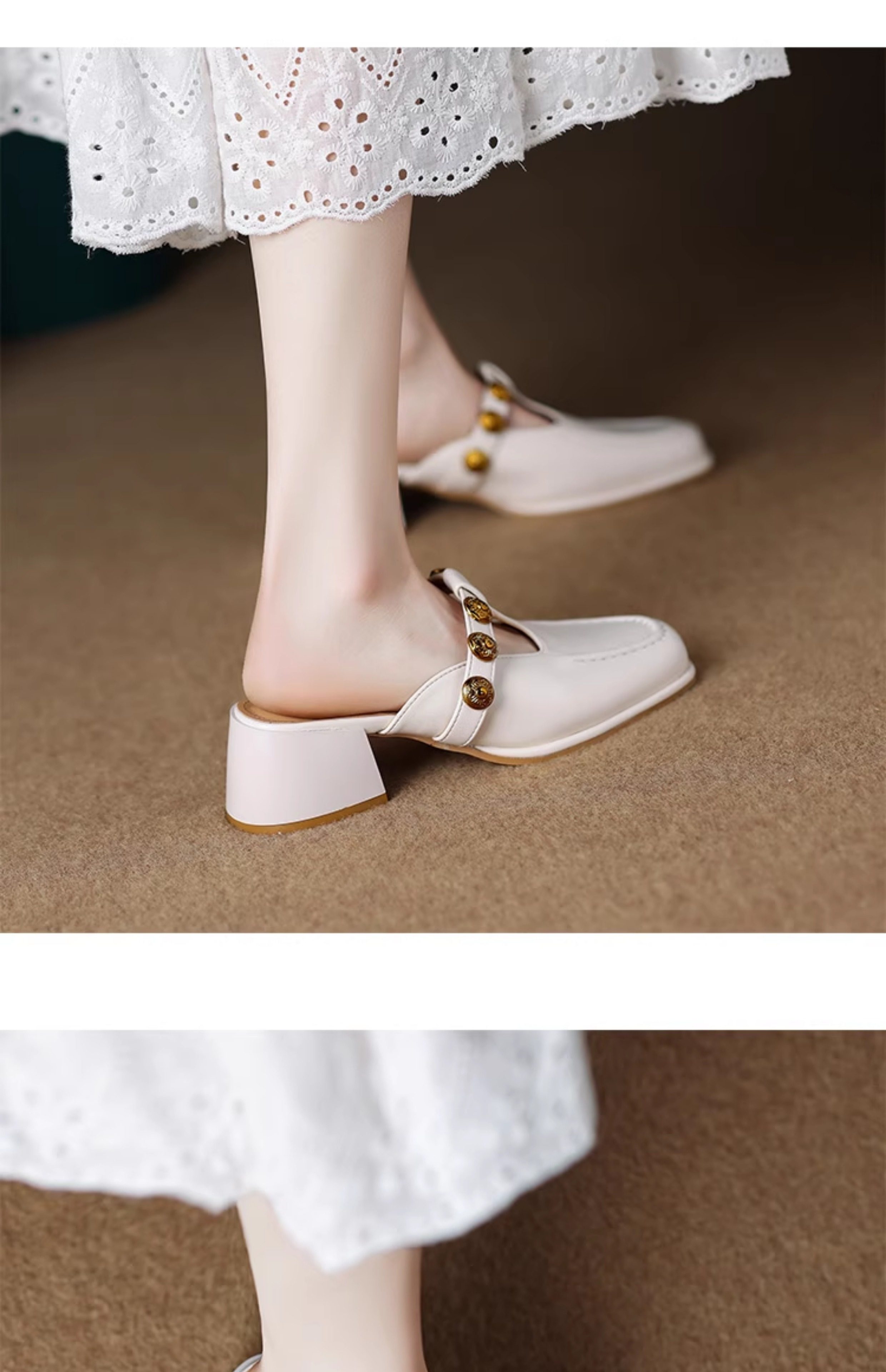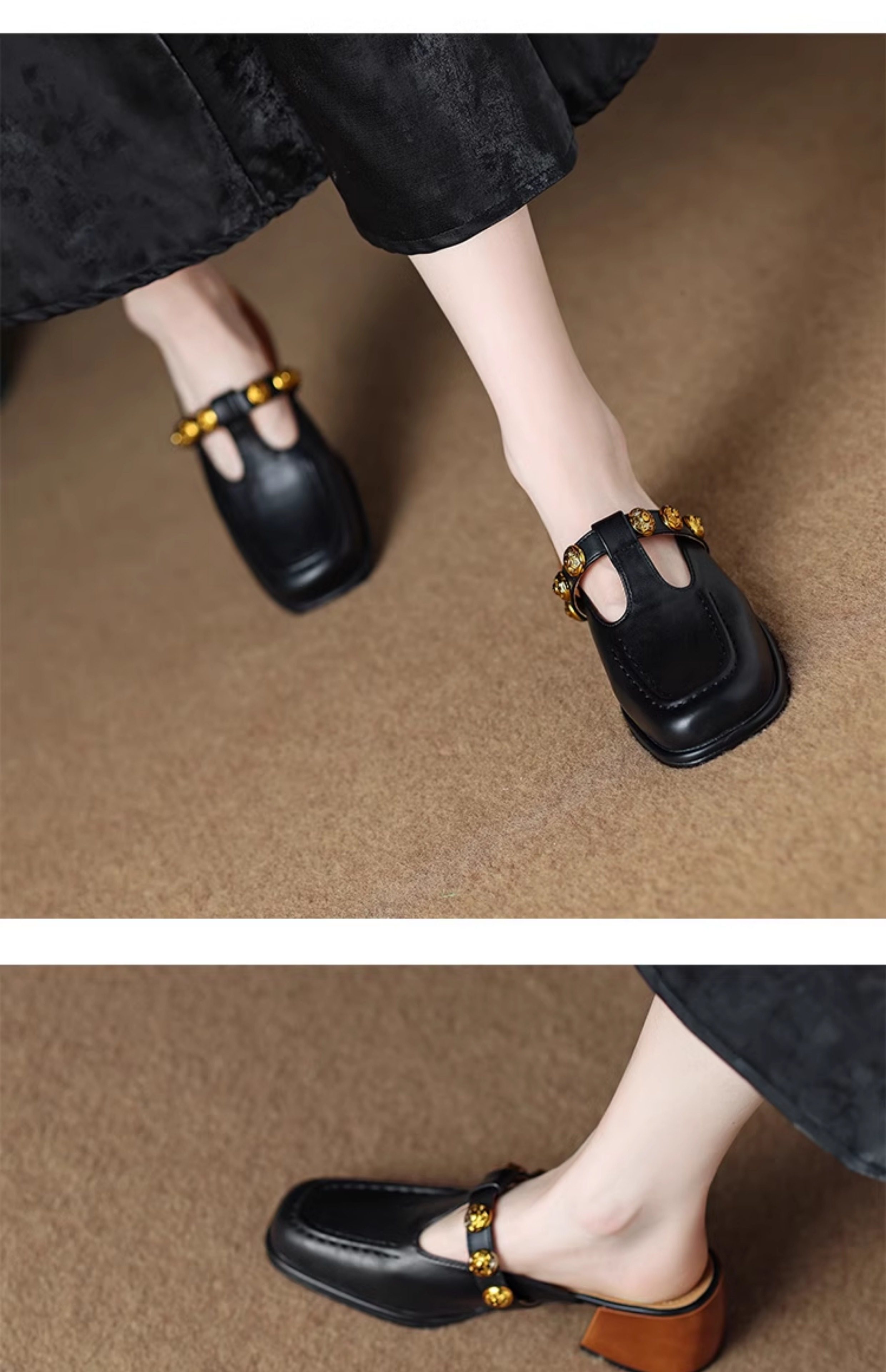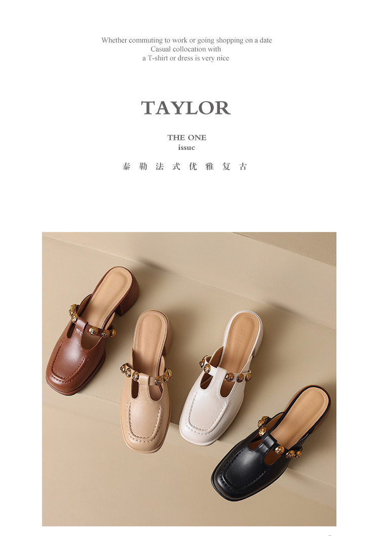 Sheepskin Retro Style High-Heeled Closed-Toe Mules for Women, Summer 2025 New Model, Slip-On, High-End Feel Sandals