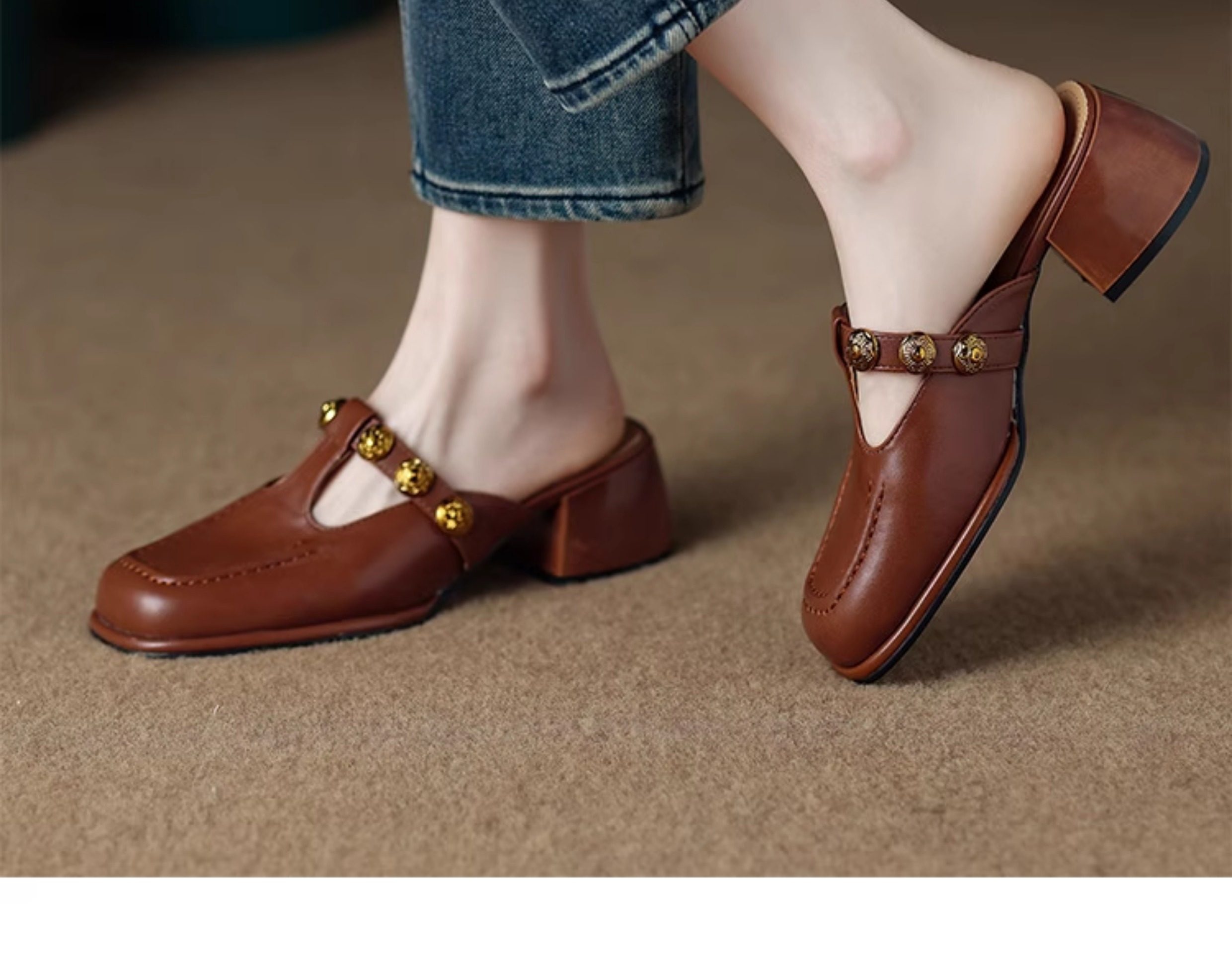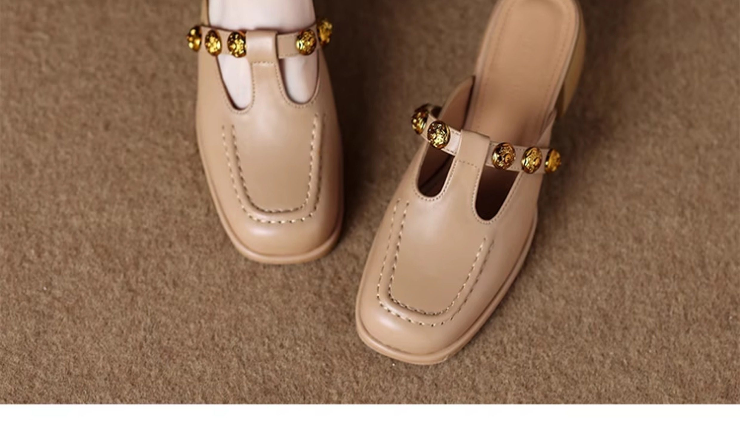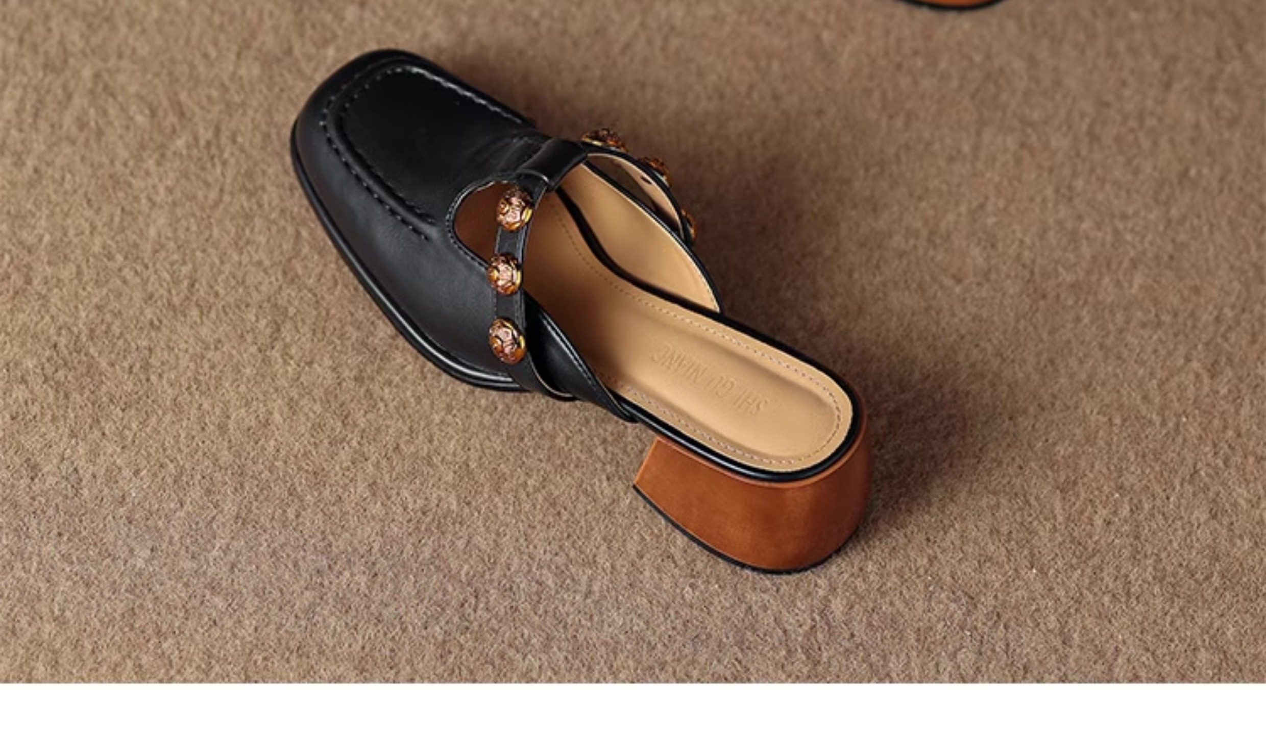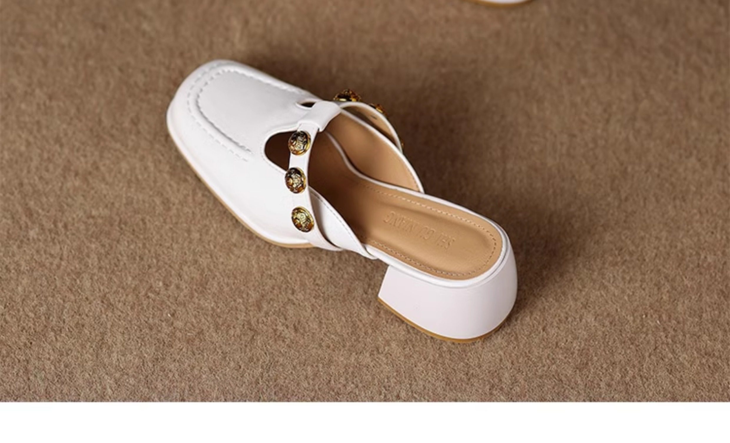 Sheepskin Retro Style High-Heeled Closed-Toe Mules for Women, Summer 2025 New Model, Slip-On, High-End Feel Sandals