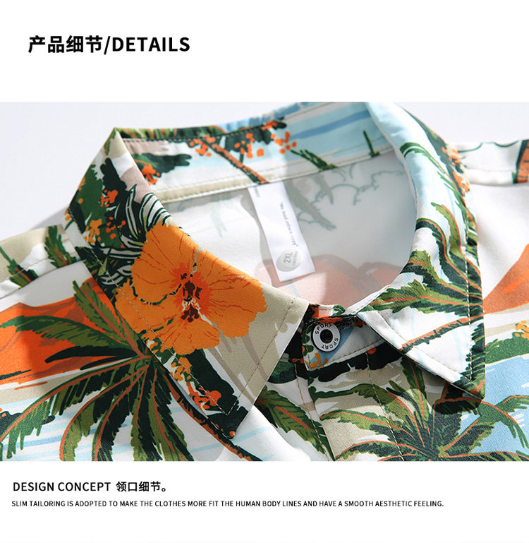 Hawaiian style floral shirt suit for men in summer casual loose ice island suit couple Thailand travel wear shirt