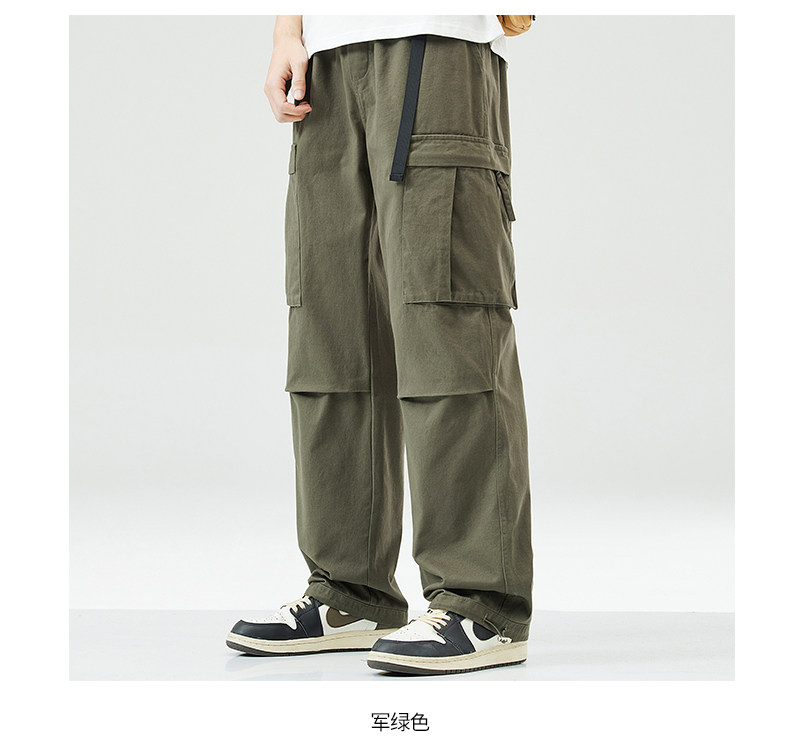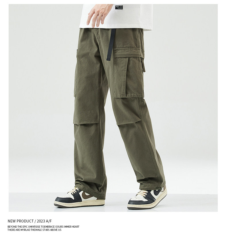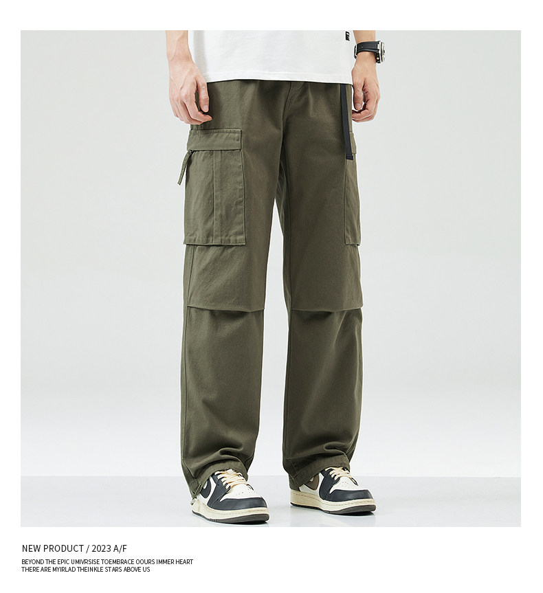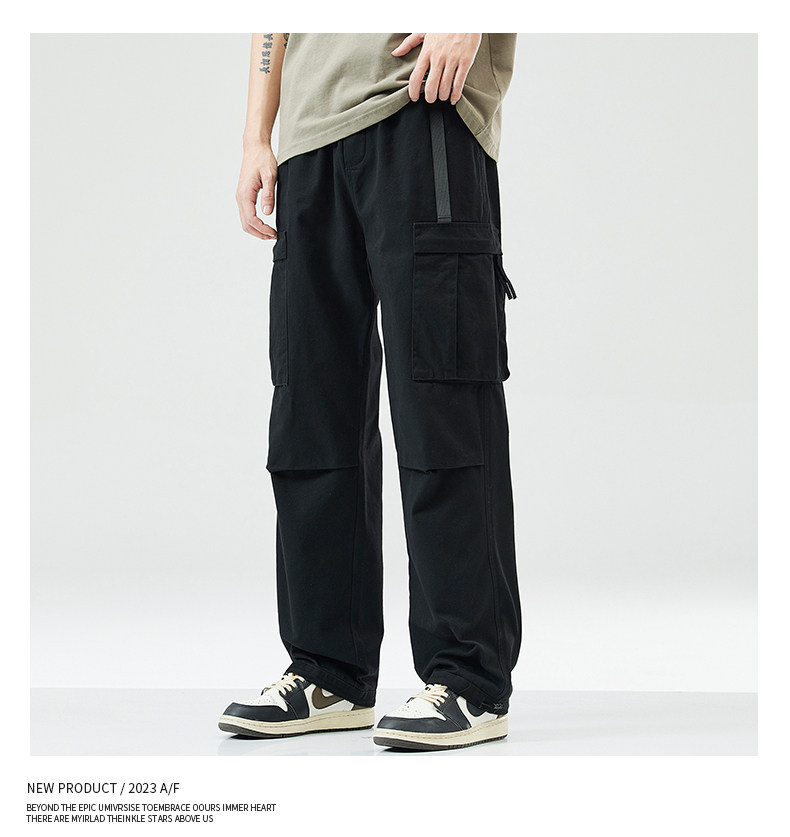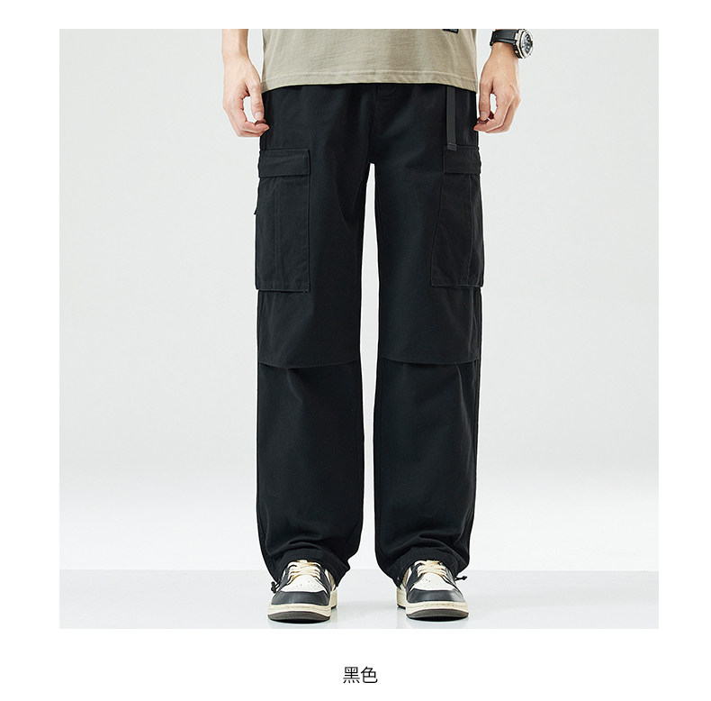 American-Style Pure Cotton Cargo Pants for Men 2024 New Summer Trendy Brand Cool Loose Jogger Pants Casual Straight-Leg Trousers