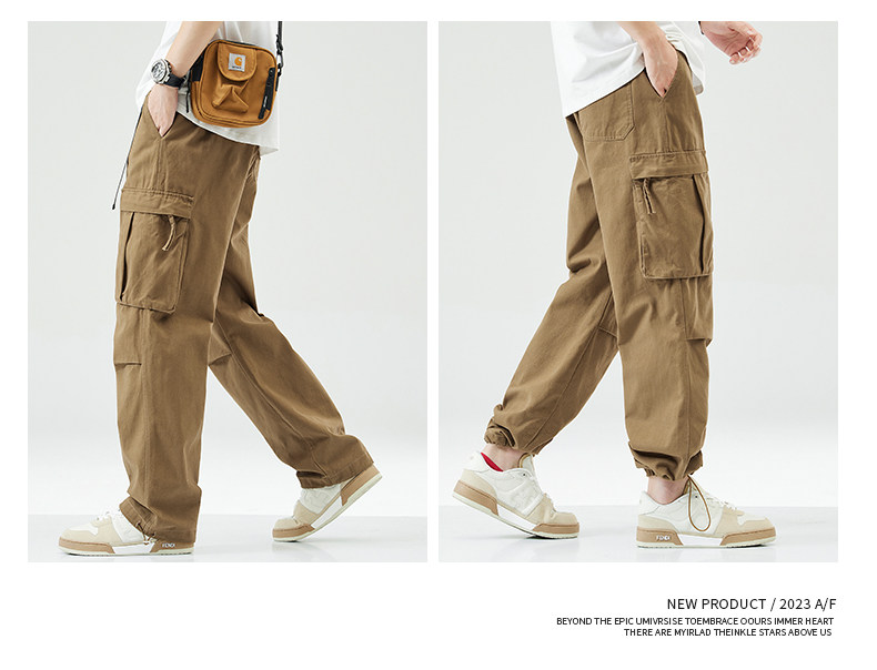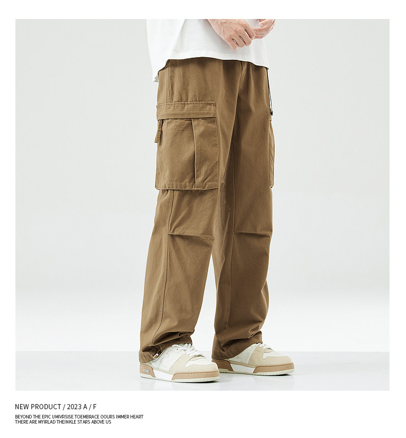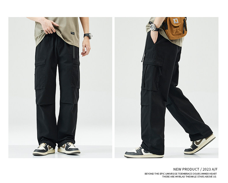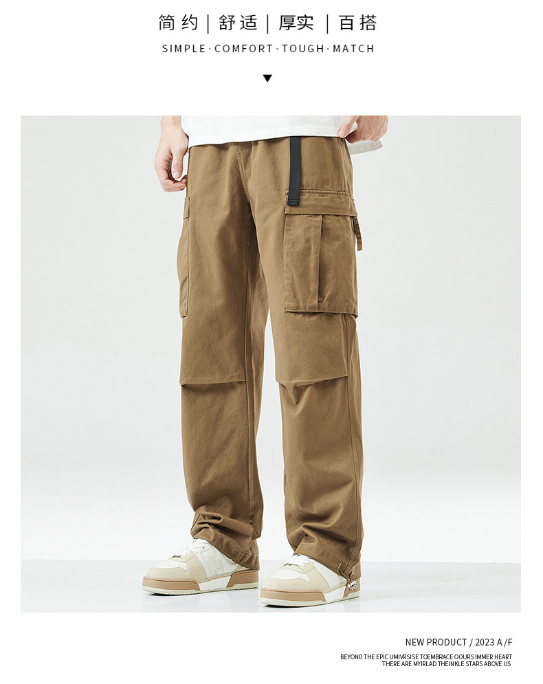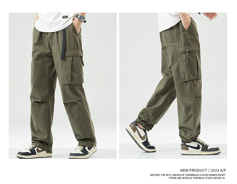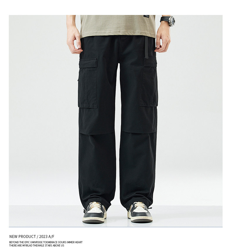 American-Style Pure Cotton Cargo Pants for Men 2024 New Summer Trendy Brand Cool Loose Jogger Pants Casual Straight-Leg Trousers
