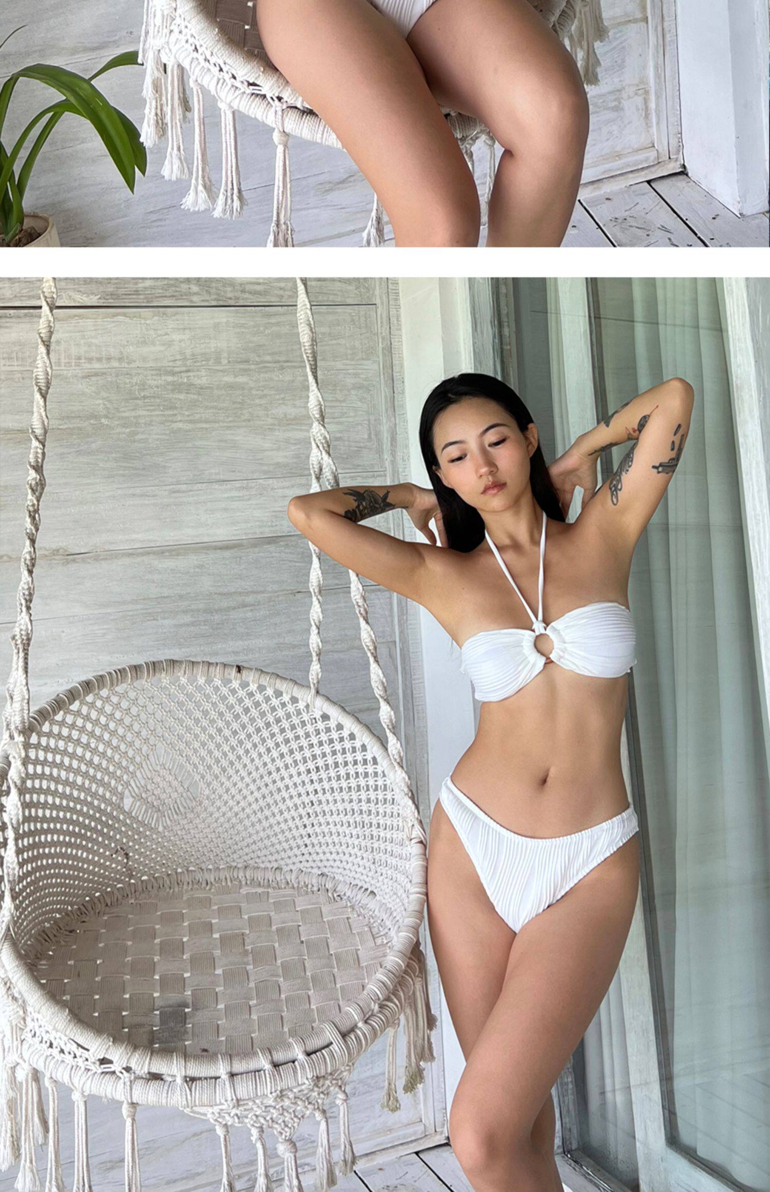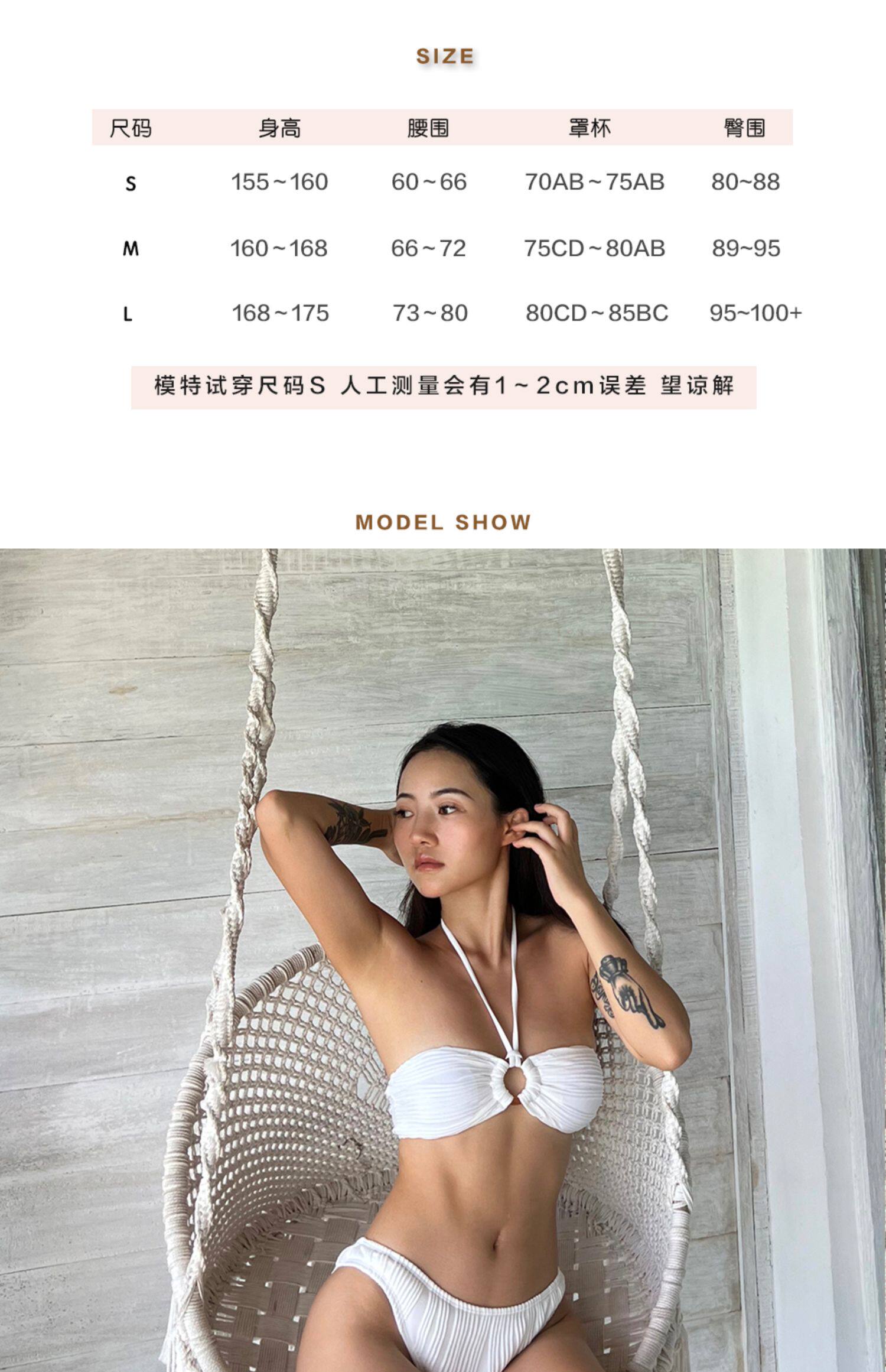 DOLCEVITA French resort tube top bikini white romantic push-up high slit hip-revealing split swimsuit for women