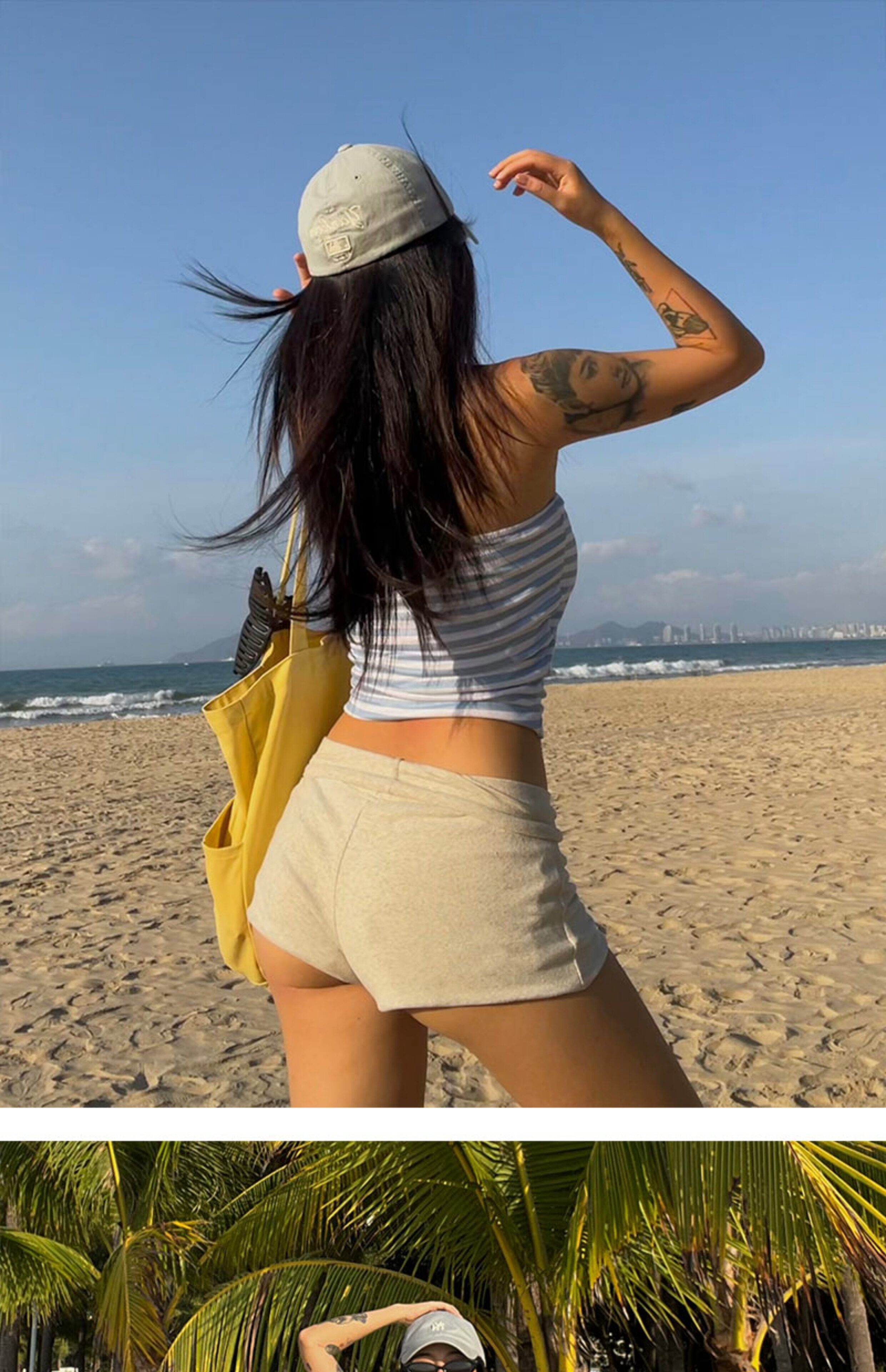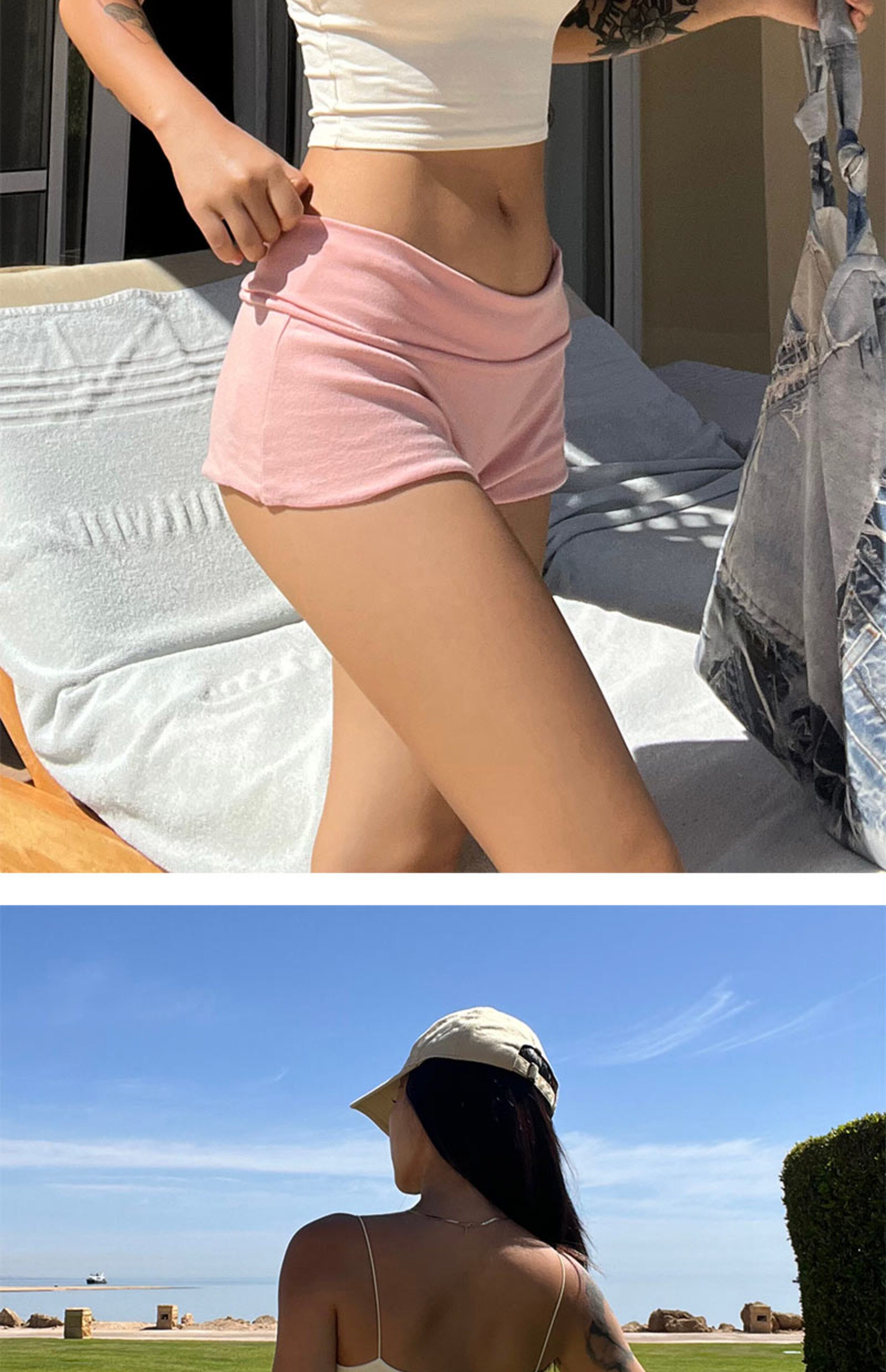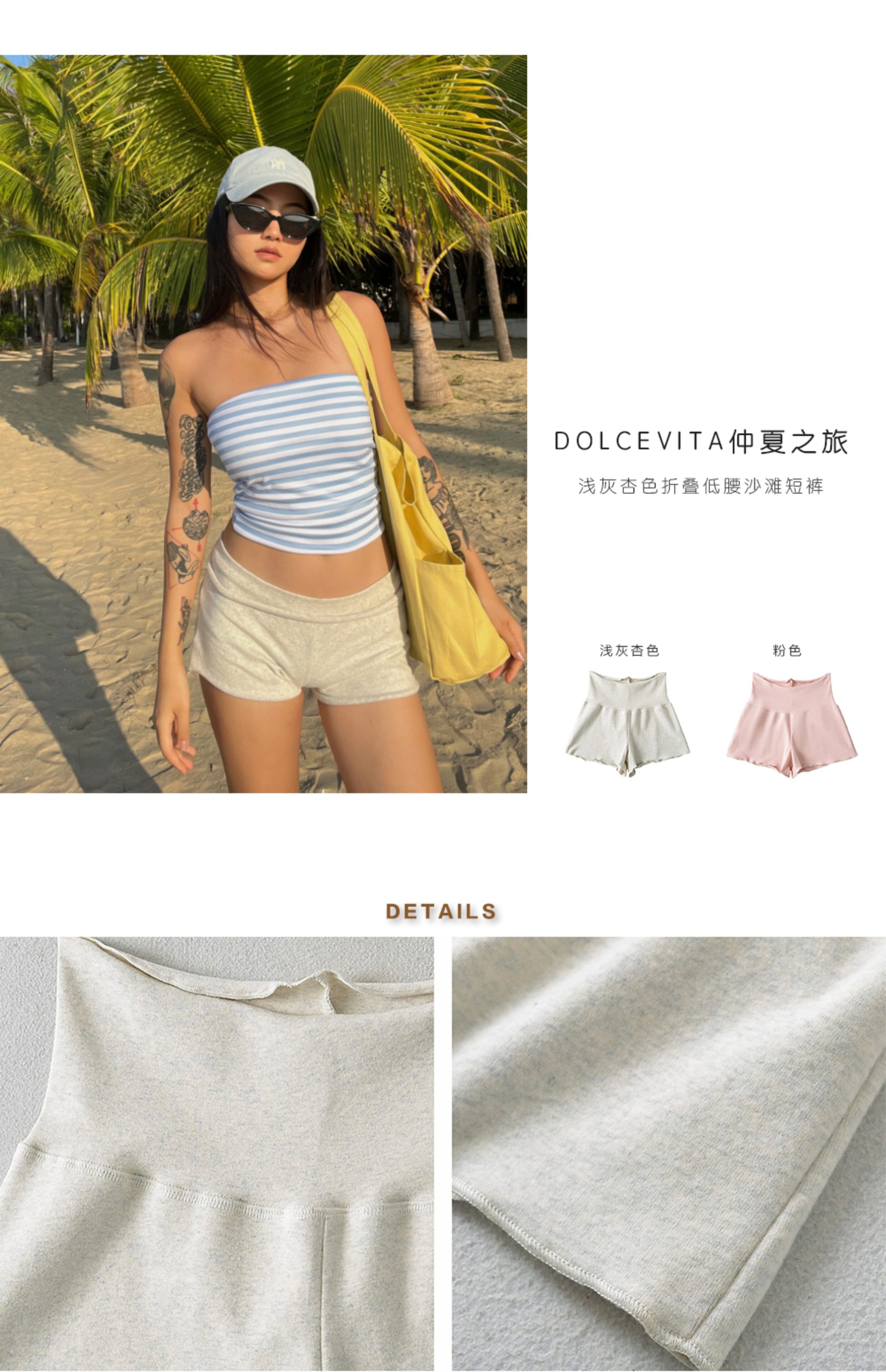 DOLCEVITA Beach Sports Hot Girl Folding Low Waist Casual Shorts Showing Buttocks and Slimming Sexy High Elastic Hot Pants for Women