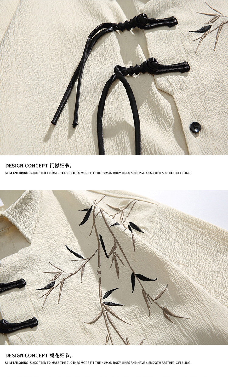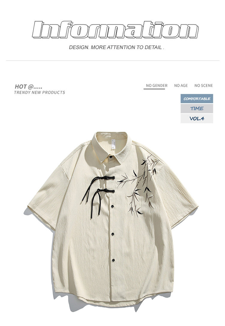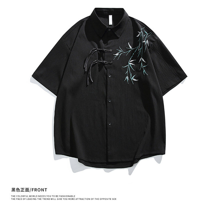 New Chinese style national style shirt men's summer new style bamboo leaf embroidery simple and versatile loose short-sleeved top for men and women