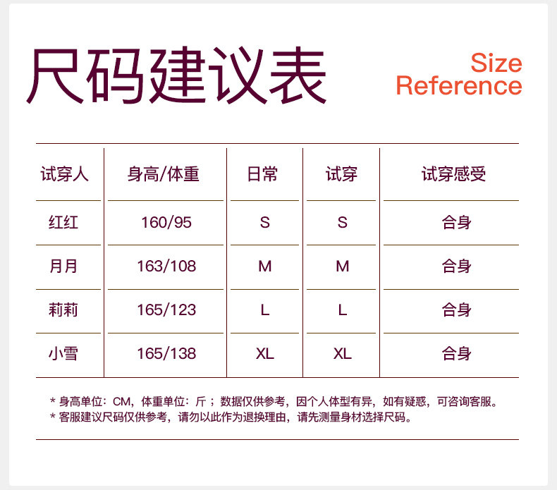 China (cm) 160-165/84-86 165-170 / 88-90 167-172 / 92-96 168-173 / 98-102 170-176 / 106-110