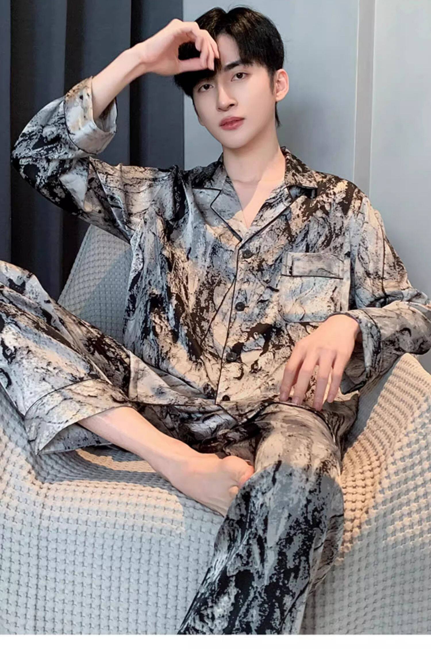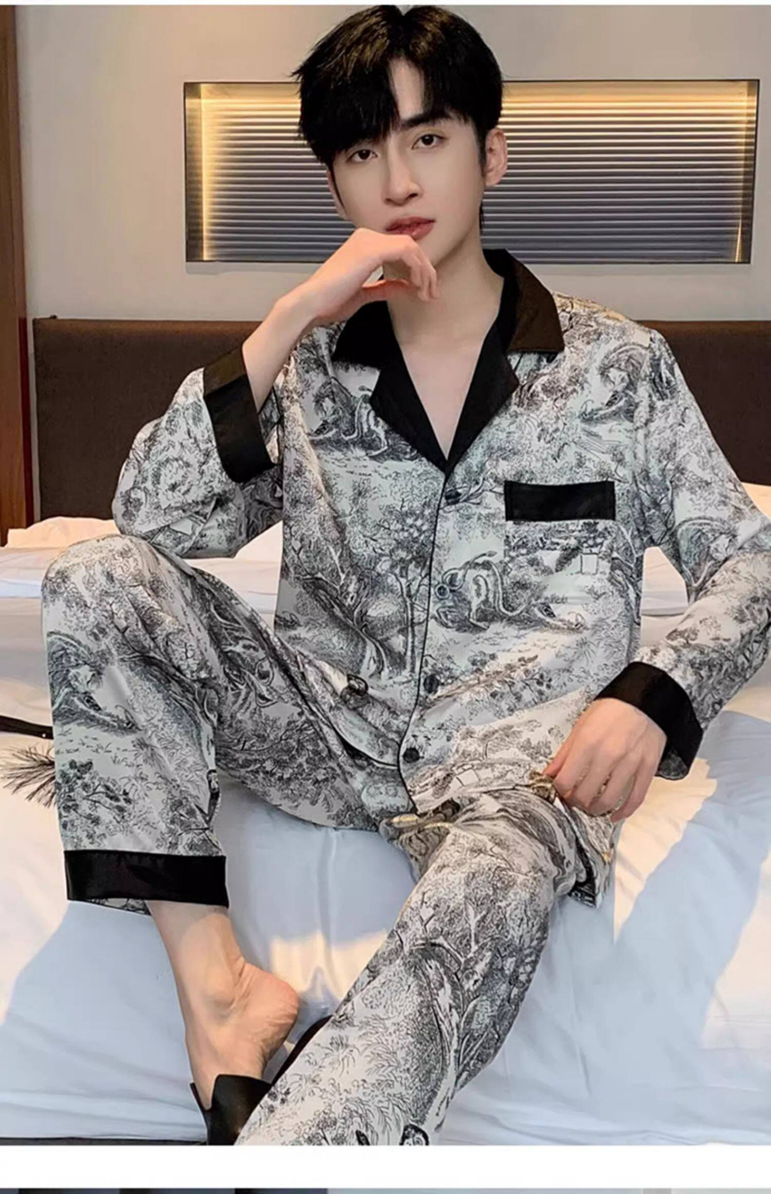 Style Number G-T250227-NSYN-[Long Sleeve Trousers]-[Satin]-White Landscape Men's Style