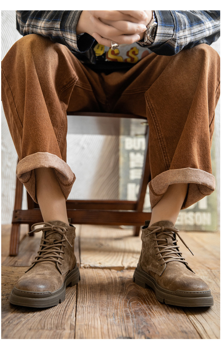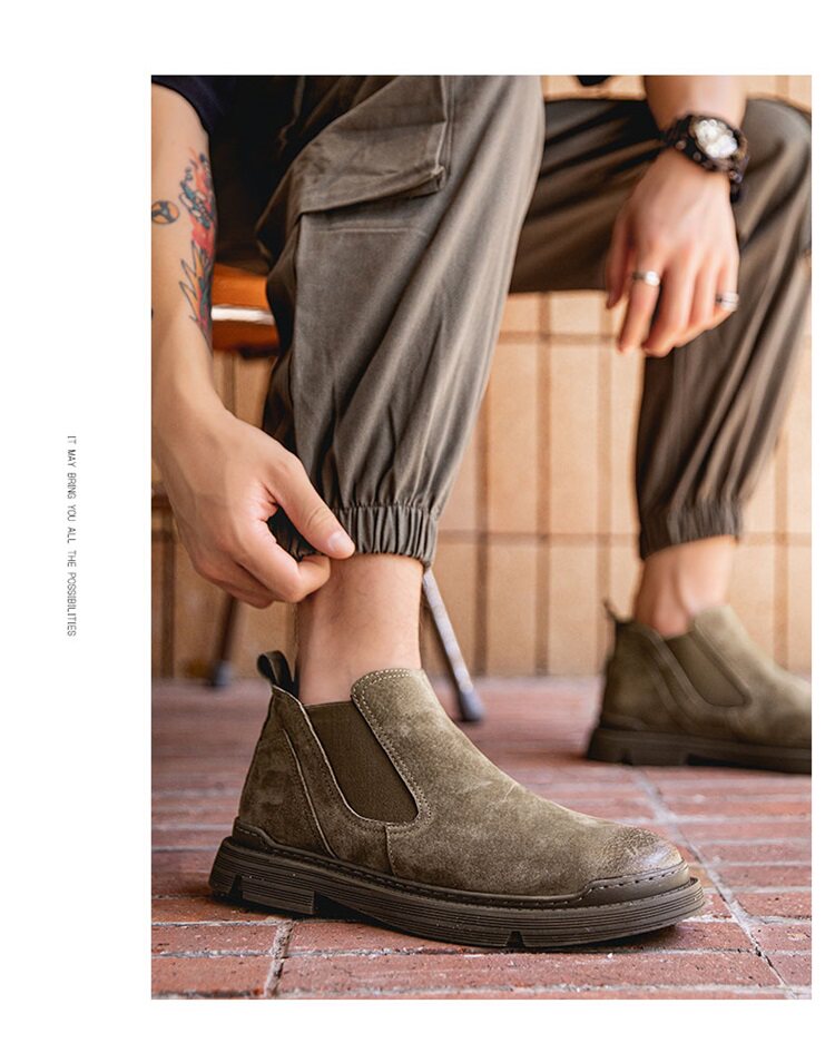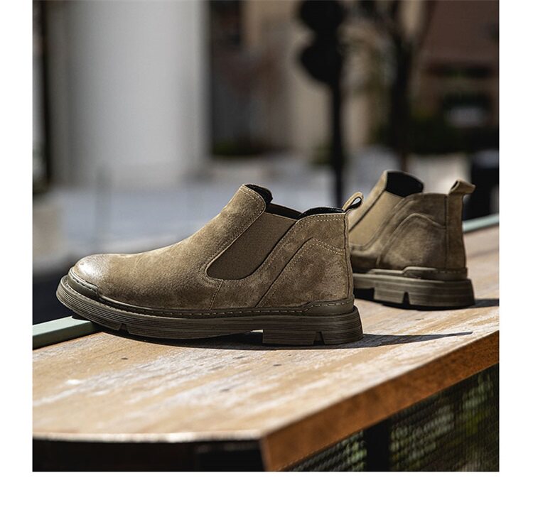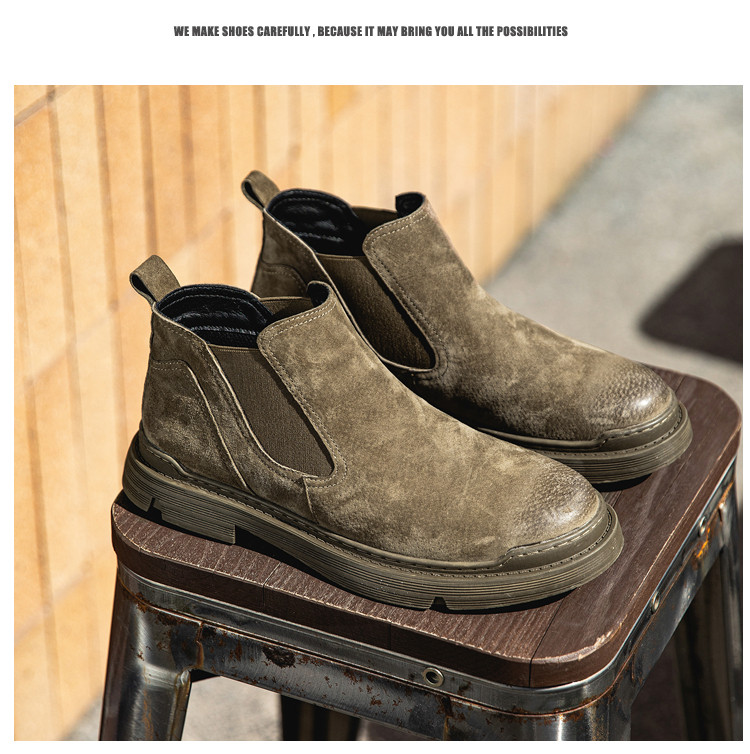 Chelsea Boots Men's New Winter Breathable Genuine Leather High-Top Short Boots British Style Casual Mid-Top Retro Martin Boots