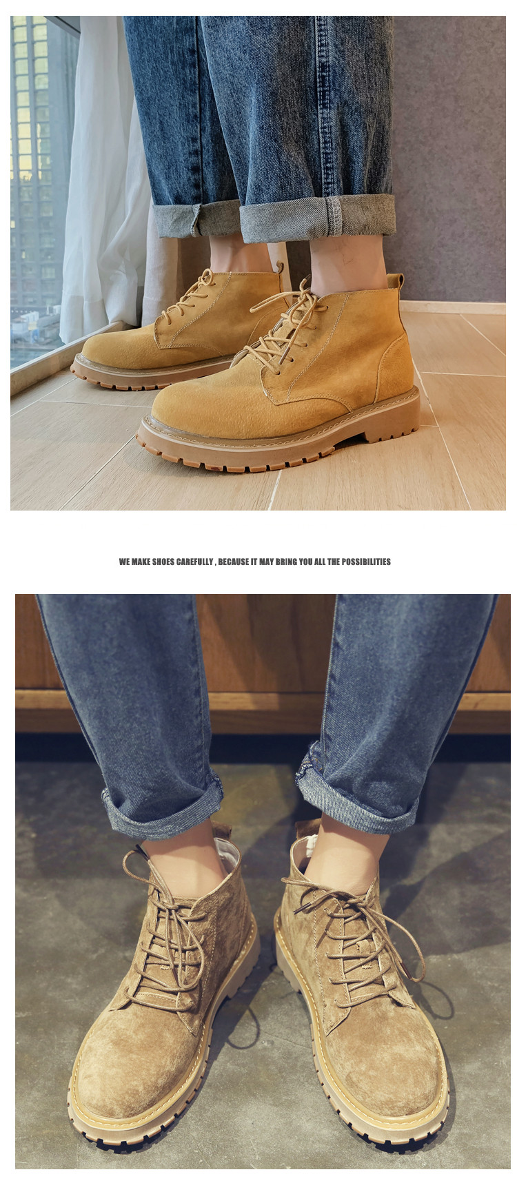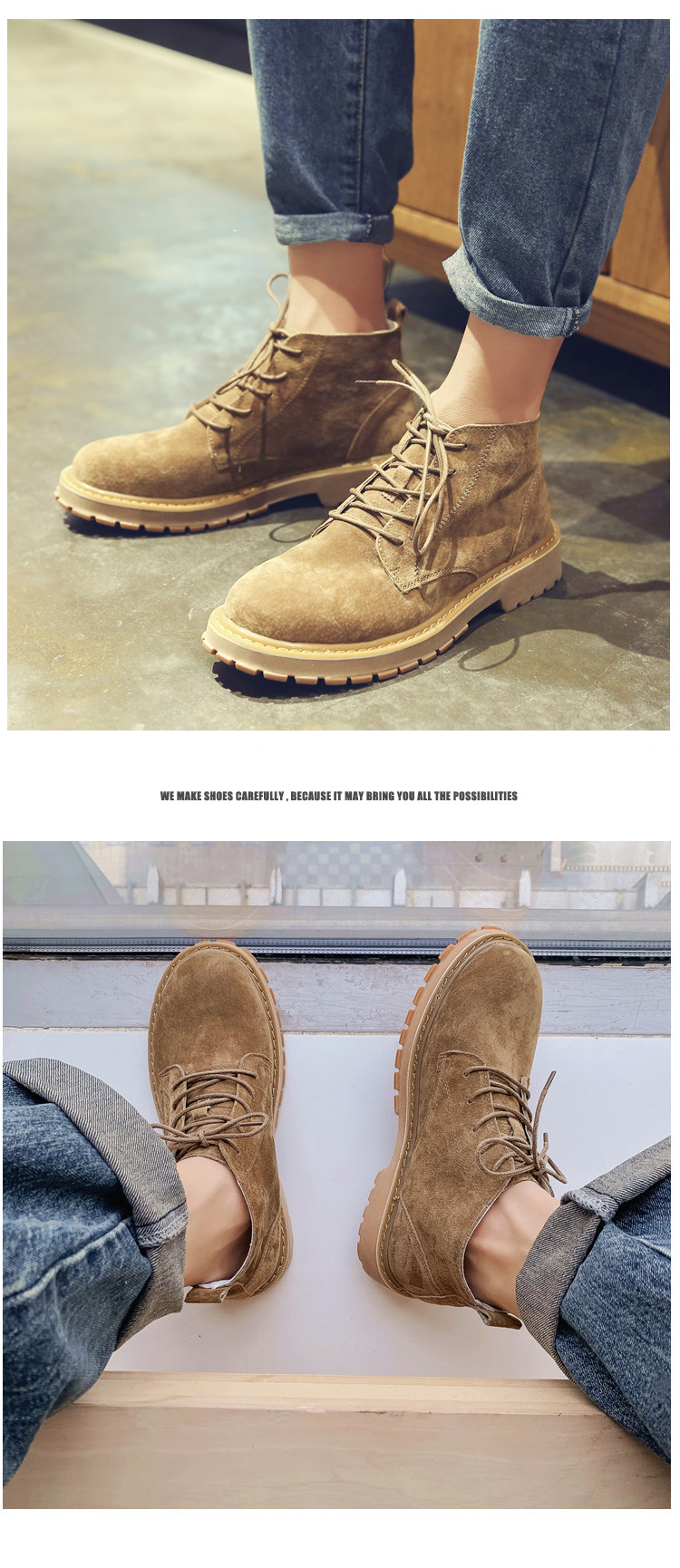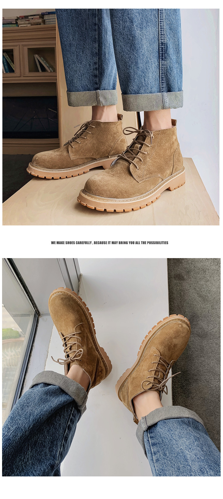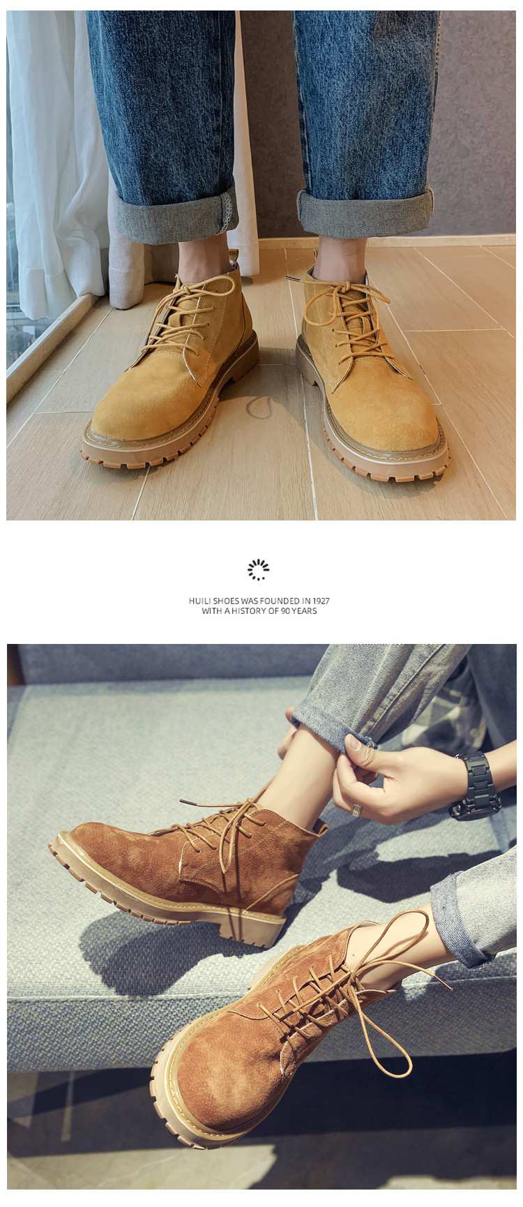 Martin Boots for Men 2025 New Winter Fleece-Lined Mid-Top Short Boots Genuine Leather High-Top British Retro Casual Work Boots