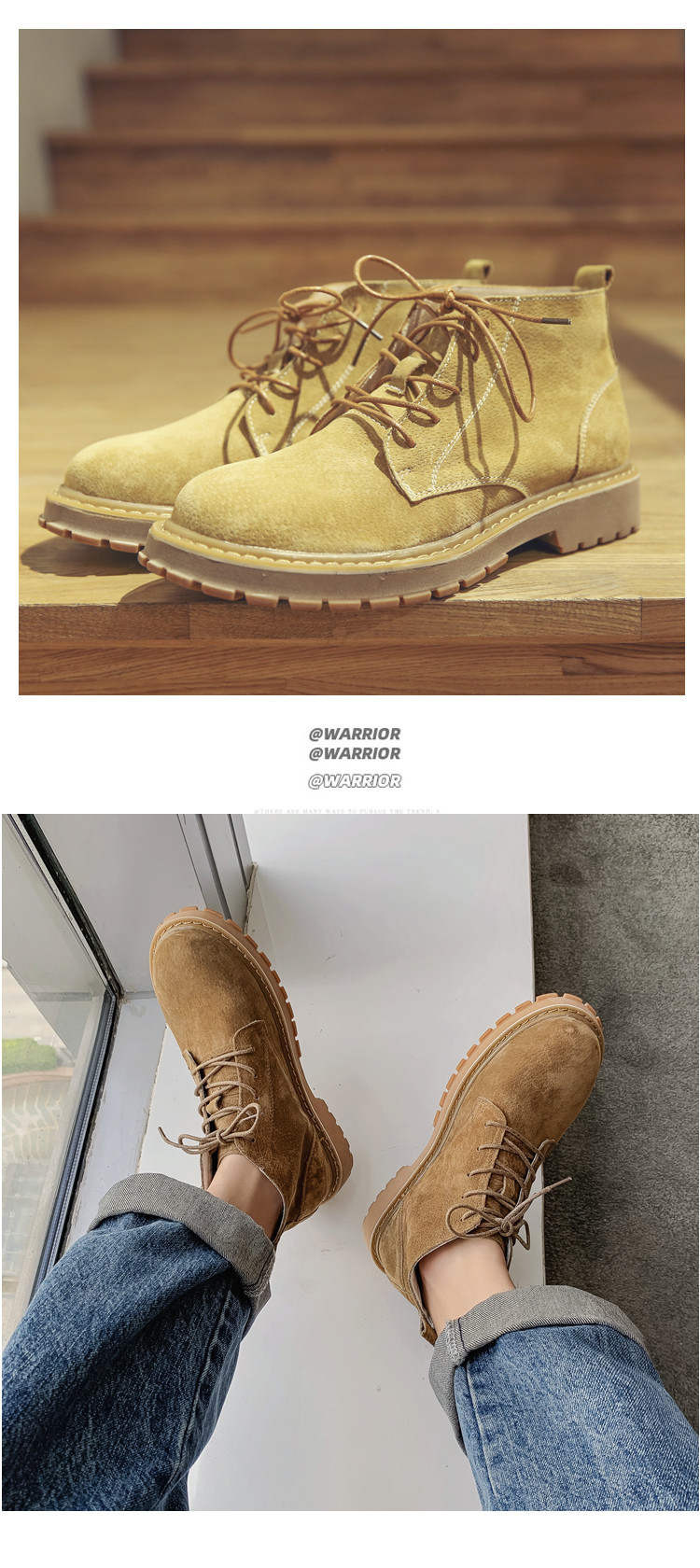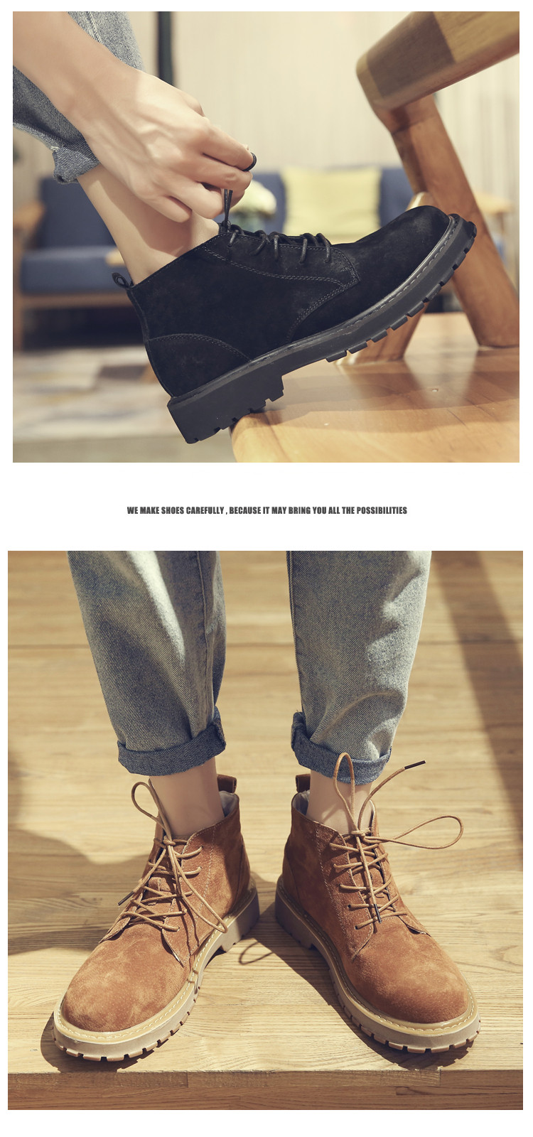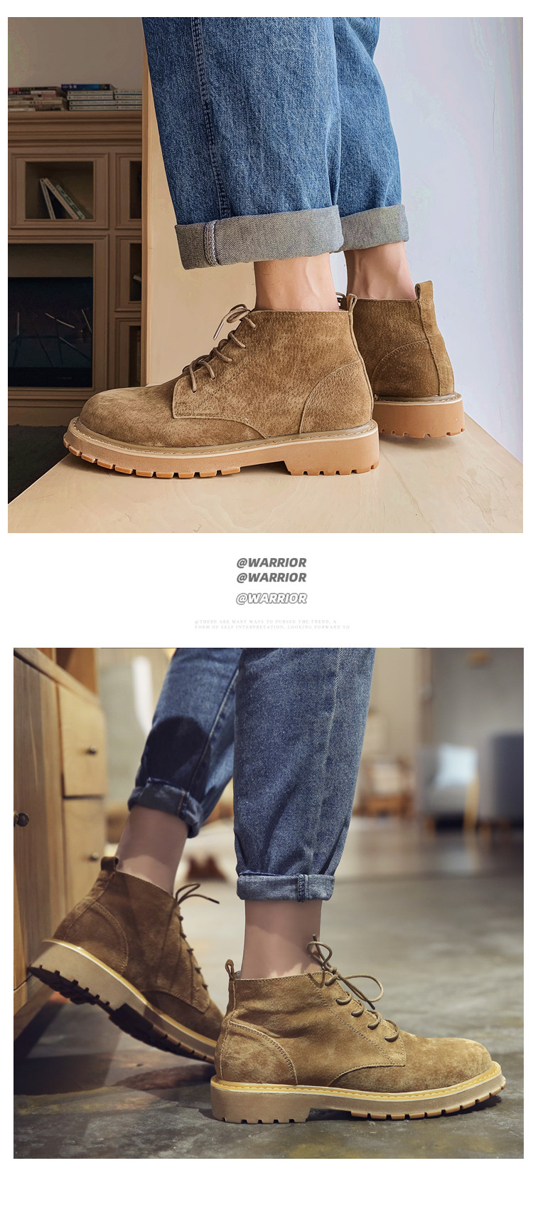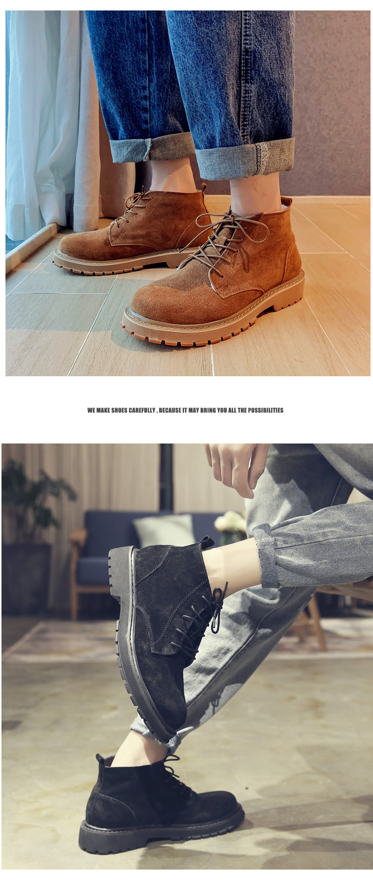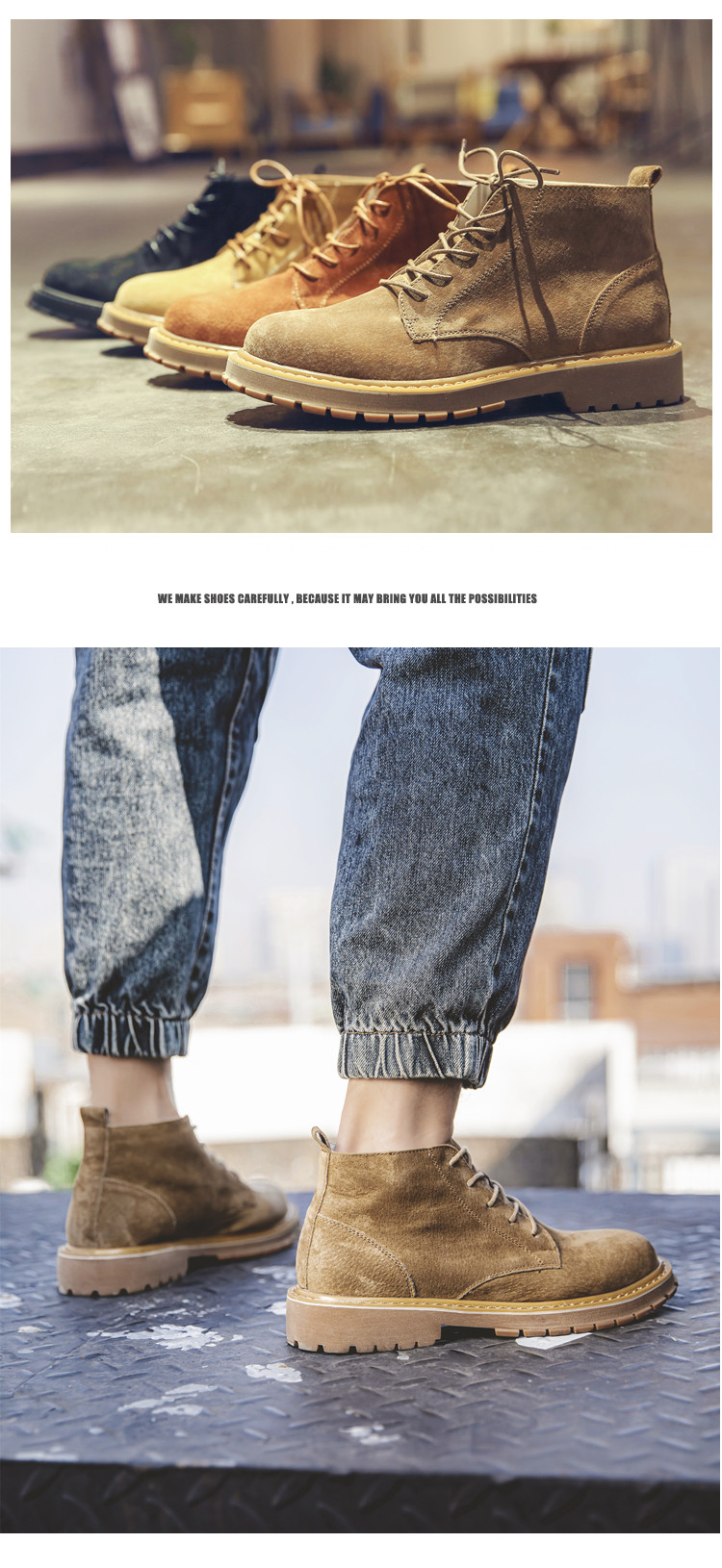 Martin Boots for Men 2025 New Winter Fleece-Lined Mid-Top Short Boots Genuine Leather High-Top British Retro Casual Work Boots