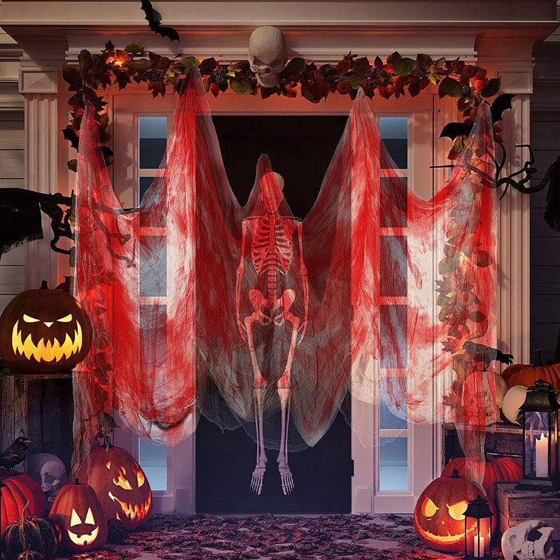 Halloween Decoration Blood-Stained Cloth Torn Black Gauze Tattered Cloth Outdoor Haunted House Escape Room Horror Decoration Setup