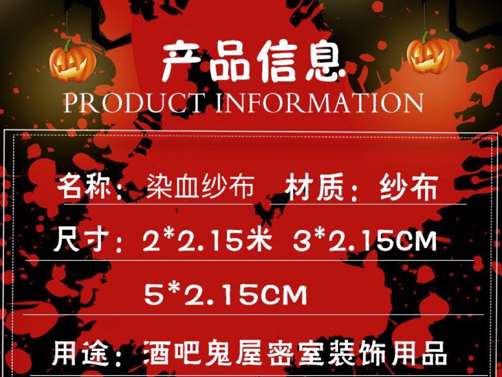 Color Classification Blood Stained Gauze 2.15* 2m,Blood Stained Gauze 2.15* 3m,Blood Stained Gauze 2.15* 5m,Blood Stained Gauze 2.15* 8m,Blood Stained Gauze 2.15* 10m,Ripped Black Coarse Gauze Fabric 2X2.5m,Ripped Black Coarse Gauze Fabric 2* 5m,Ripped Black Coarse Gauze Fabric 2* 8m,Ripped Black Coarse Gauze Fabric 2* 10m,Black Fine Gauze 2.15* 3m,Black Fine Gauze 2.15* 5m,Black Fine Gauze 2.15* 6m,Black Fine Gauze 2.15* 8m,Black Fine Gauze 2.15* 10m,White Fine Gauze 2.15* 3m,White Fine Gauze 2.15* 5m,White Fine Gauze 2.15* 6m,White Fine Gauze 2.15* 8m,White Fine Gauze 2.15* 10m,Black Ripped Gauze Fabric 2.15* 3m,Black Ripped Gauze Fabric 2.15* 5m,Black Ripped Gauze Fabric 2.15* 6m,Black Ripped Gauze Fabric 2.15* 8m,Black Ripped Gauze Fabric 2.15* 10m,White Ripped Gauze Fabric 2.15* 3m,White Ripped Gauze Fabric 2.15* 5m,White Ripped Gauze Fabric 2.15* 6m,White Ripped Gauze Fabric 2.15* 8m,White Ripped Gauze Fabric 2.15* 10m