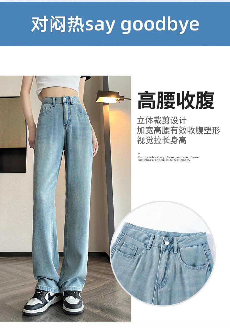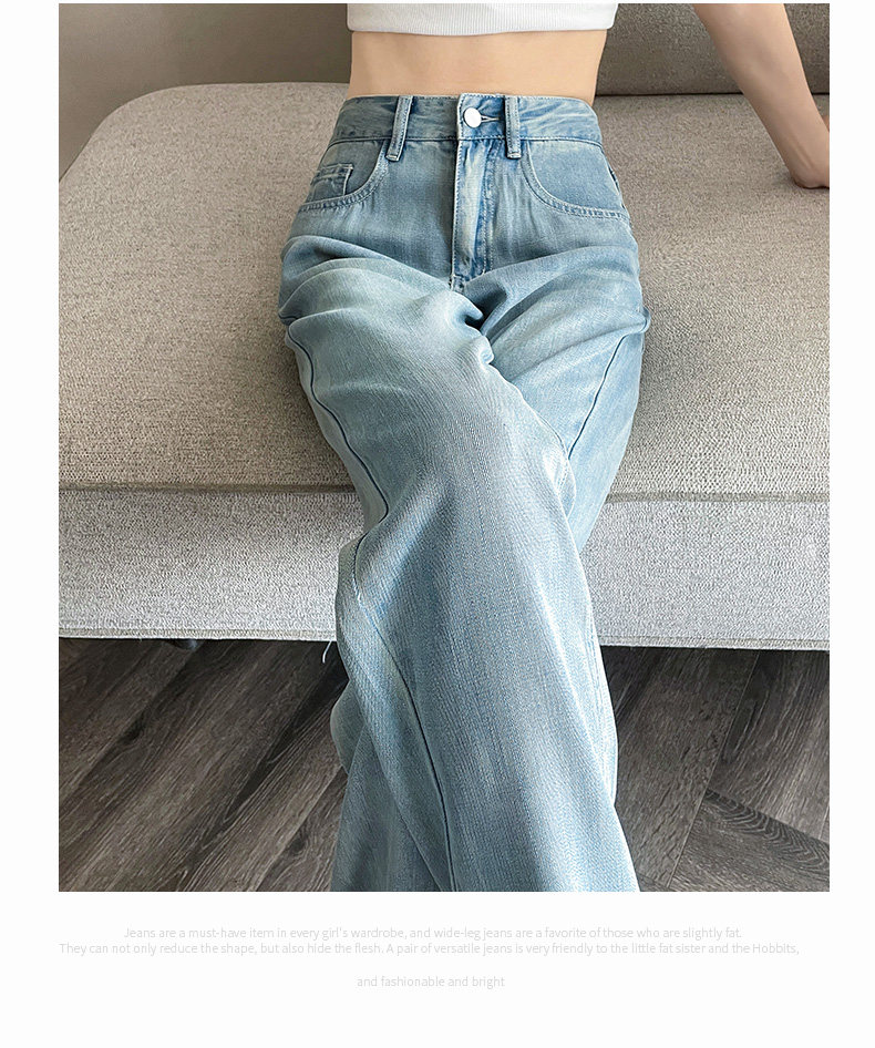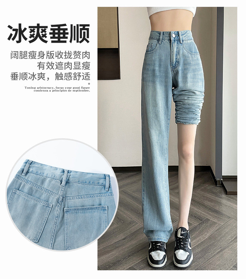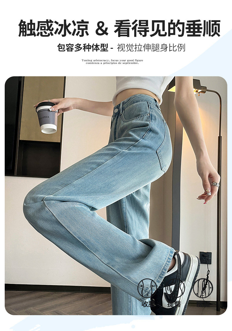 High-waisted Tencel jeans for women 2026 new summer small narrow version slimming thin loose wide-leg pants