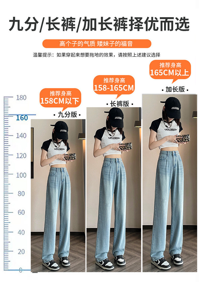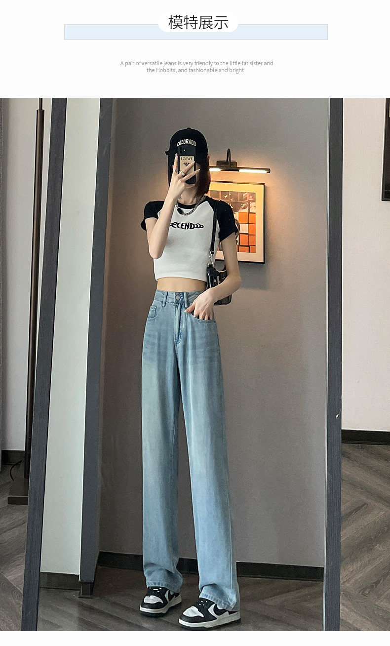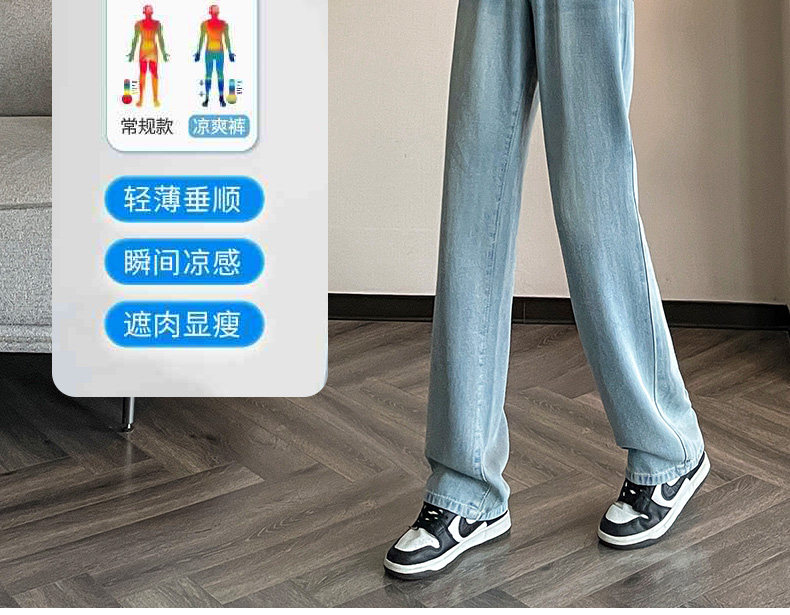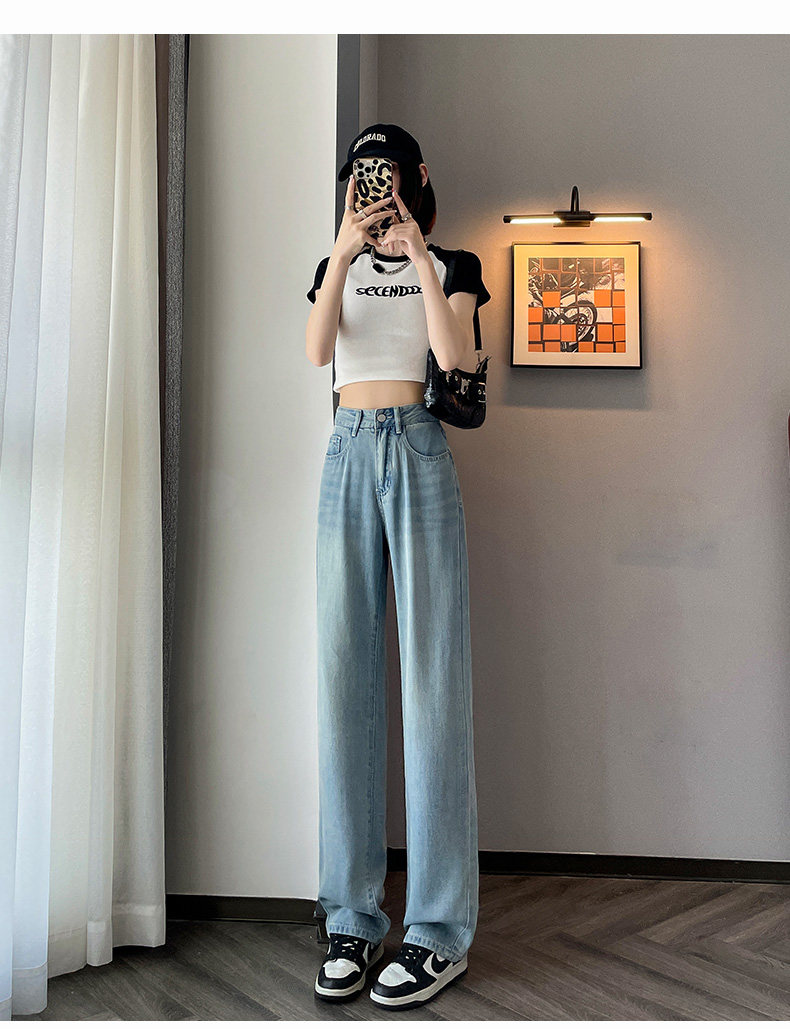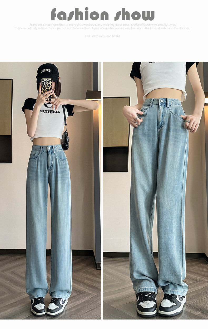 High-waisted Tencel jeans for women 2026 new summer small narrow version slimming thin loose wide-leg pants