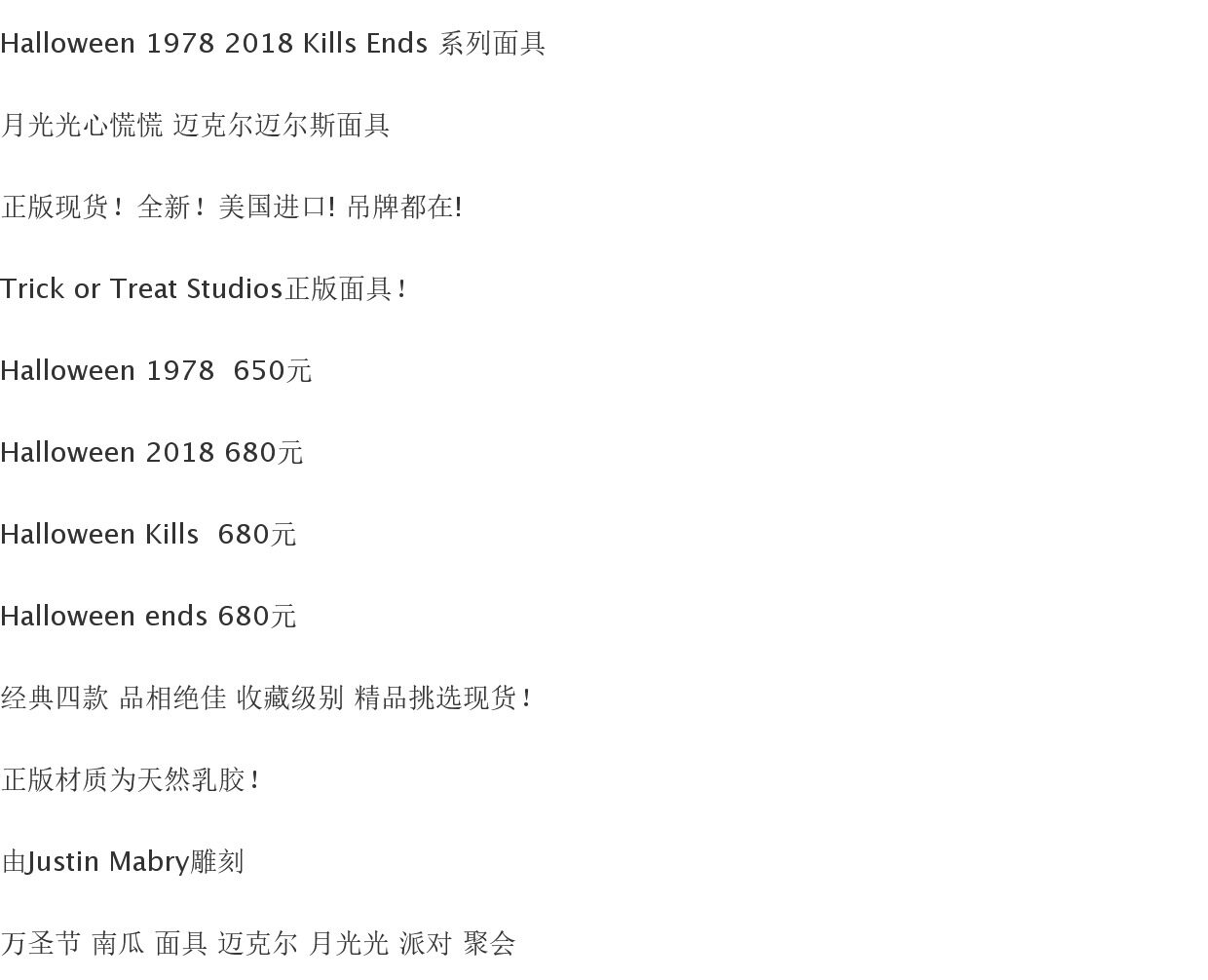 Color Classification Halloween 1978 Authentic Import from the United States with Tag,Halloween 2018 Authentic Us Import with Tags,Rob Zombie Regular Model, Genuine Imported from the United States, with Tag,Halloween Ends - Authentic Us Import with Tags,Rob Zombie Cracked Edition - Authentic Us Import with Tags,Halloween Kills - Authentic Us Import, with Tags,Halloween 2 Authentic Us Import with Tags