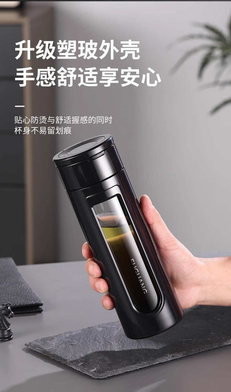 Fuguang Glass Cup for Men, Tea and Water Separation, Tea Brewing Cup, Office Business Portable Plastic Glass Cup, Large Capacity Car Water Cup