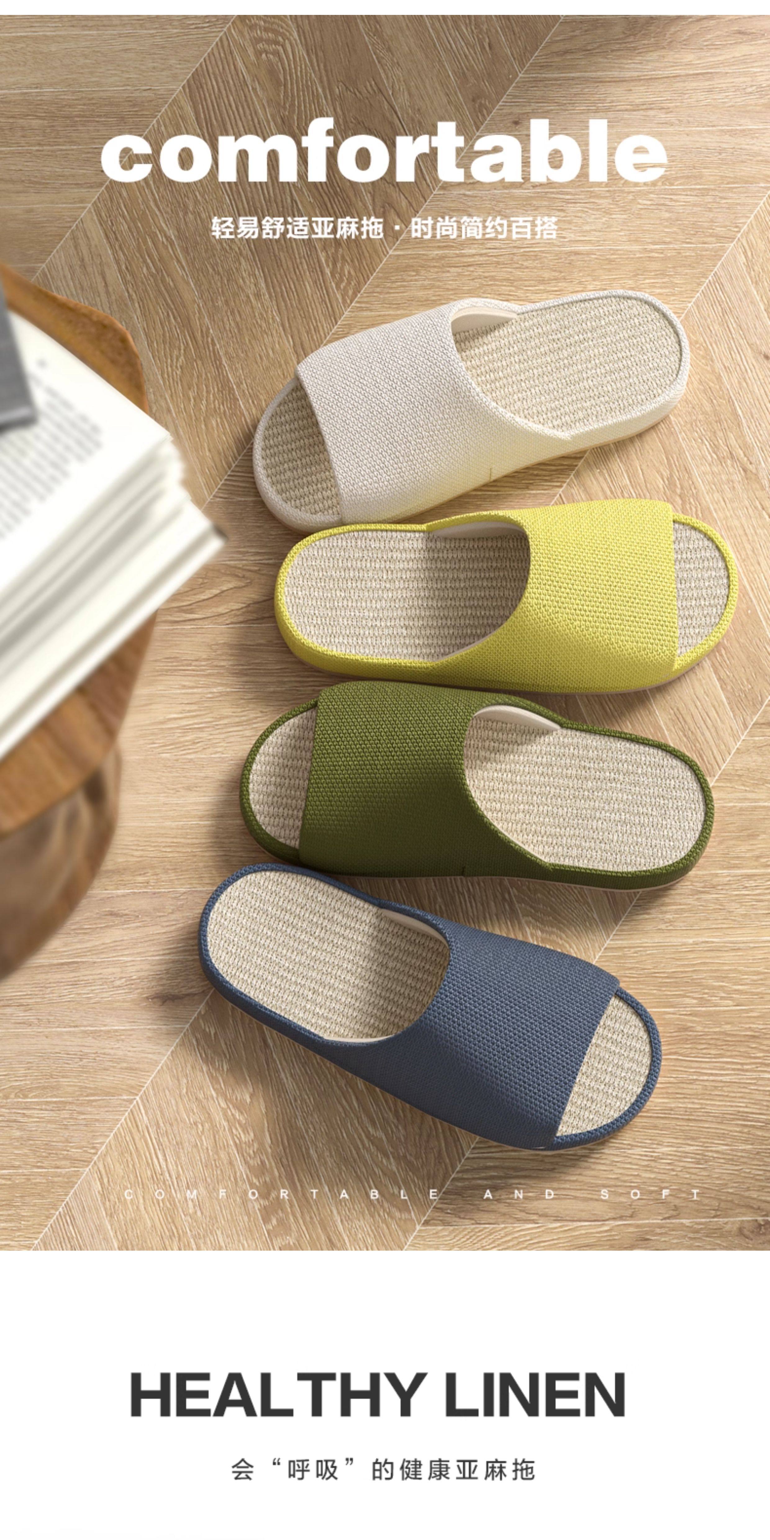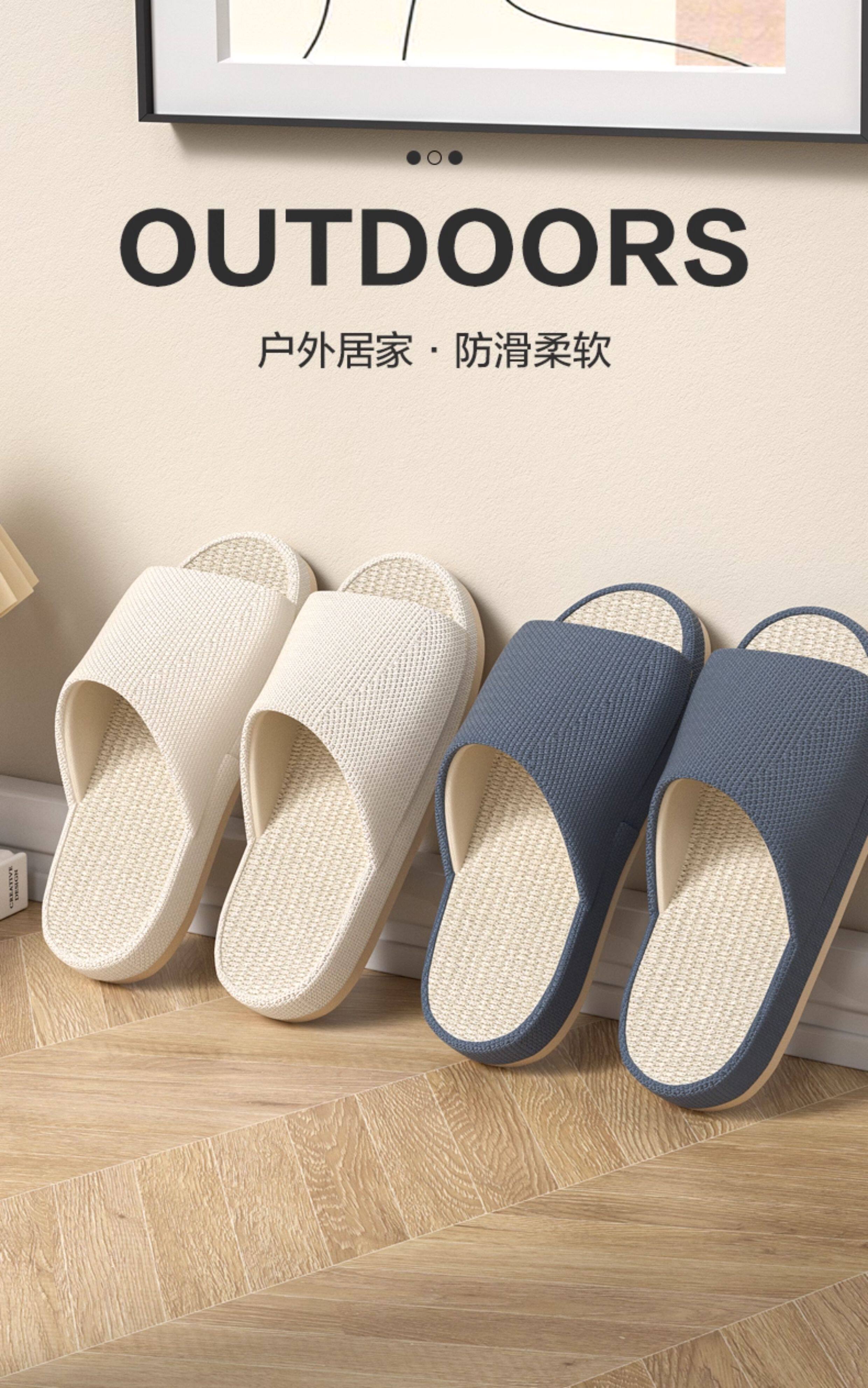 Pu west's new linen couple slippers, home slippers, outdoor men's slippers, non-slip, silent, non-stinky feet, women's home slippers