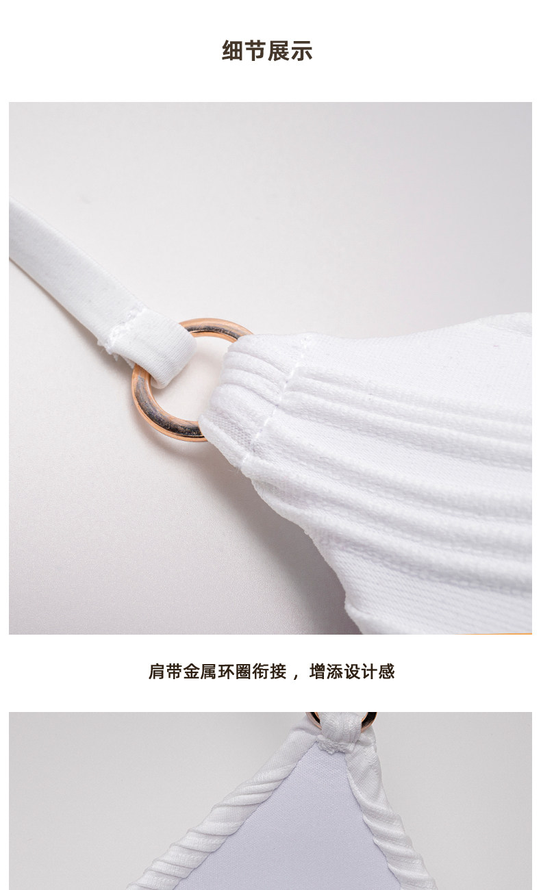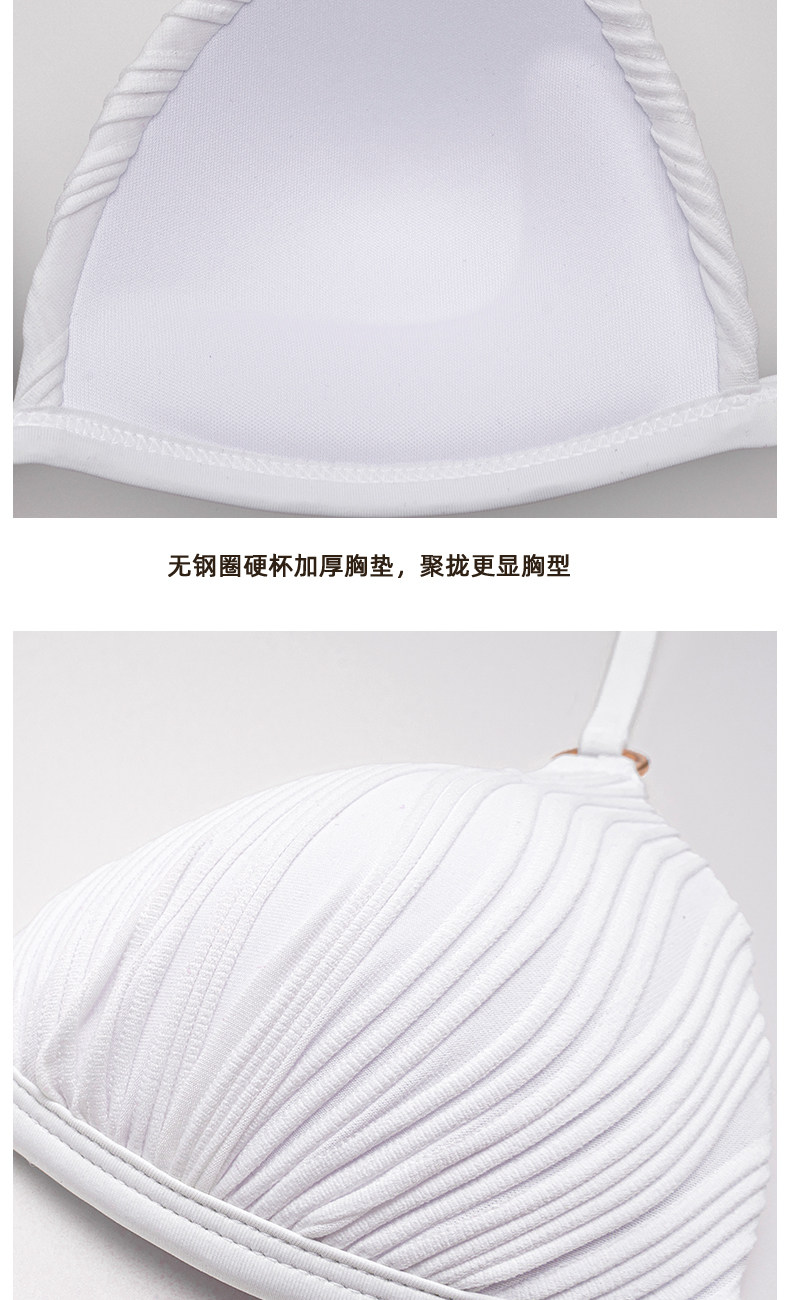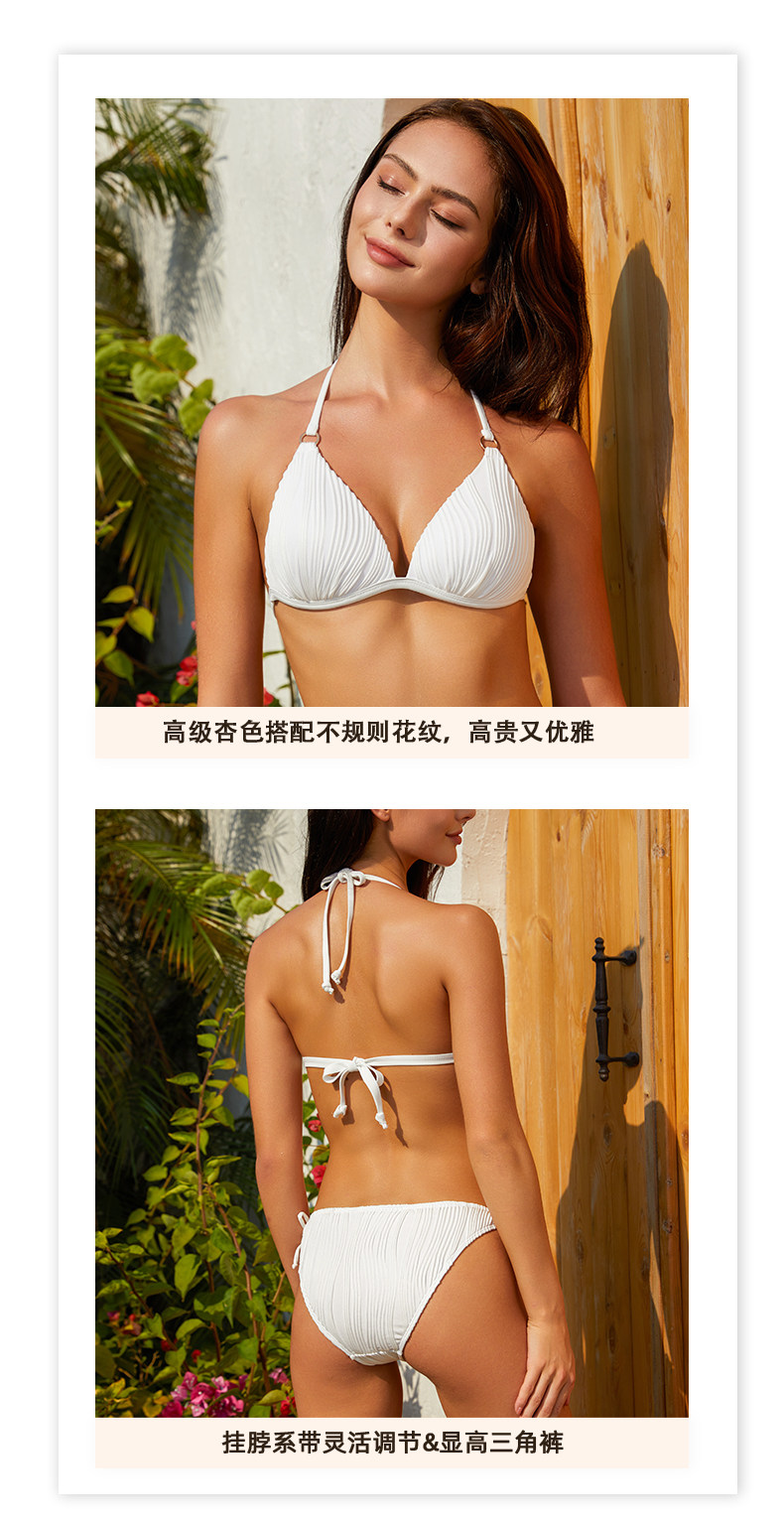 Wave-Patterned White Wireless Small Bust Push-Up Halter Bikini Swimsuit, Feminine Three-Point Split Swimwear