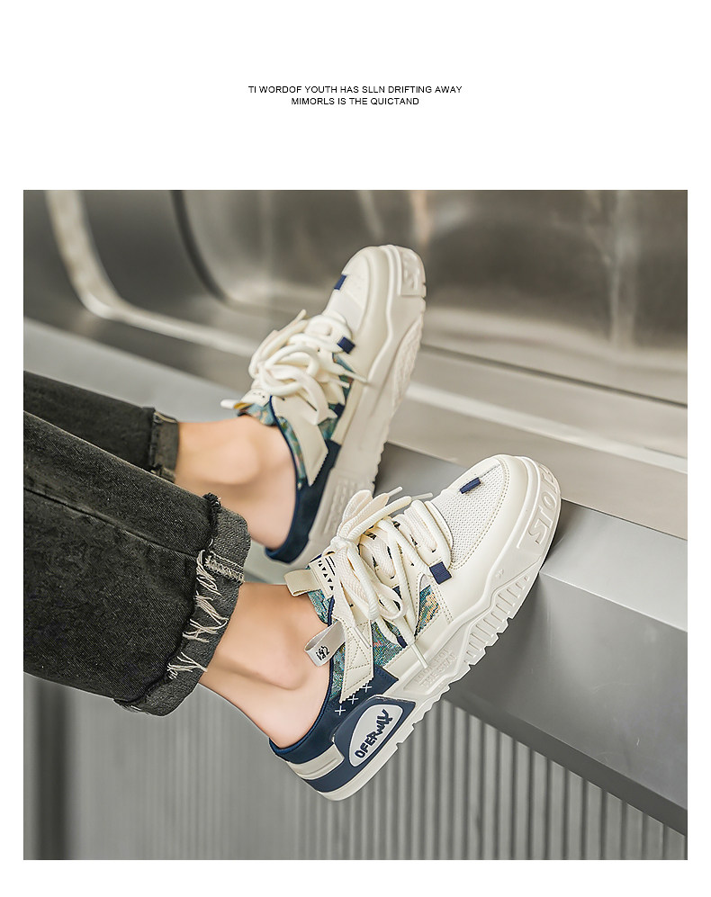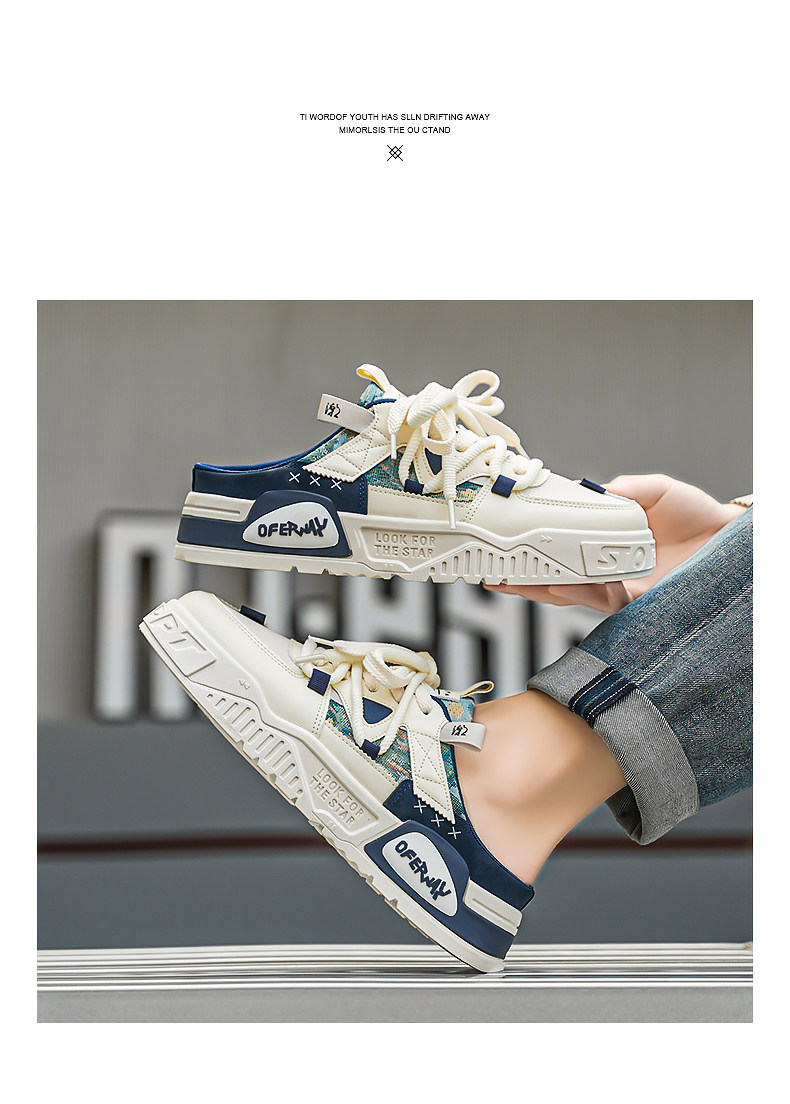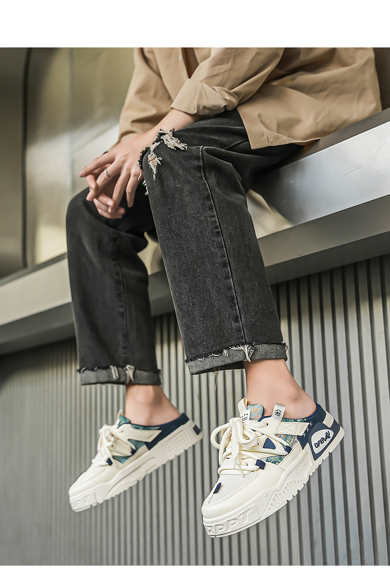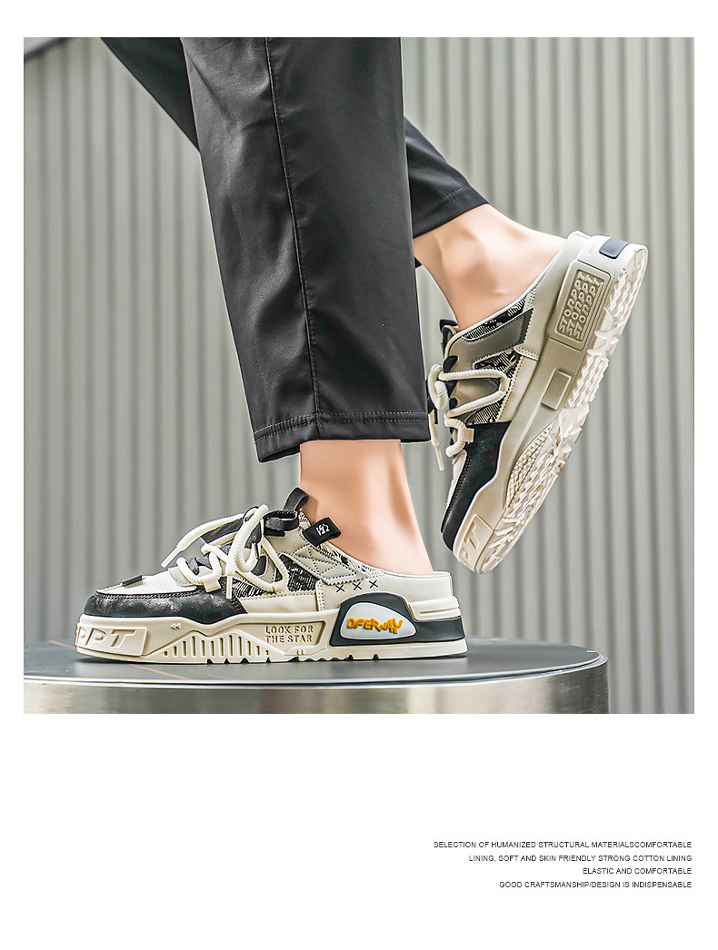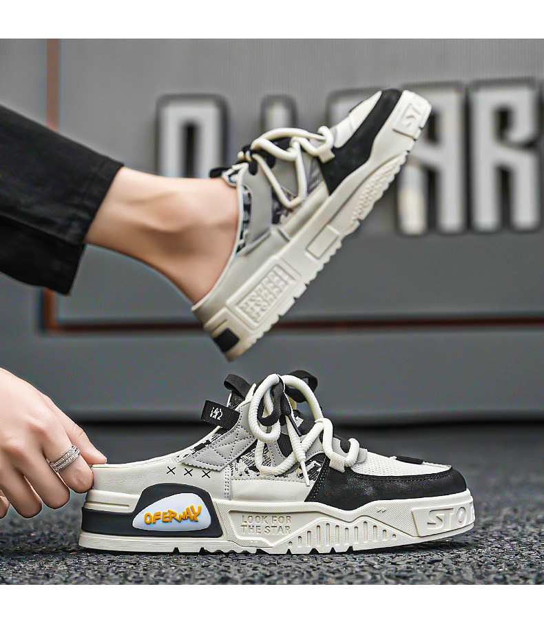 Men's Shoes 2026 New Summer Mesh Breathable Sports Casual Sneakers Slip-On Thick-Soled Closed-Toe Canvas Half-Slippers