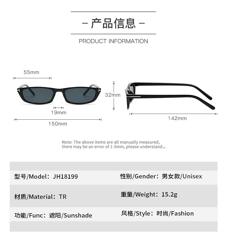 European and American New Style Rectangular Ultra-Small Narrow-Frame Sunglasses for Women, Trendy Korean Version for Men, Bar Disco Hip-Hop Sunglasses