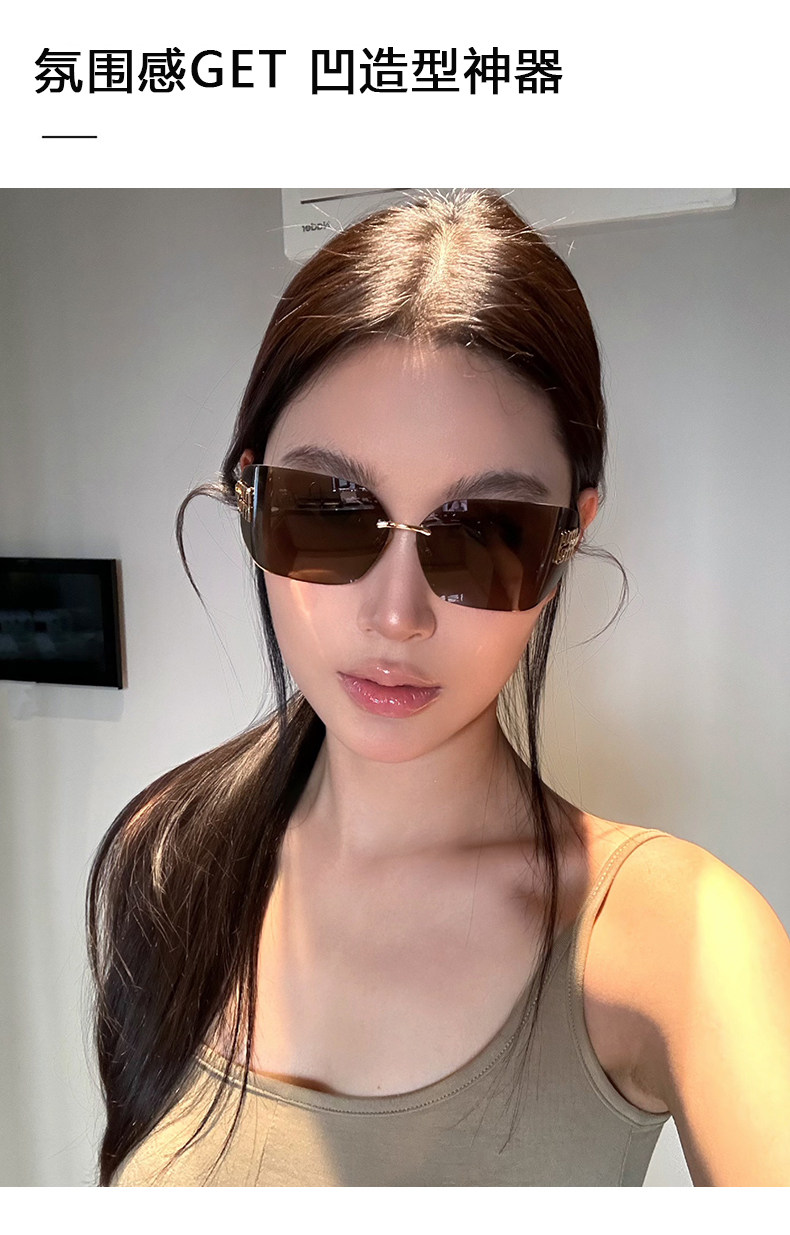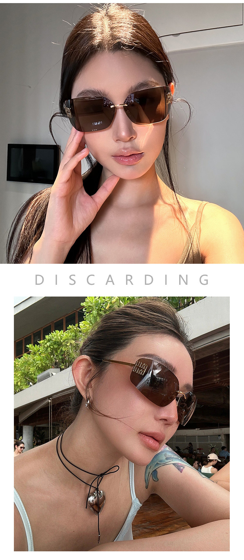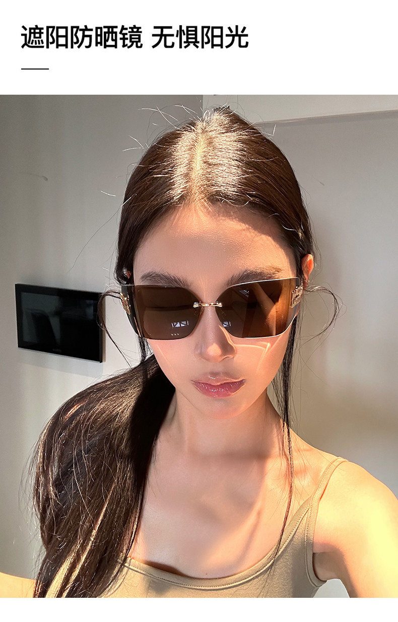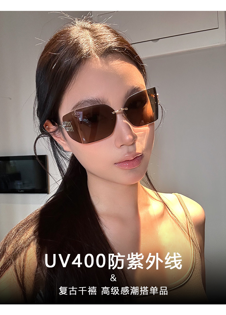 Retro Brown Rimless European and American Style Sunglasses for Women 2025 New Style Sunglasses with Anti-Uv, High-End Feel and Slimming Trend