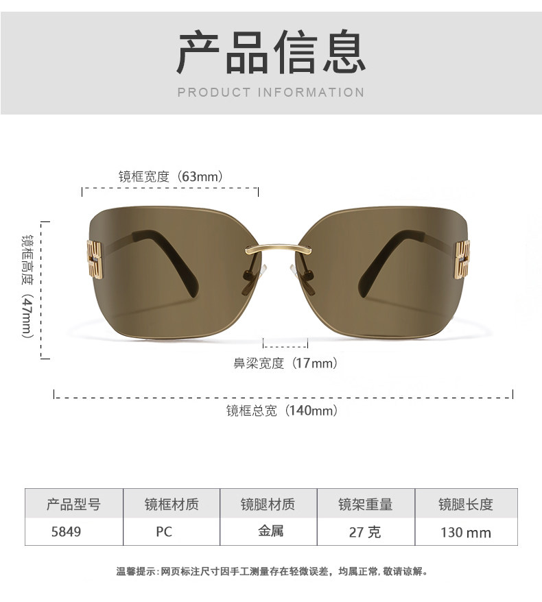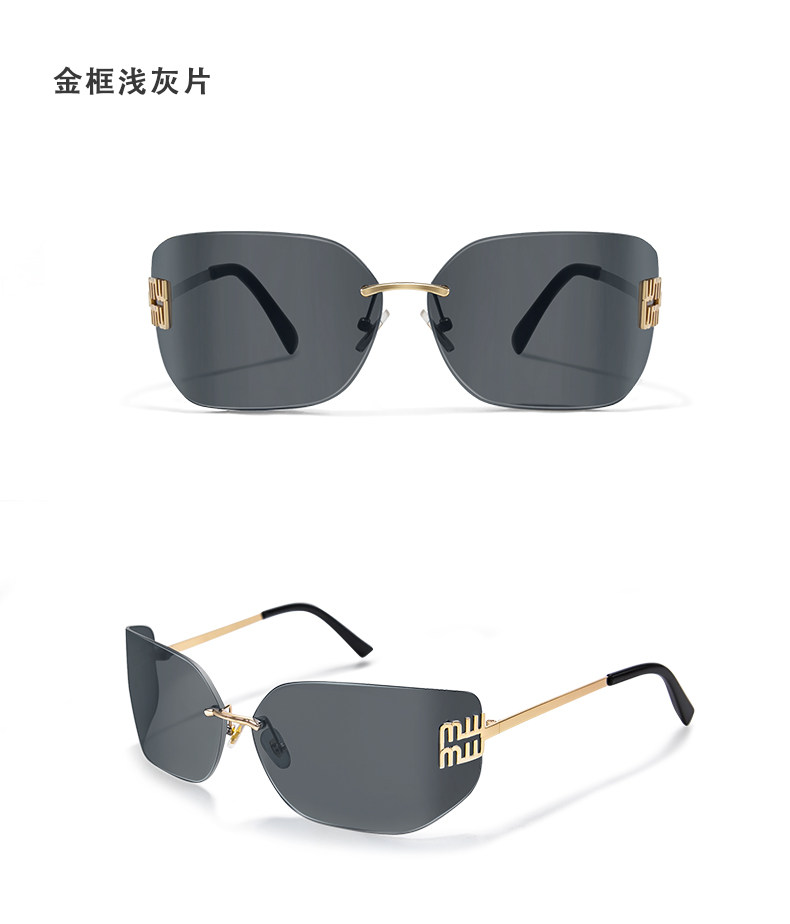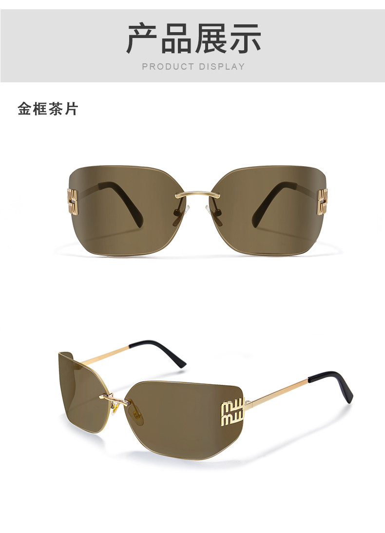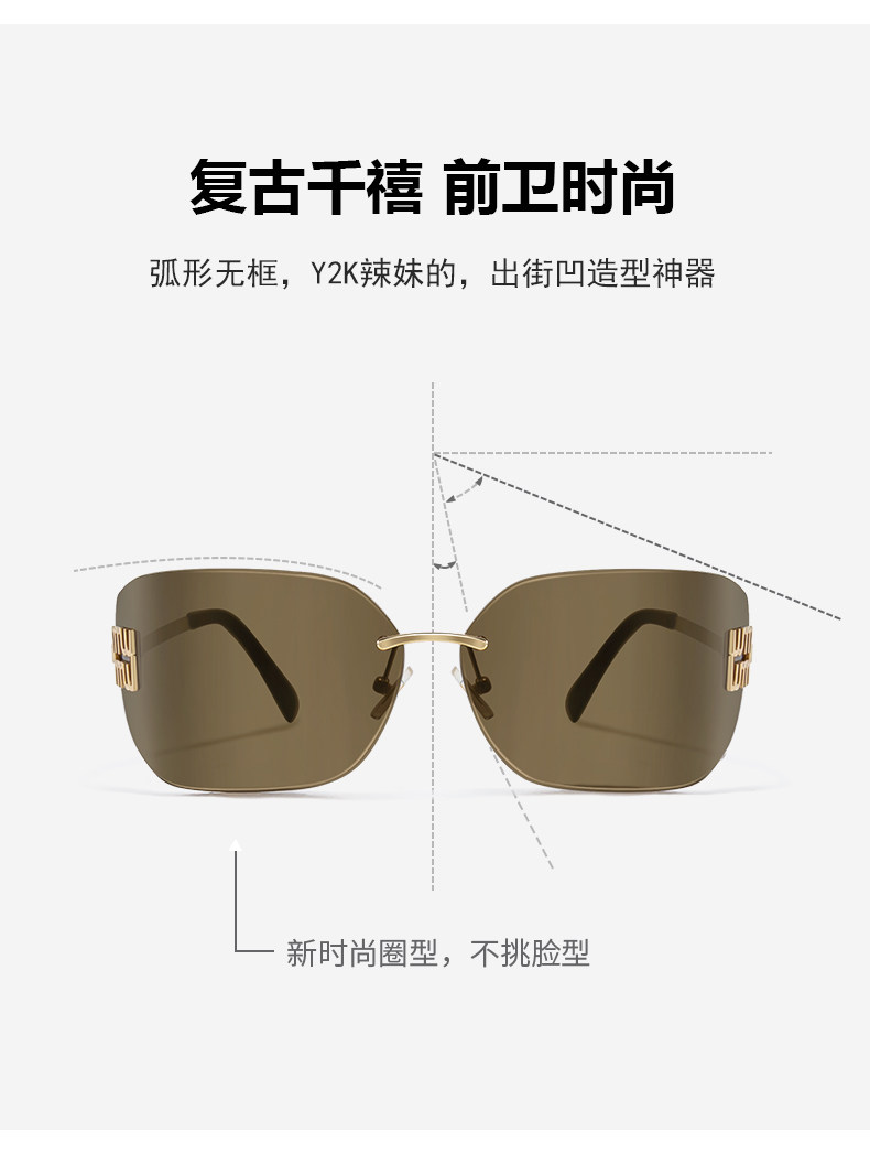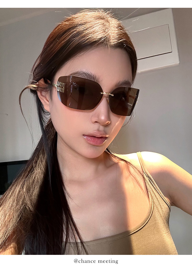 Retro Brown Rimless European and American Style Sunglasses for Women 2025 New Style Sunglasses with Anti-Uv, High-End Feel and Slimming Trend