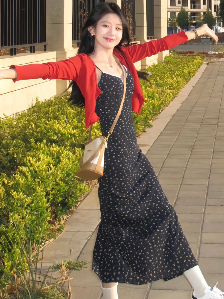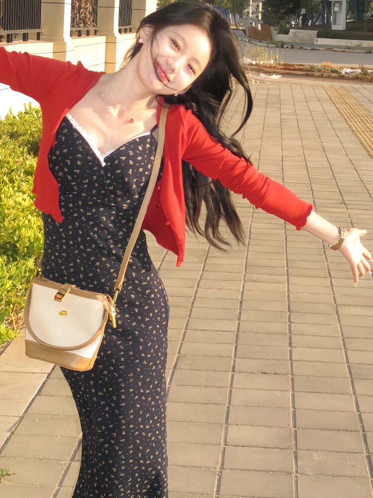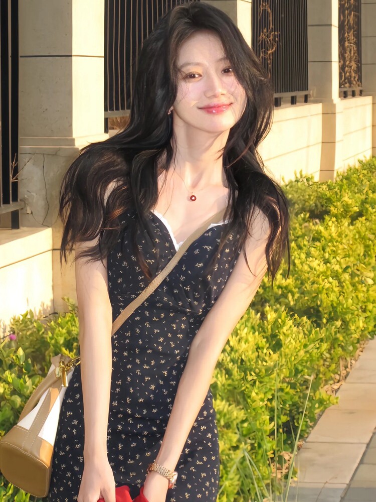 2024 Summer Floral Suspender Dress for Women, Waist-Cinching, Slimming V-Neck Elegant Dress, Niche Retro High-End Long Dress