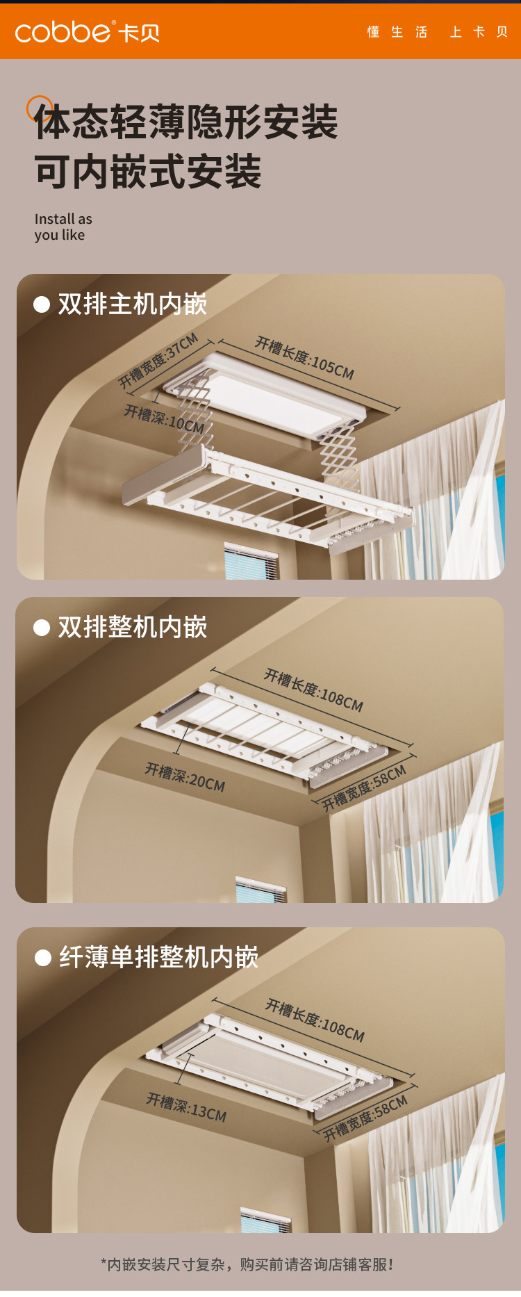 Xinkabei small size electric clothes drying rack remote control lifting smart balcony automatic side-mounted small apartment clothes drying rod
