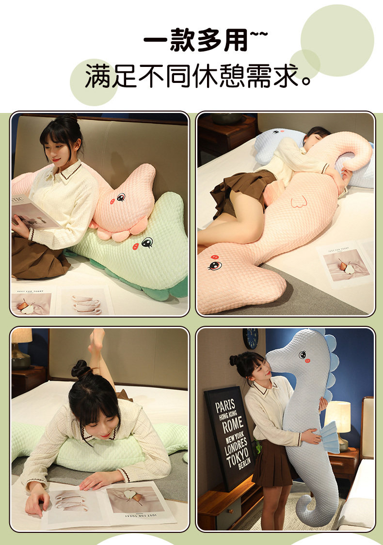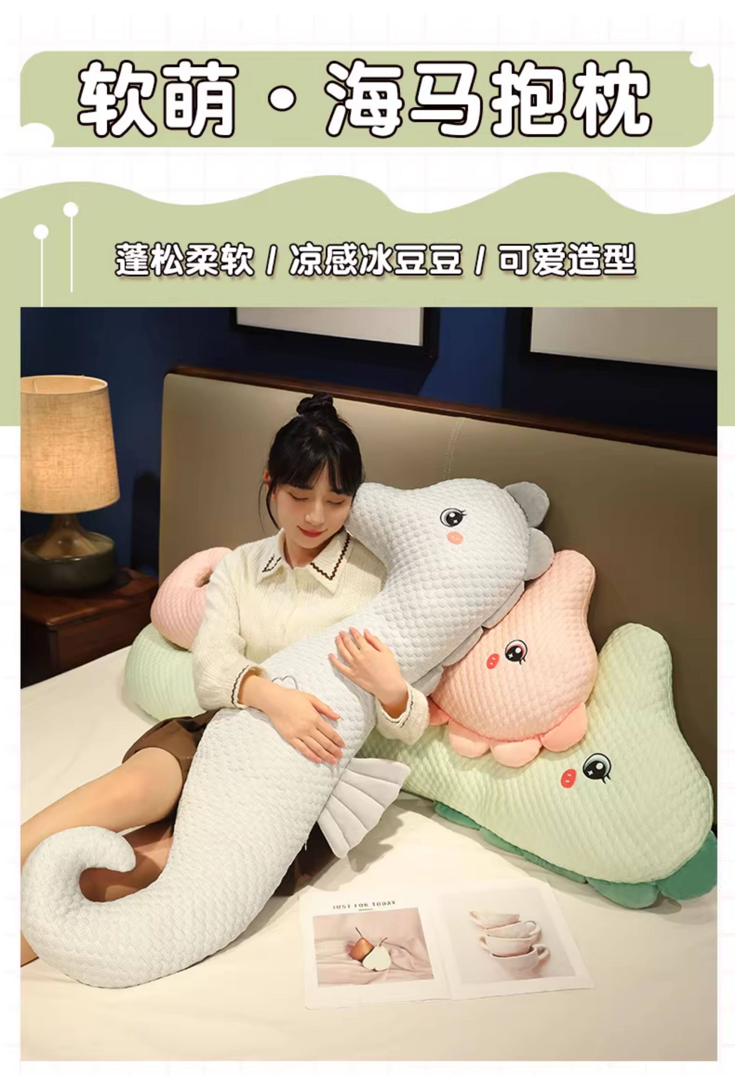 Summer Cooling Seahorse Pillow, Long Pillow, Cushion, Large Headboard Pillow, Bed Companion, for Men to Sleep with Legs Crossed, for Girls